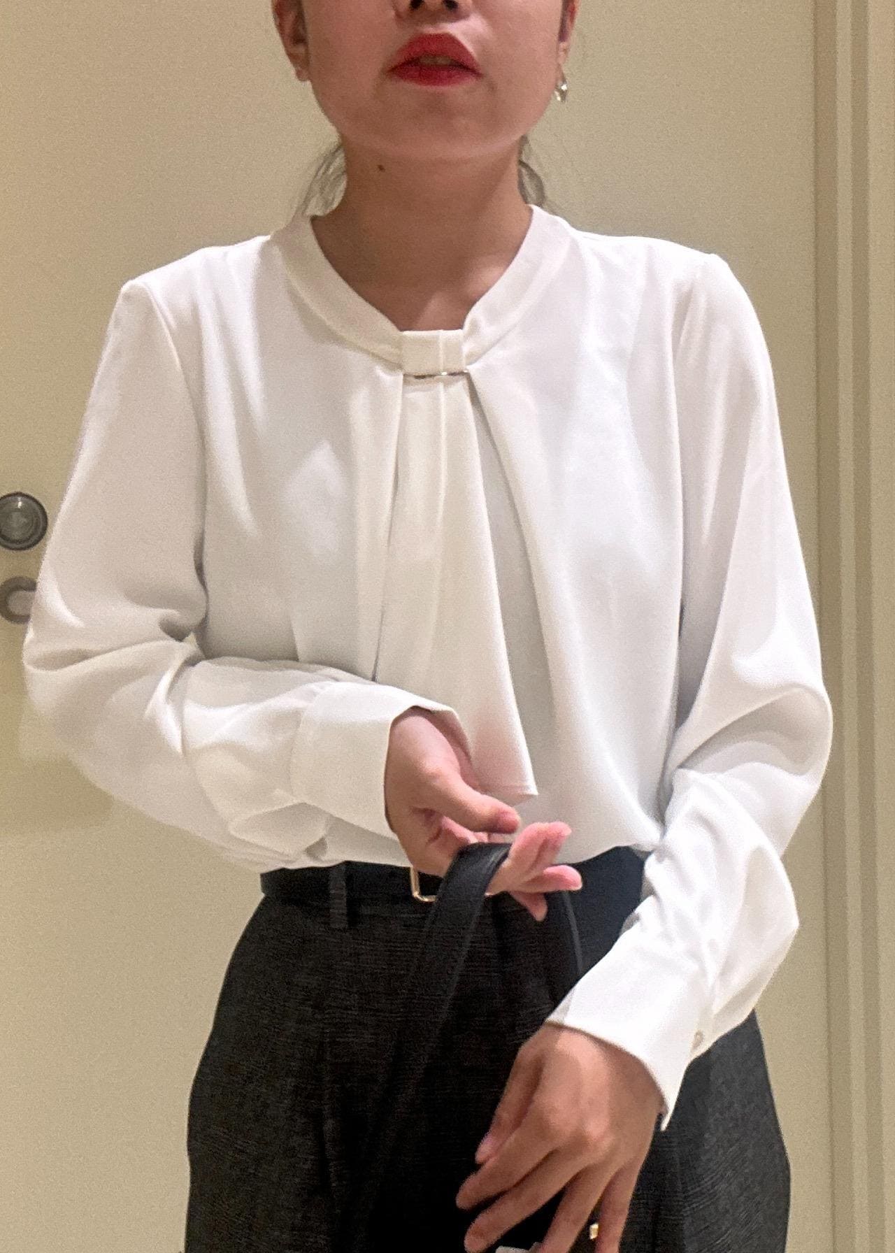 白は多少透け感がありますがとても透ける。という訳では無いので白ブラウスの中では比較的インナーを気にしなくて良いブラウスです。 -