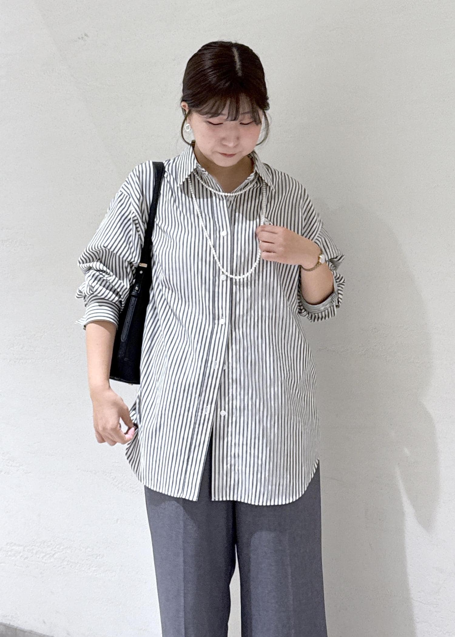 足もすらっと長く見えて、オーバーシャツなのにダボッとしすぎないのが◎