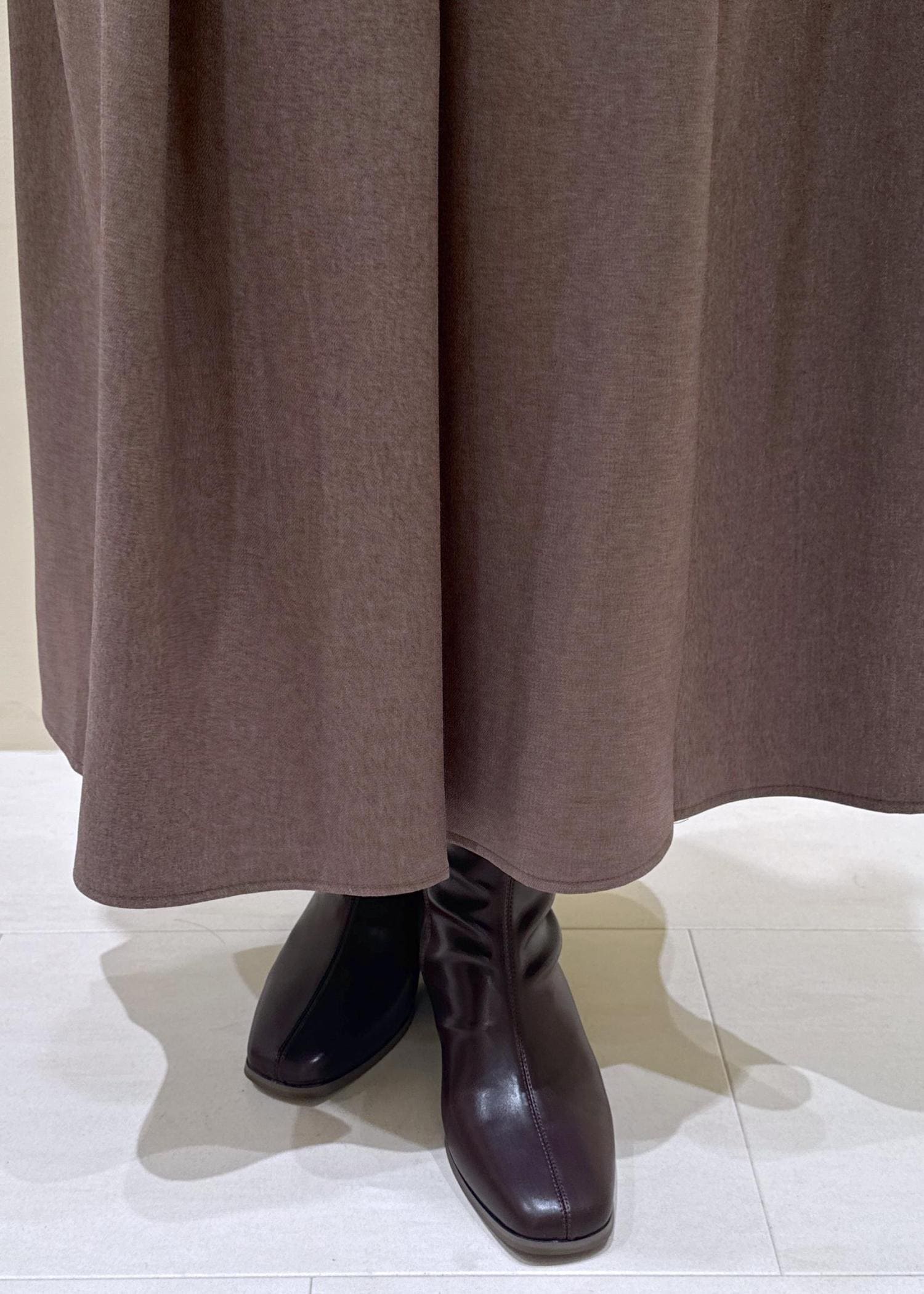 Sサイズで裾はふくらはぎが隠れるぐらい、ウエスト周りはフィットしてシルエットをきれいに見せてくれます。