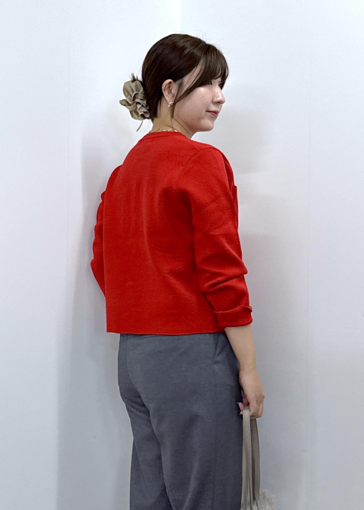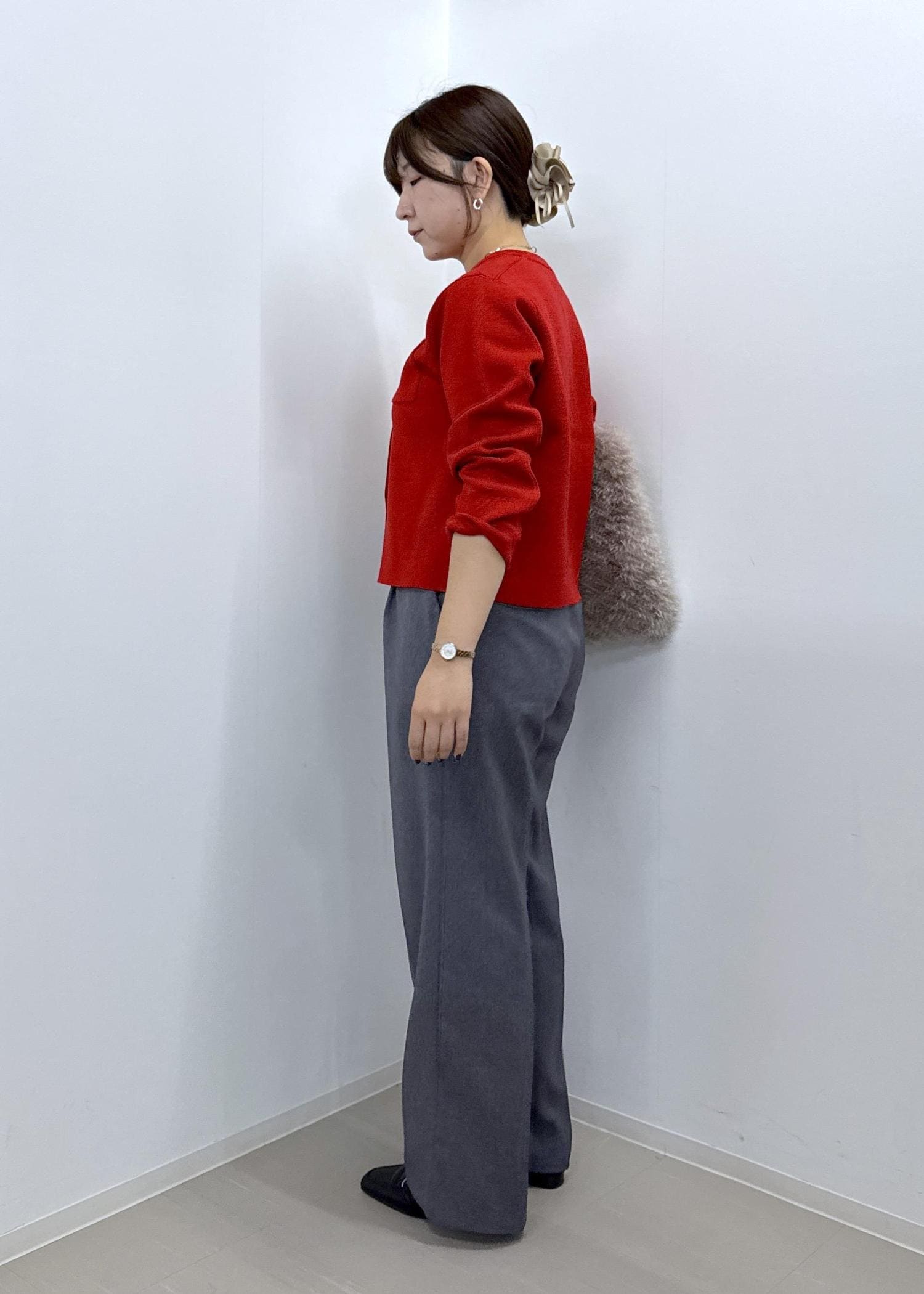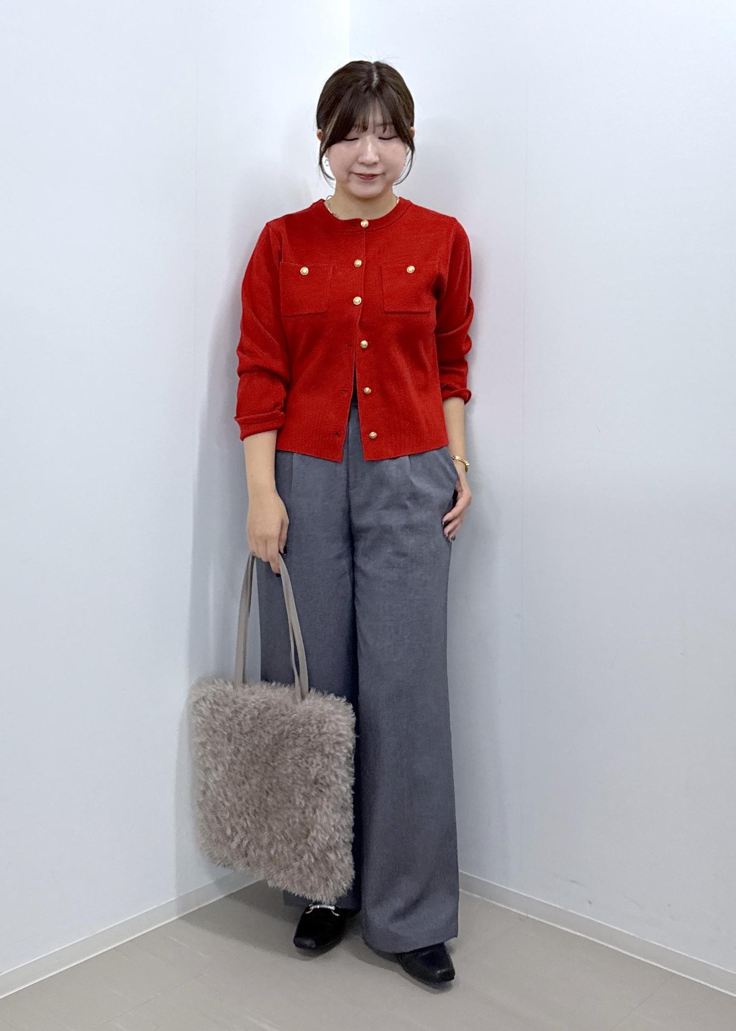 今まで丈がジャストより少し短く感じていたので、余計に下半身が太く見えてしまうのが悩みでしたが、ズルっと着れる丈感で脚が長く見せれます。