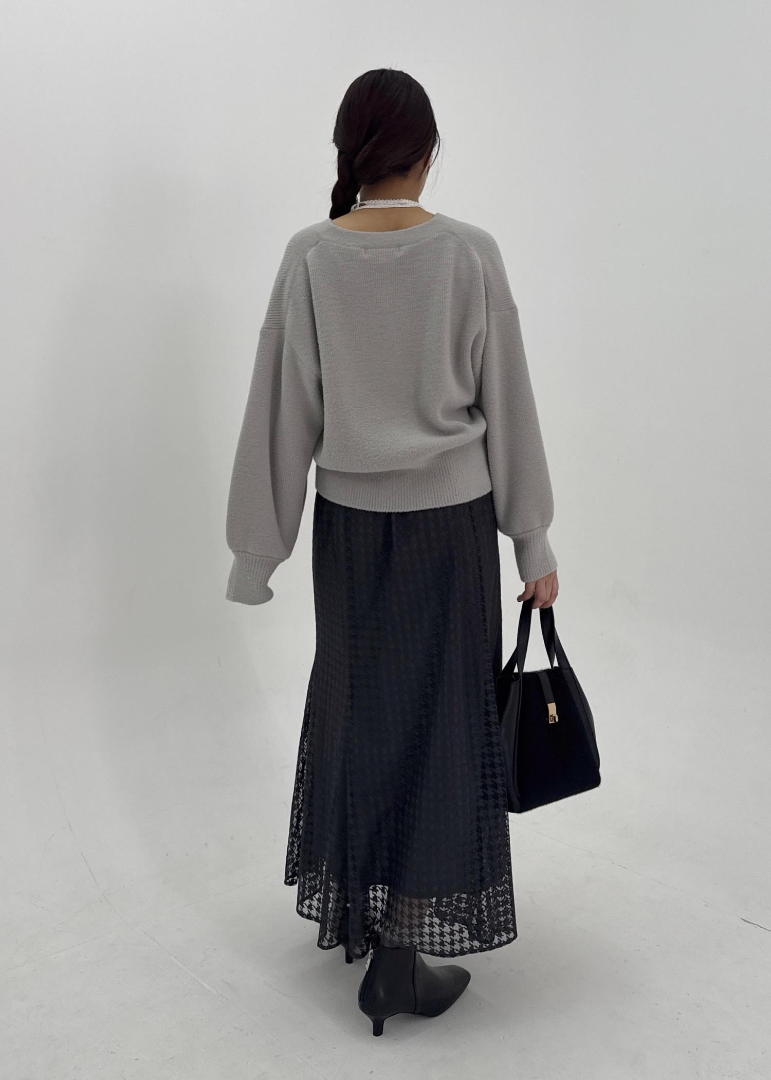 深めのVネックなので大人らしい雰囲気で着用して頂けます。