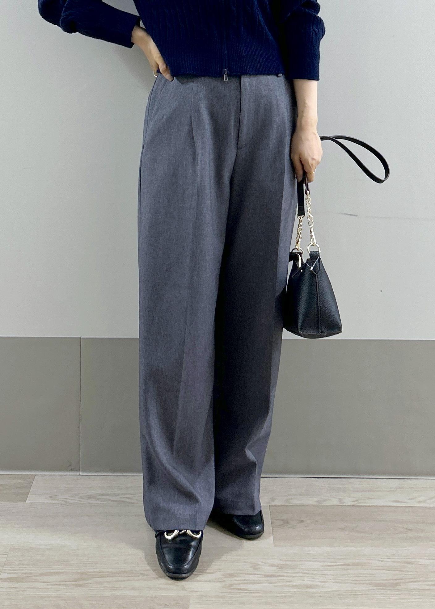 レディハンサムシリーズ ウールライクウエストタックセミワイドパンツ/セットアップ対応