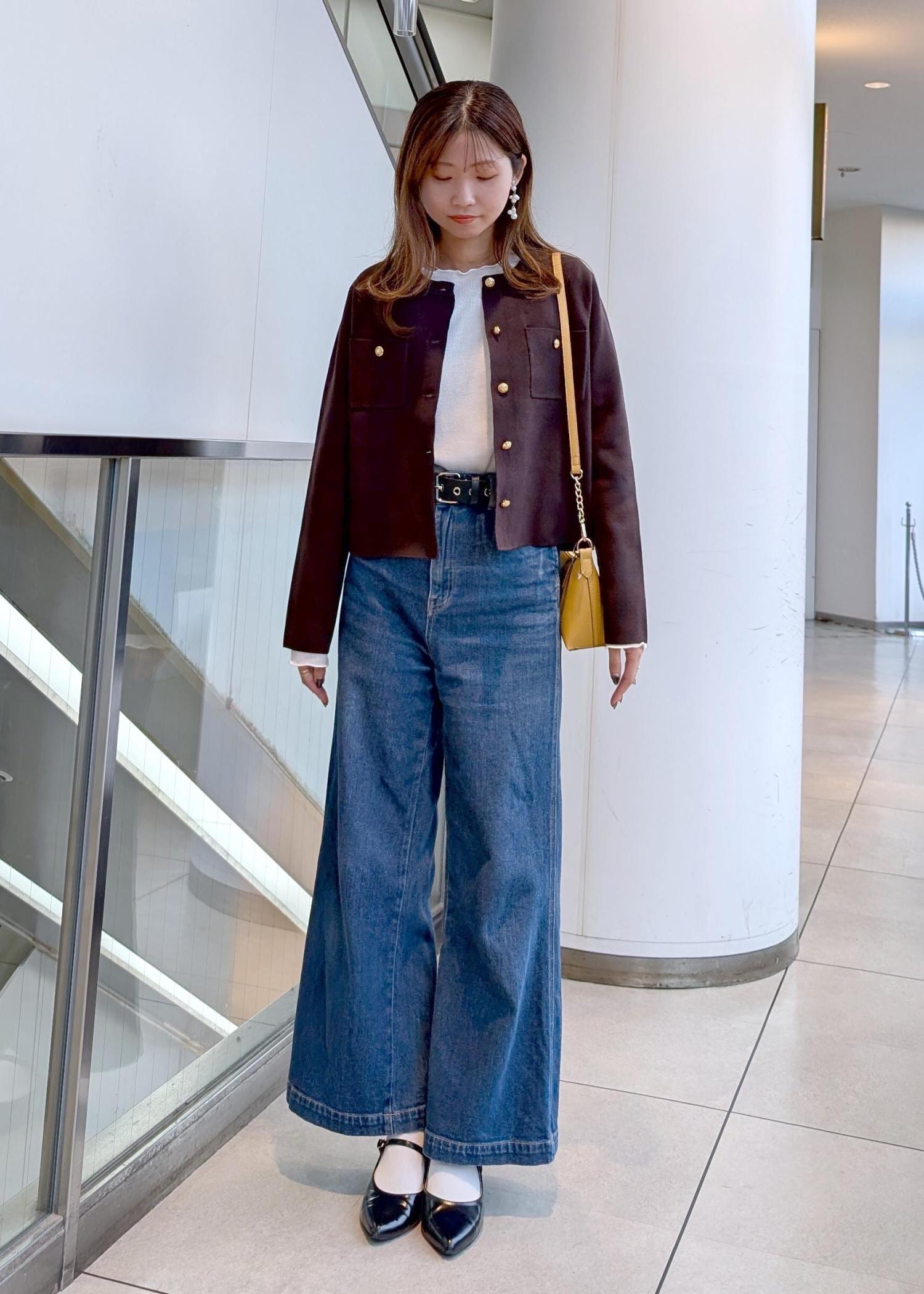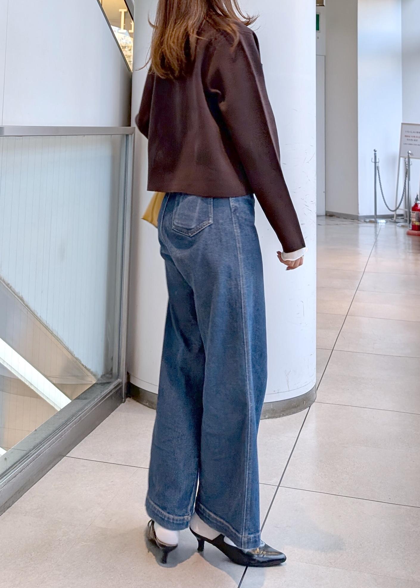 ハイウエストなので短め丈やトップスインする合わせがおすすめです。