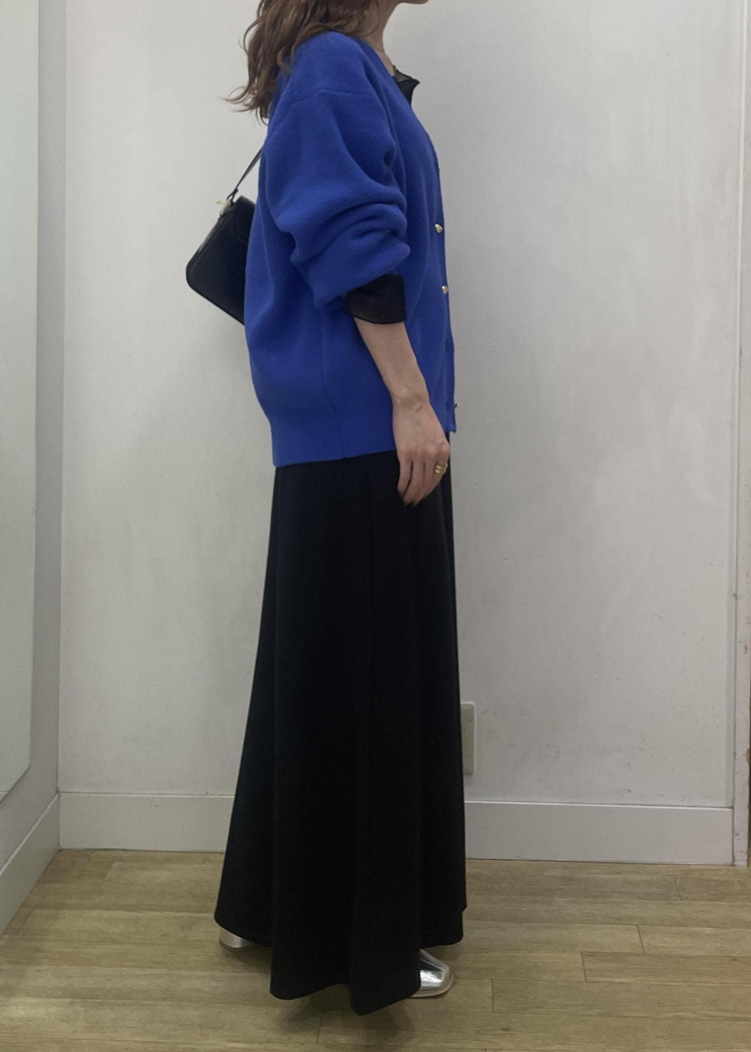 肌触りの良いふわふわした素材のカーディガンにシルエットが綺麗なカット素材のスカートを合わせました♡