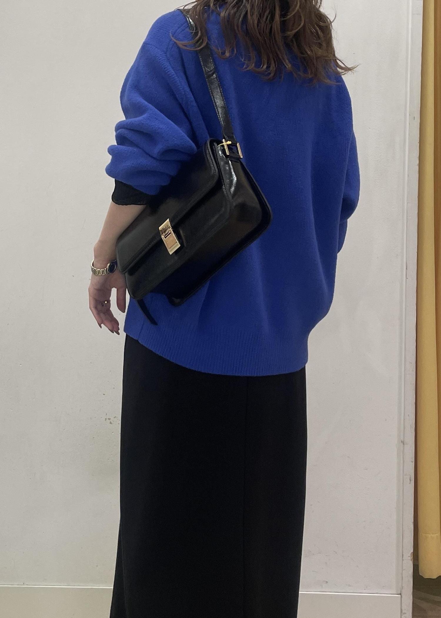 ブルーカラーを主役に他アイテムはブラックでまとめたところがポイントです♩