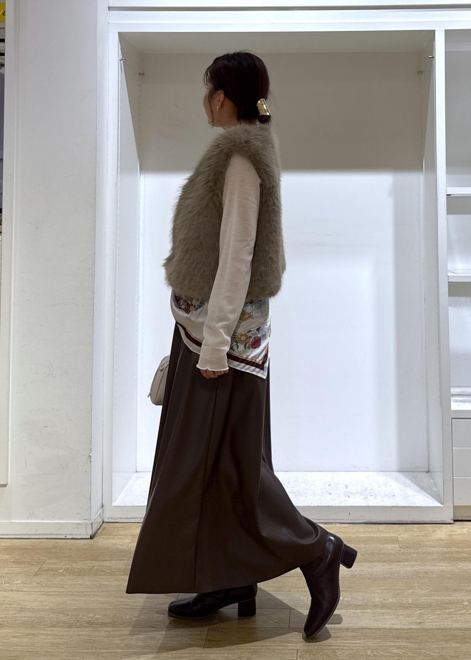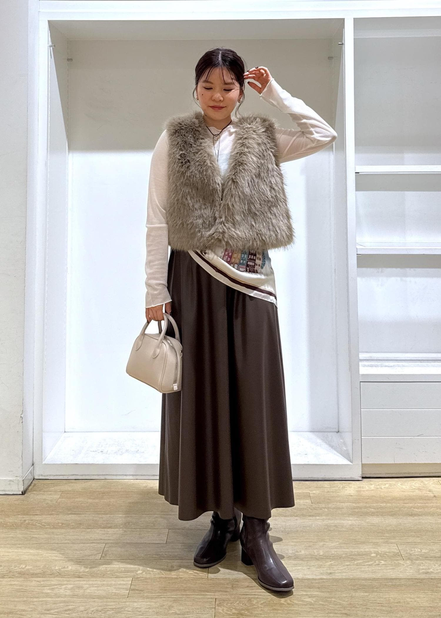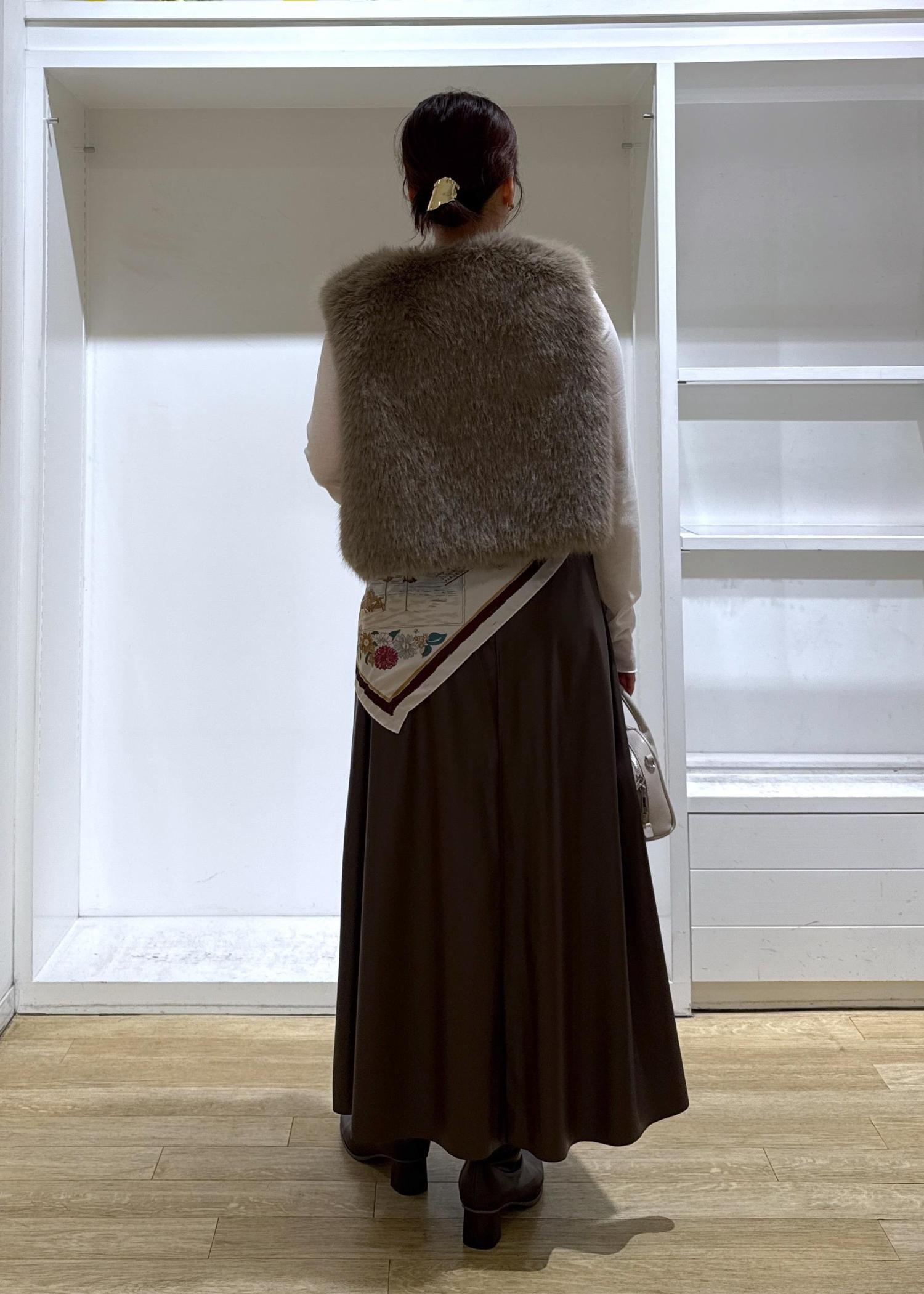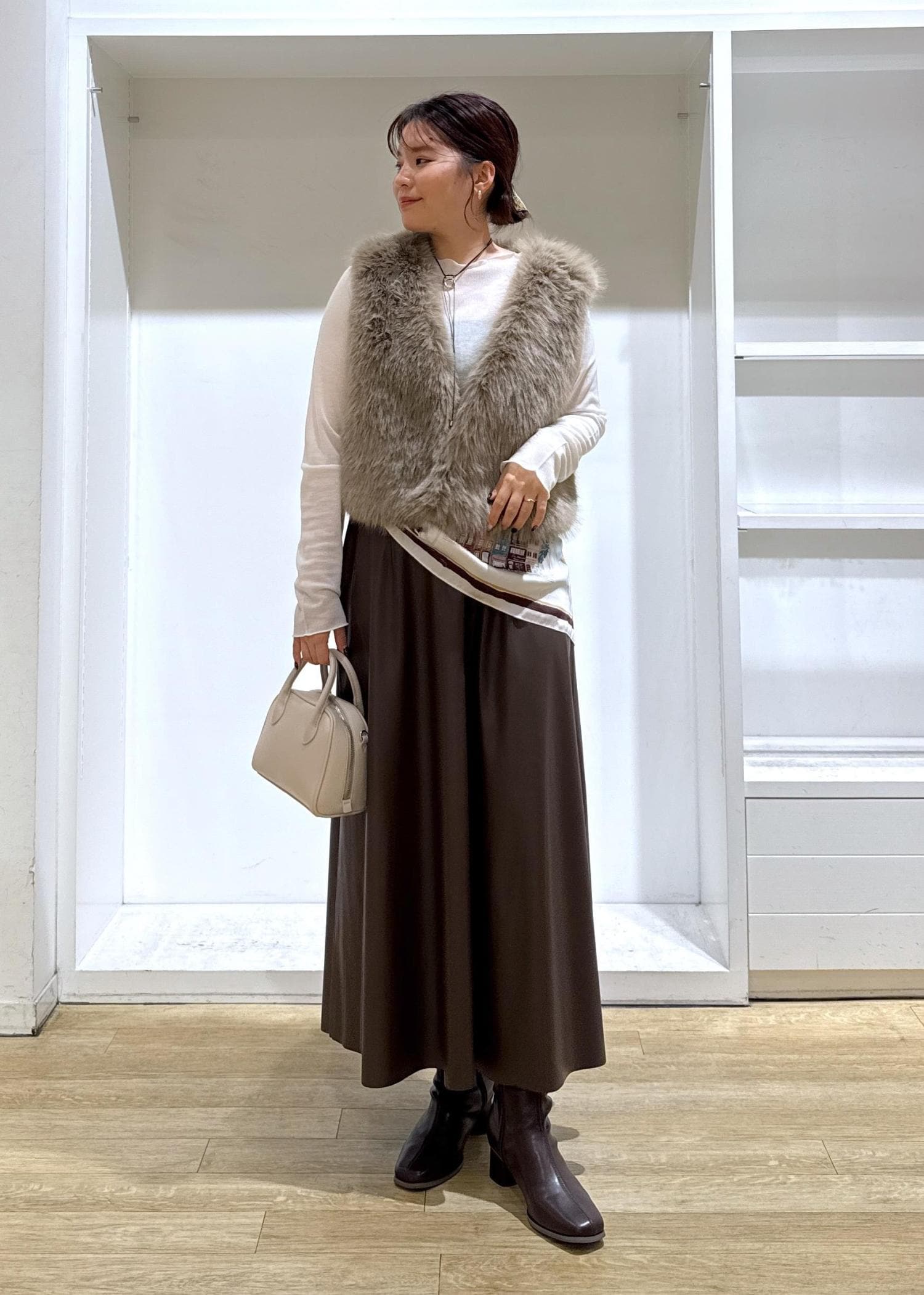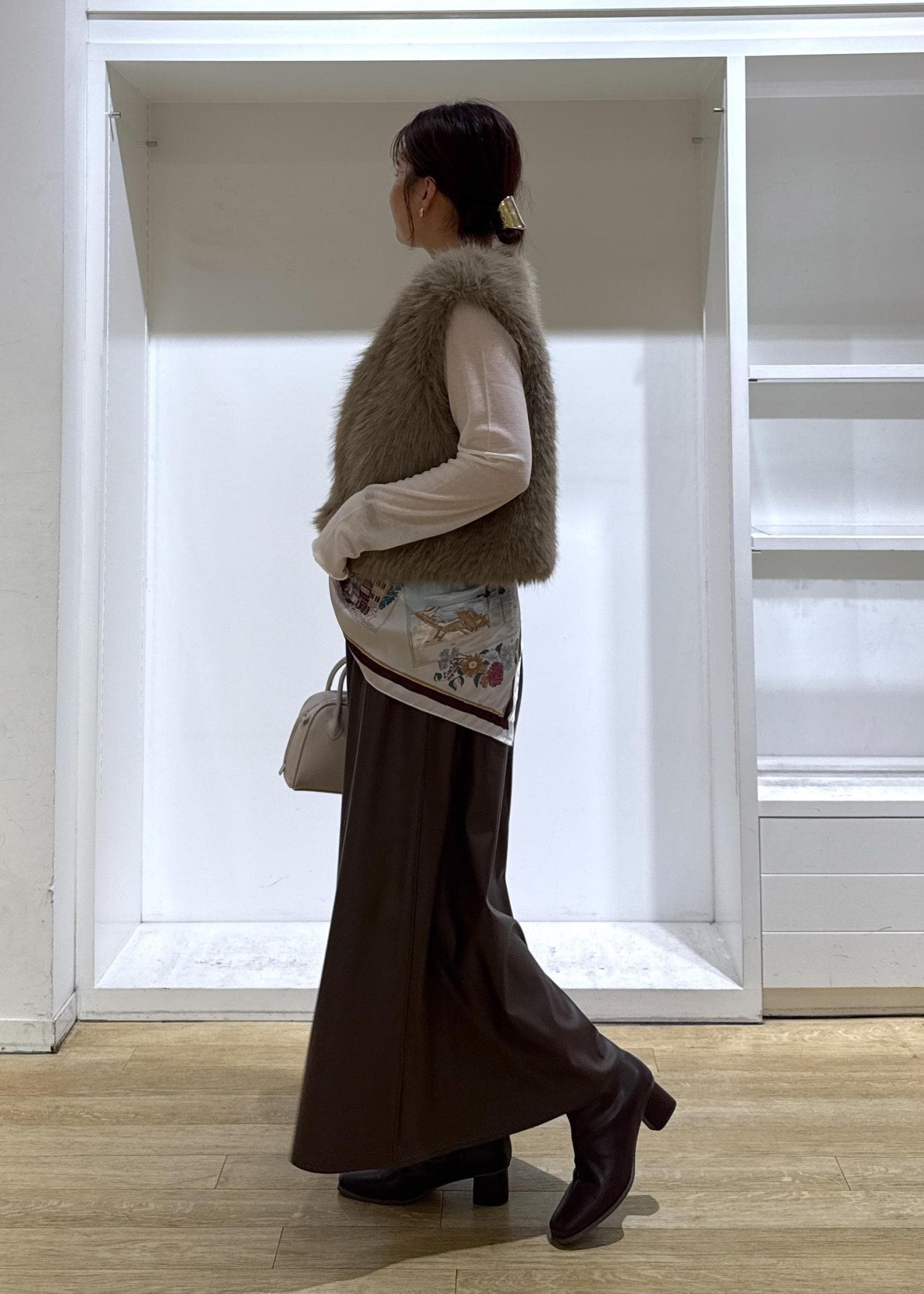 ファーベスト×レザースカートのきれいめカジュアルコーデ