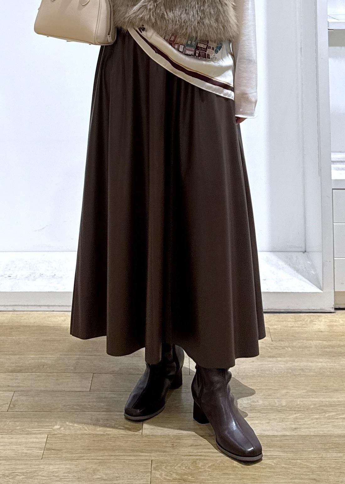 ROPÉ PICNICシンセティックレザーフレアロングスカートダークブラウン / M¥4,994レビューSサイズだとウエストジャストサイズで、Mサイズだとニットをインしても程よくゆとりありました。