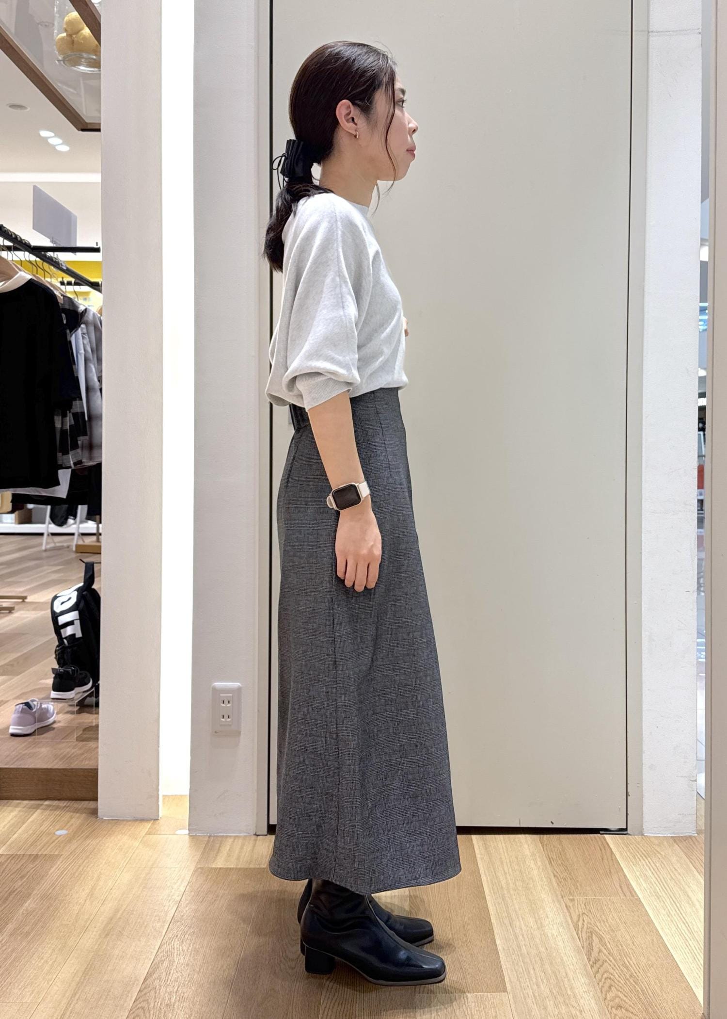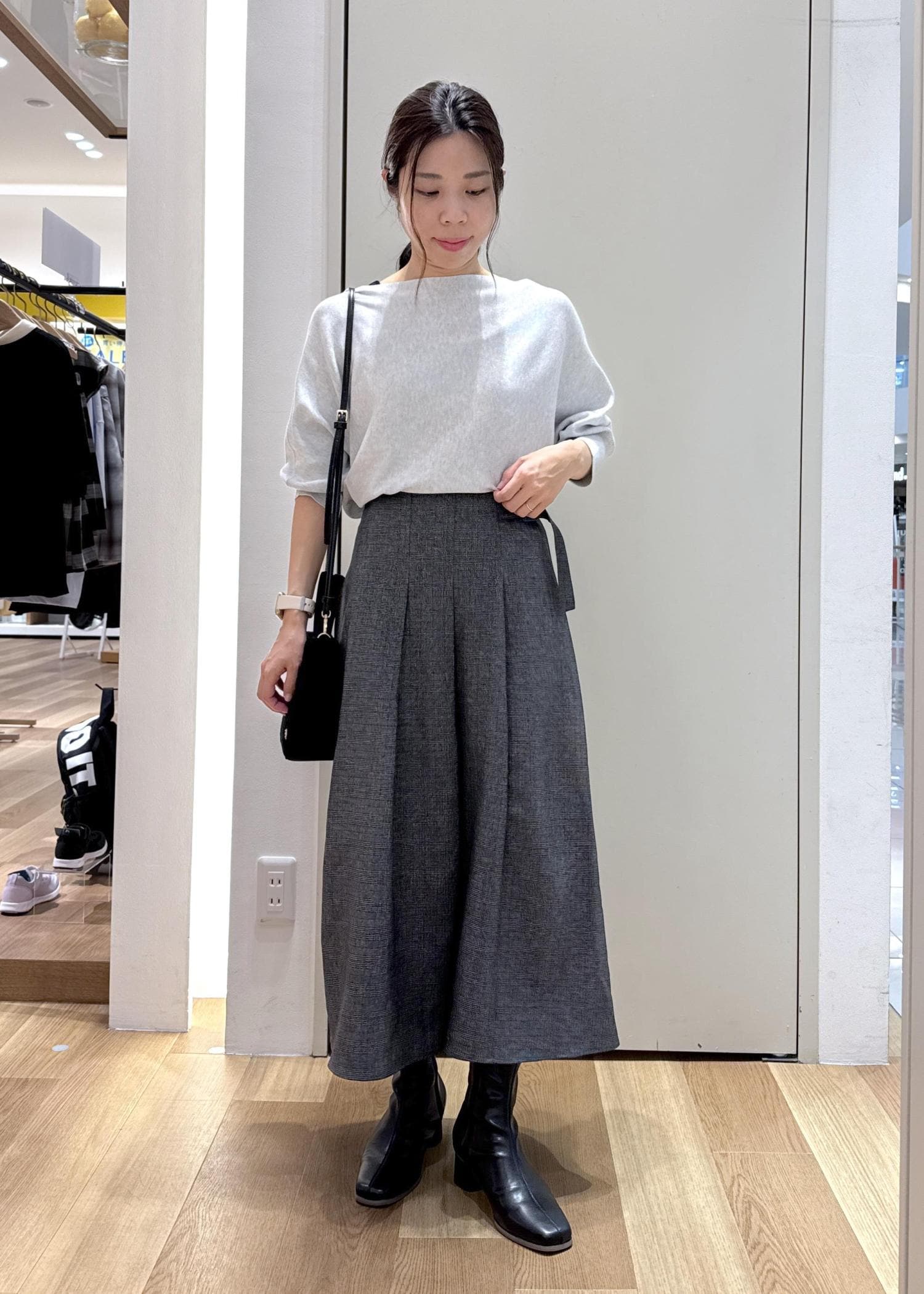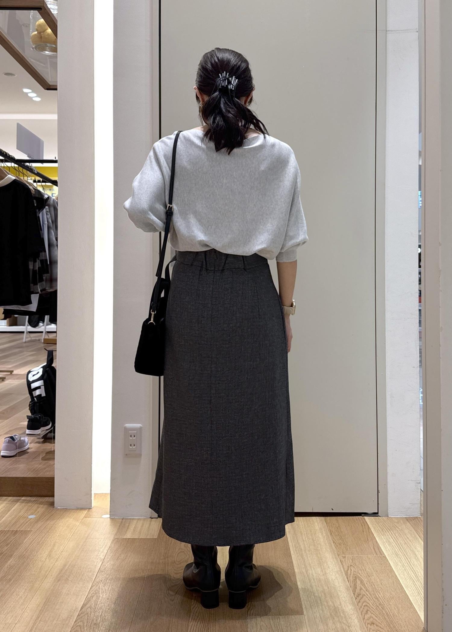 人気のレディハンサムシリーズのスカートに、女性らしいドルマンニットを合わせて大人可愛いスカートコーデにしてみました!