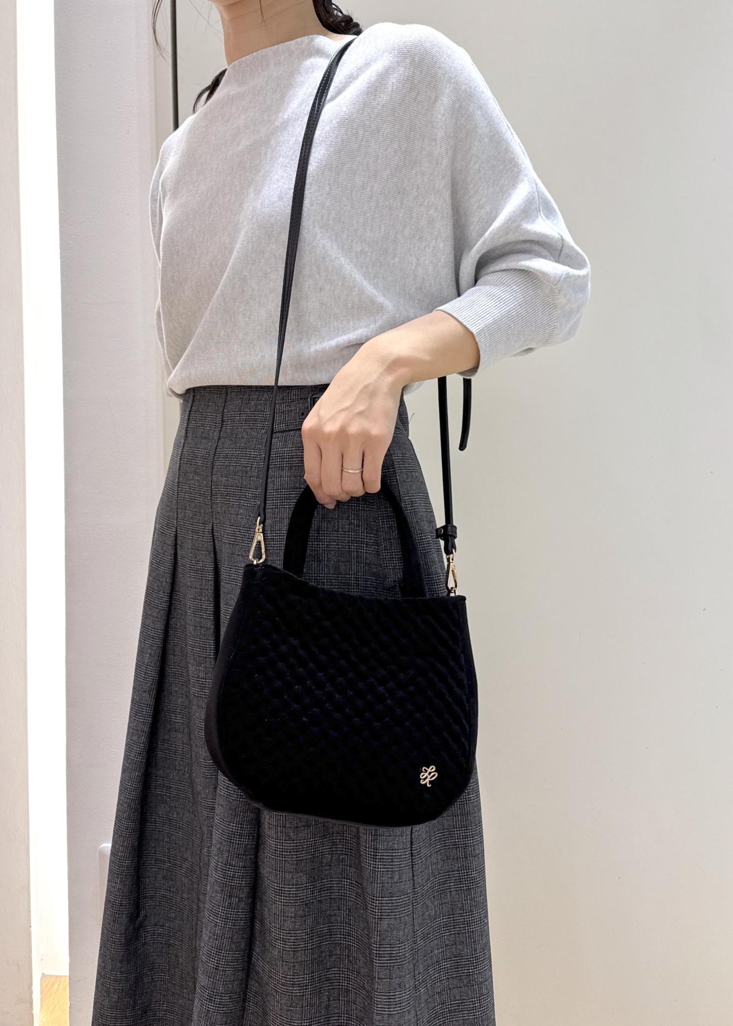 ベロア素材のバッグやブーツを合わせて小物からも秋らしさをプラスしています♪