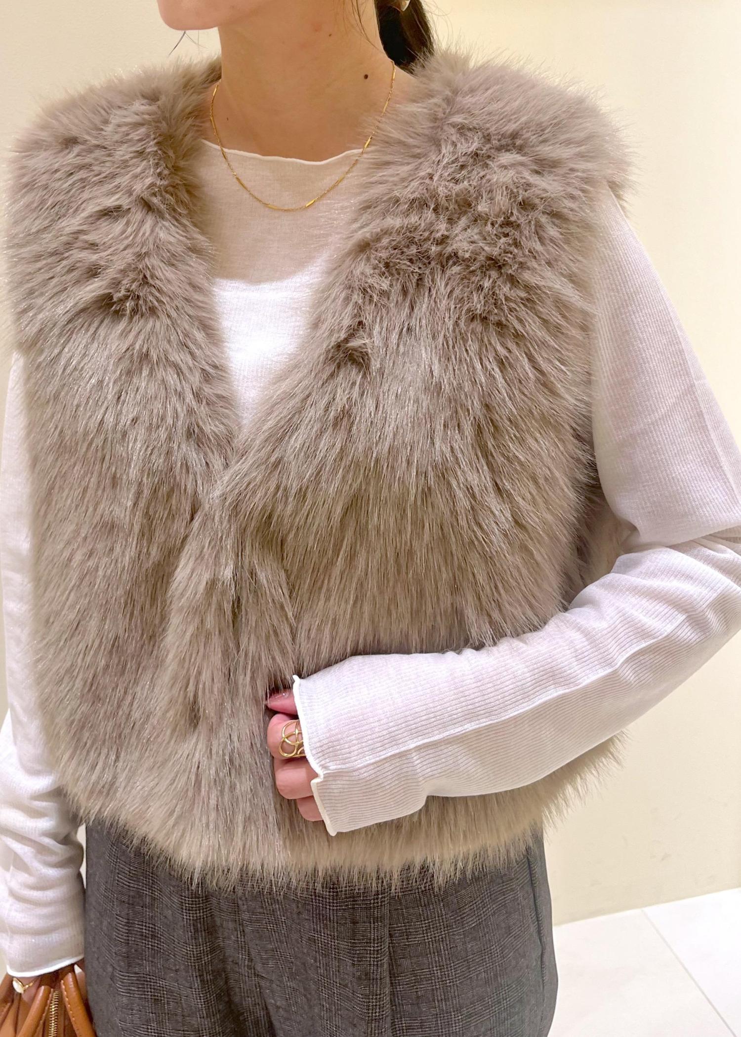 ROPÉ PICNICファーベストダークブラウン / F¥6,996レビューふわふわの毛足が気持ち良いファーベスト。秋冬のマストアイテムです◎