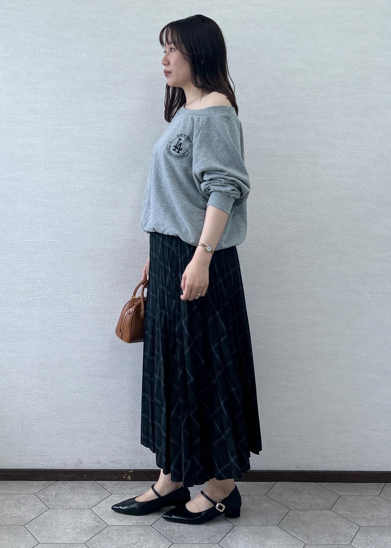 プリーツが立体で入っているので、腰回りをカバーしてくれます。