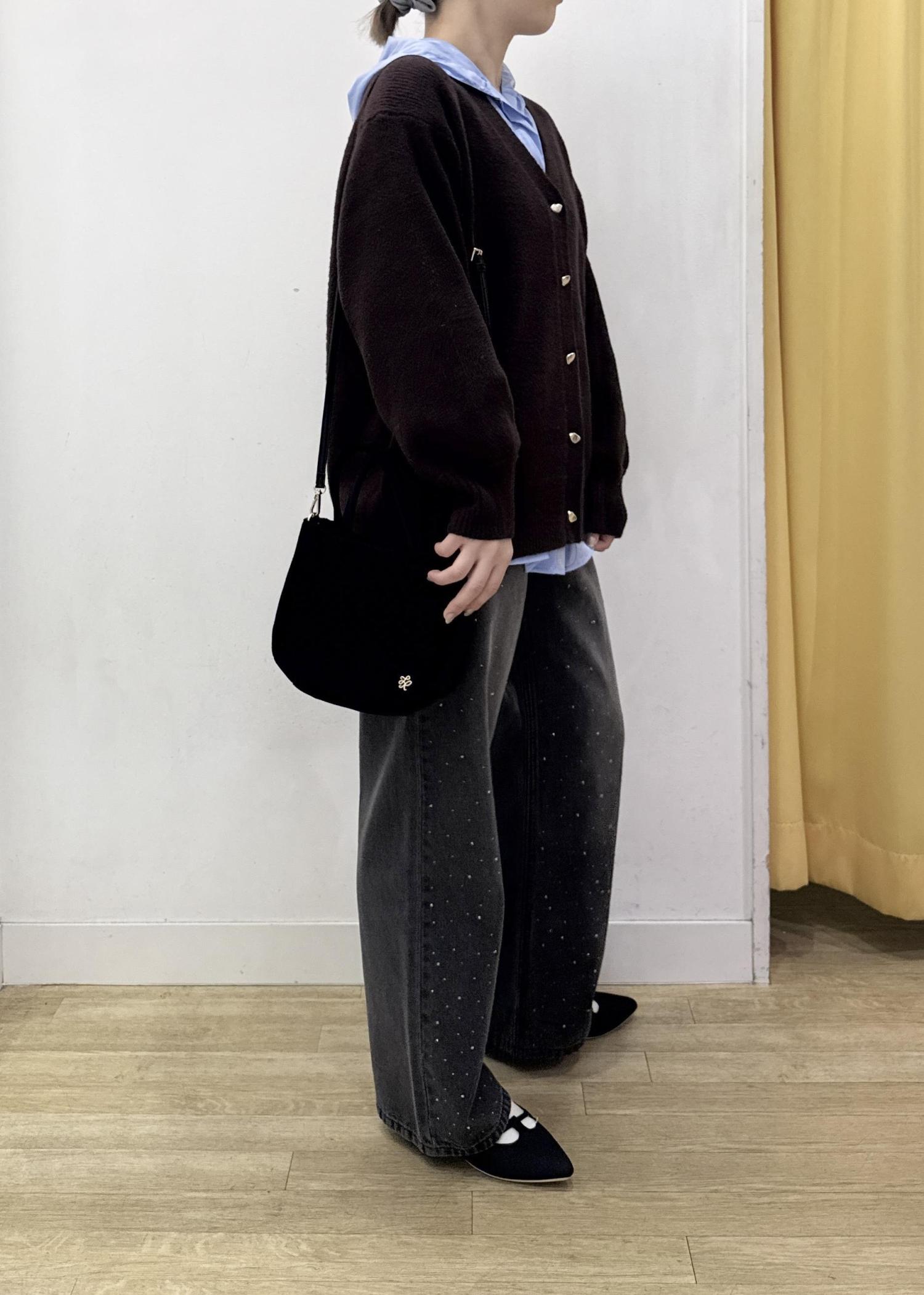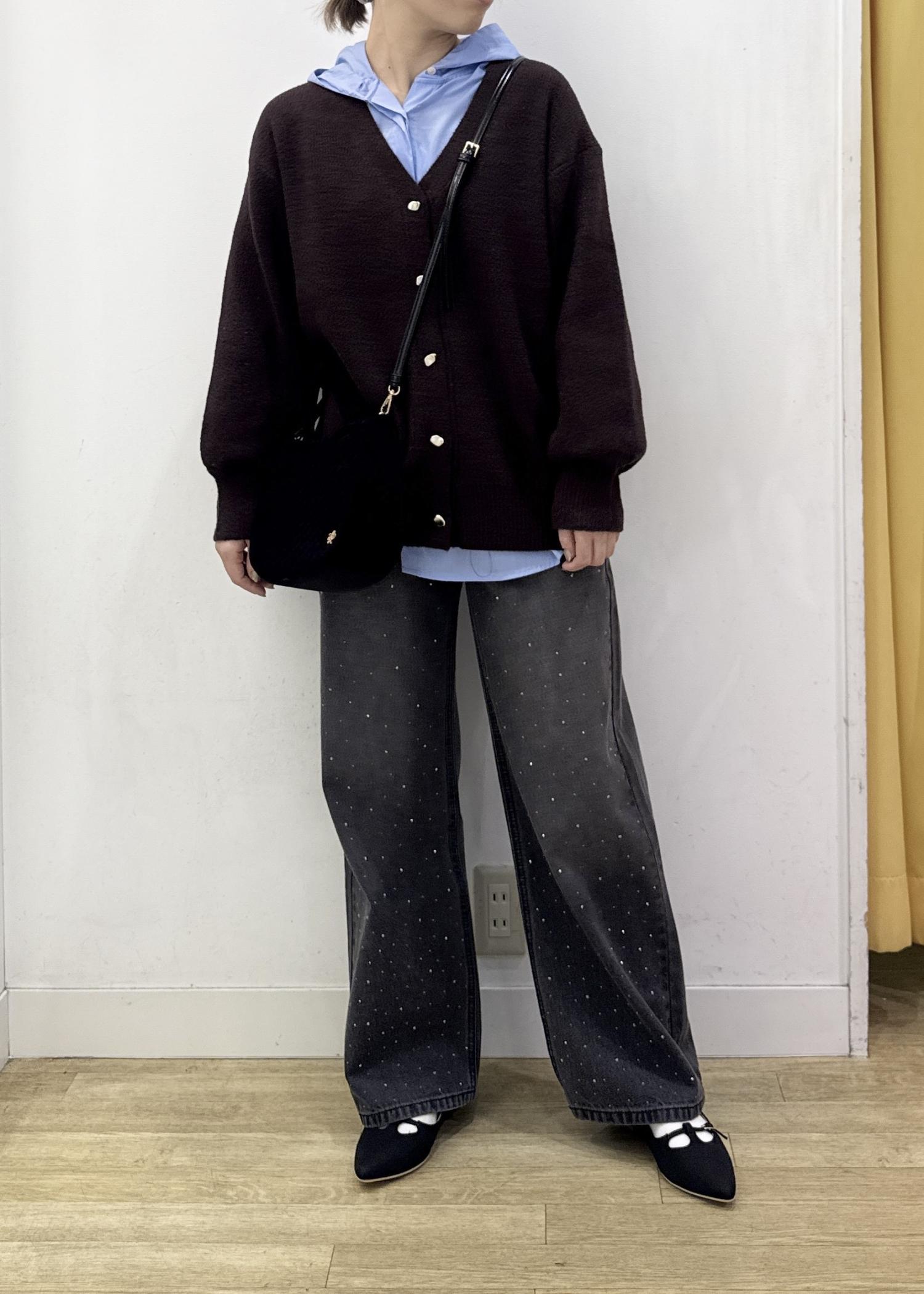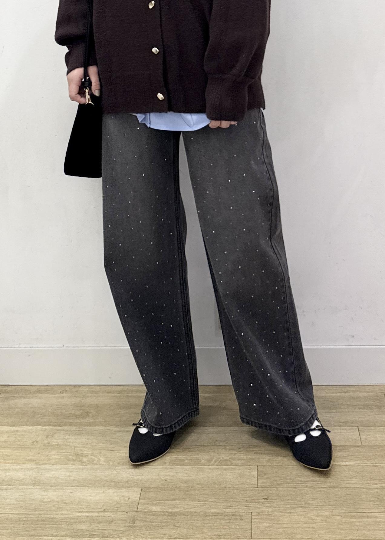 脚のラインは拾わないワイドシルエットで、カジュアルになりがちなデニムもビジューデザインで華やかに着ていただけます。 -