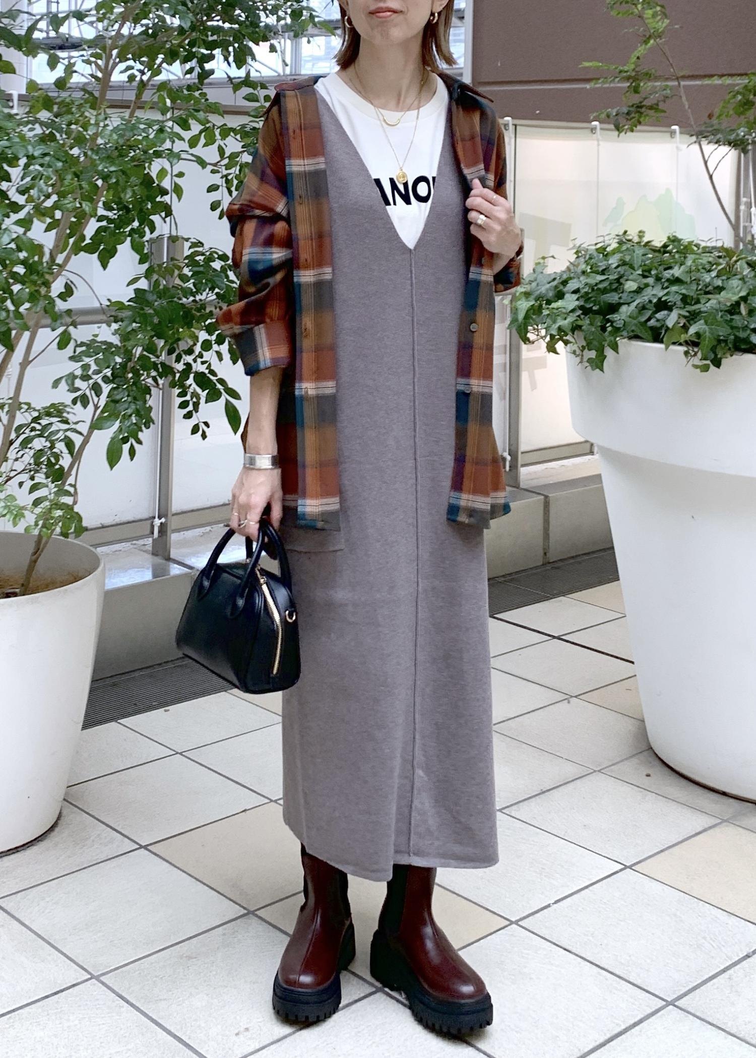 ロペピクニック秋冬の定番ニットジャンスカの秋スタイリング。