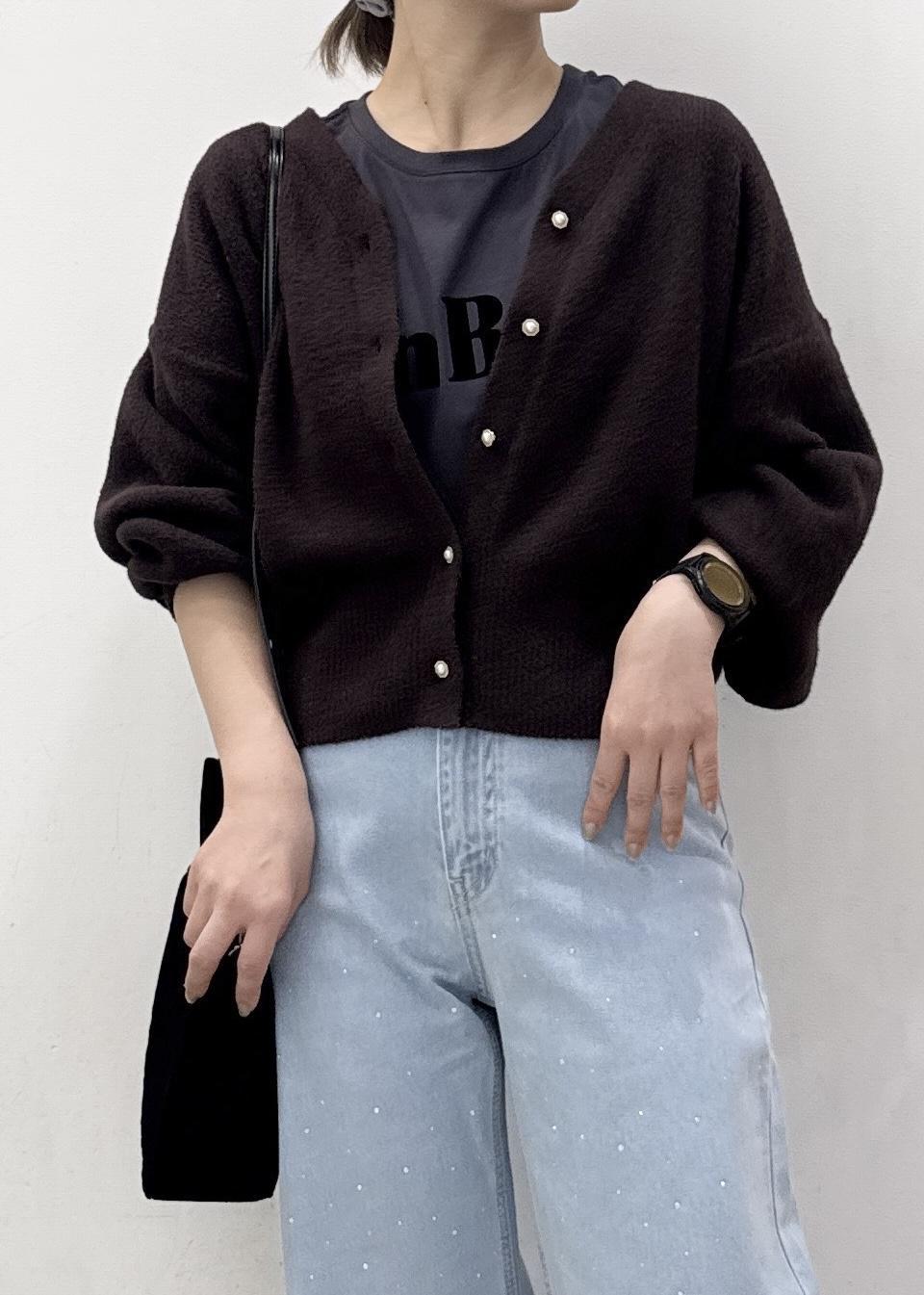【新色追加】スフレニットシリーズ パールボタンショートカーディガン/イージーケア・リンクコーデ