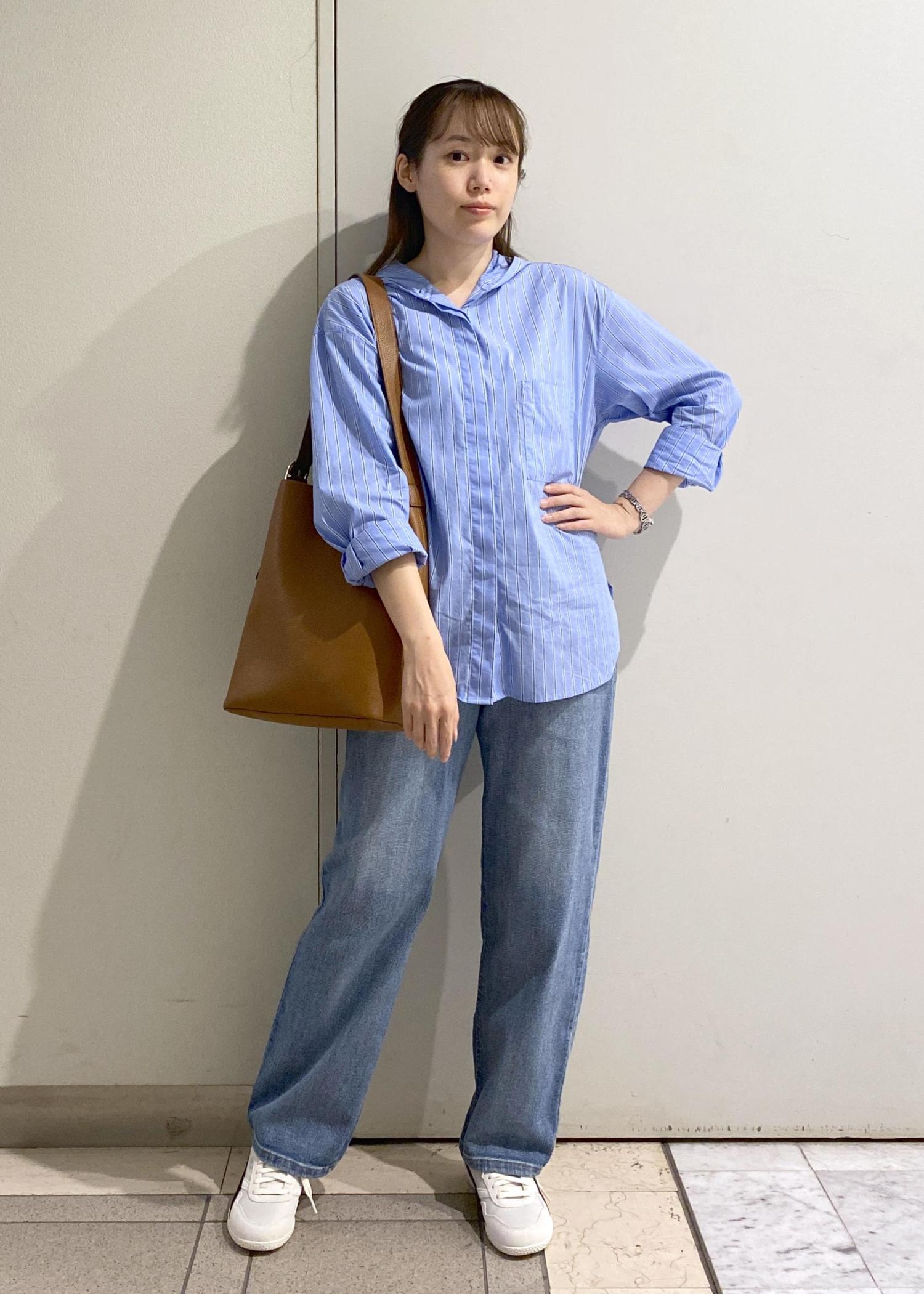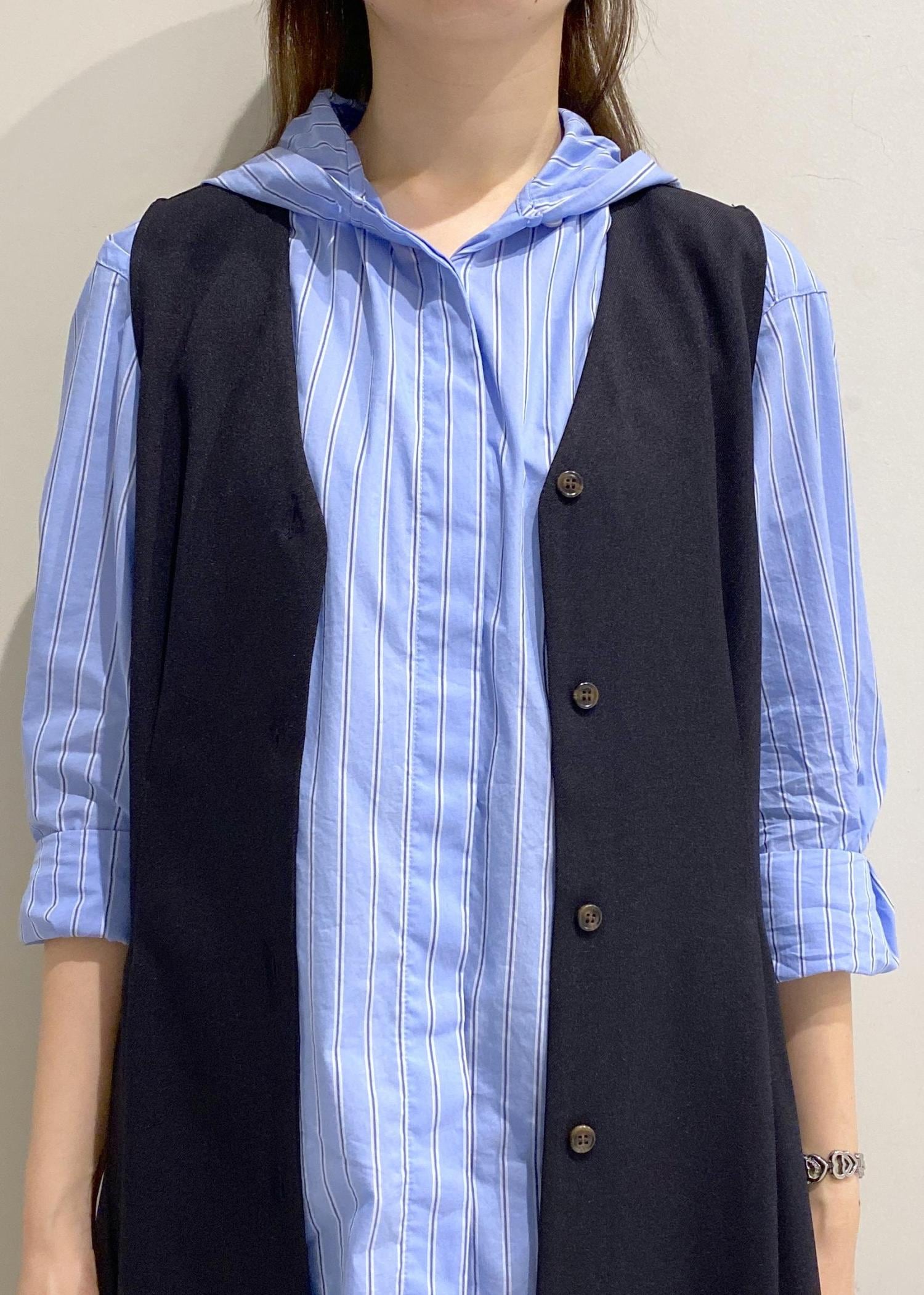 ROPÉ PICNICシャツフーディーブルー / F¥4,499レビューシャツなのに襟ではなくフードの付いた珍しいデザイン。