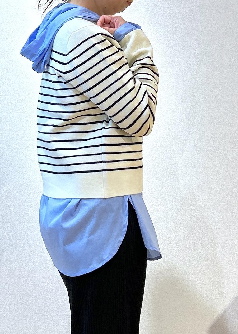 ROPÉ PICNICシャツフーディーサックス / F¥4,499レビュー軽くてゆったりしてるので着心地が楽です。ニットやジャケットでインナーにしても薄いのでかさばりにくかったです。着丈は骨盤かかるくらいの長さです。袖丈も手の甲がかかるくらいです。襟元がボタンのあきぐらいで印象が変わるのがいいですよ。