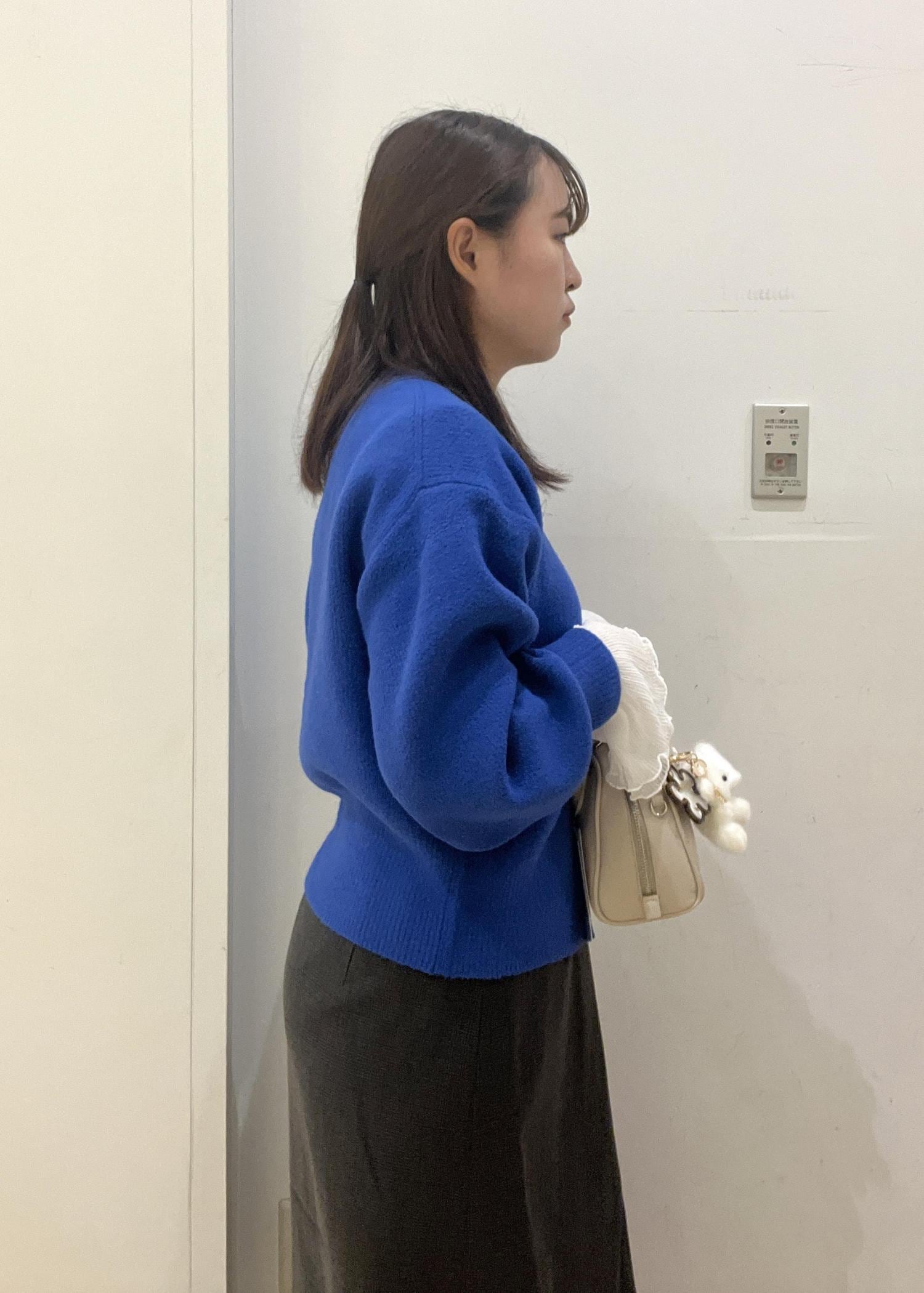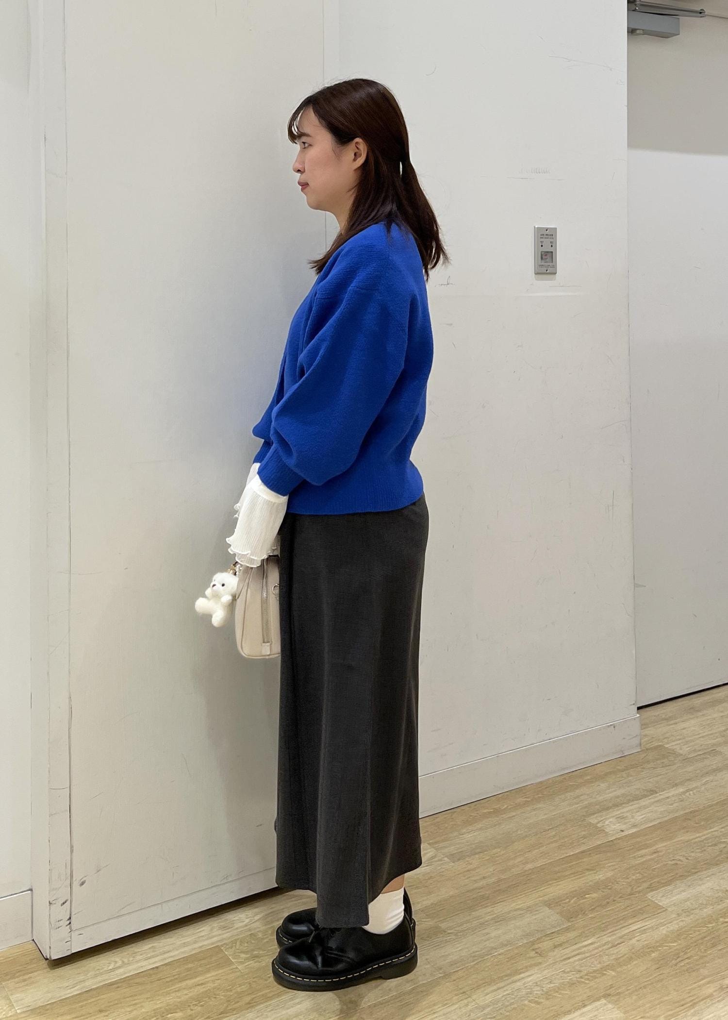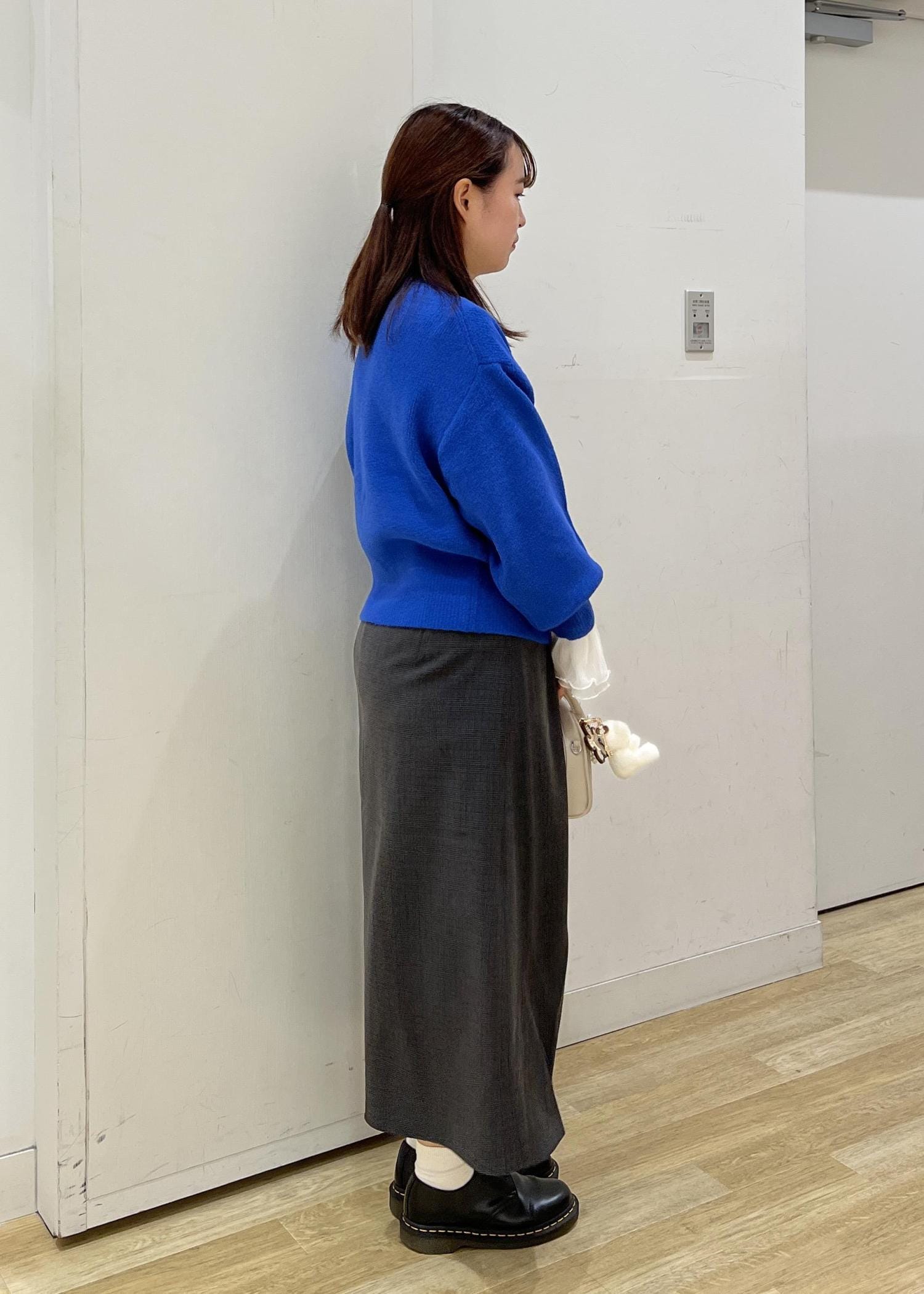 カーディガンと袖口にデザインのあるカットソーを合わせてトレンド感あるコーディネートにしました◎色味のあるカーディガンなのでスカートはシンプルにしました!