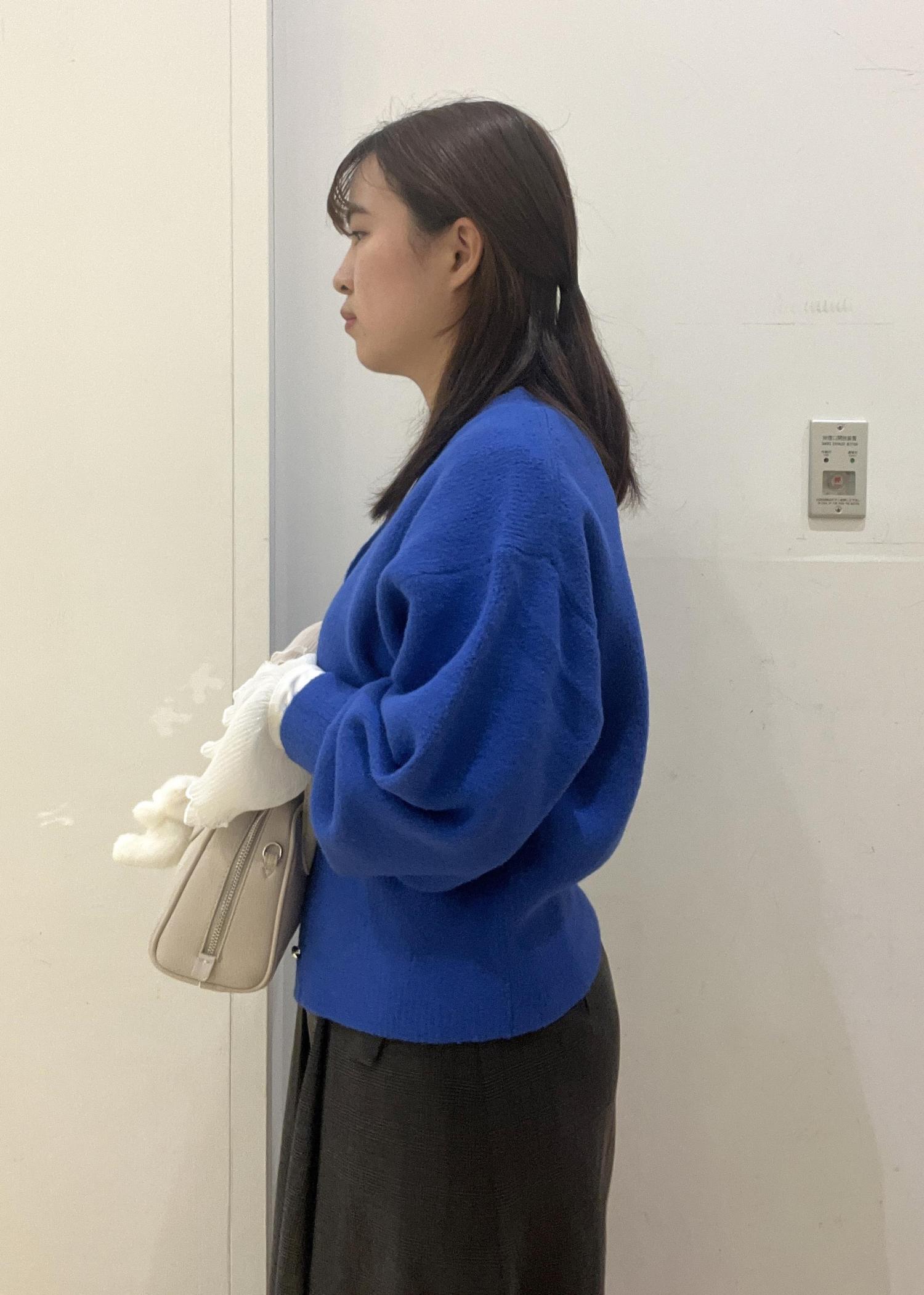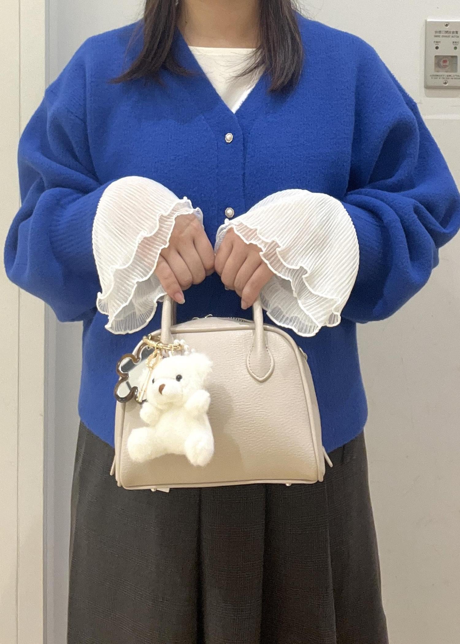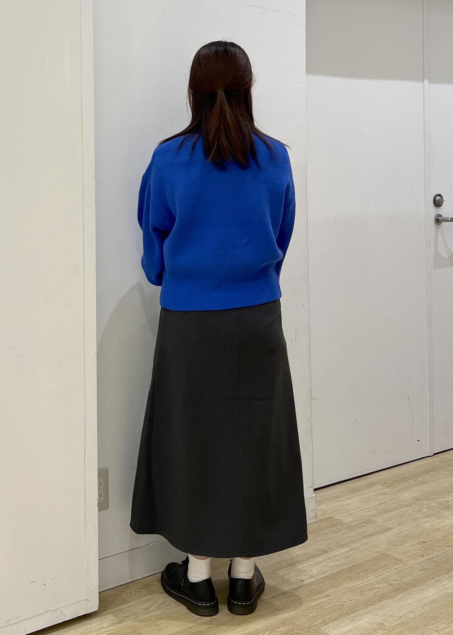 カーディガンと袖口にデザインのあるカットソーを合わせてトレンド感あるコーディネートにしました◎色味のあるカーディガンなのでスカートはシンプルにしました!