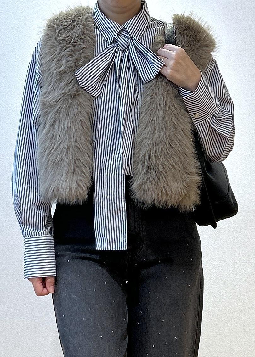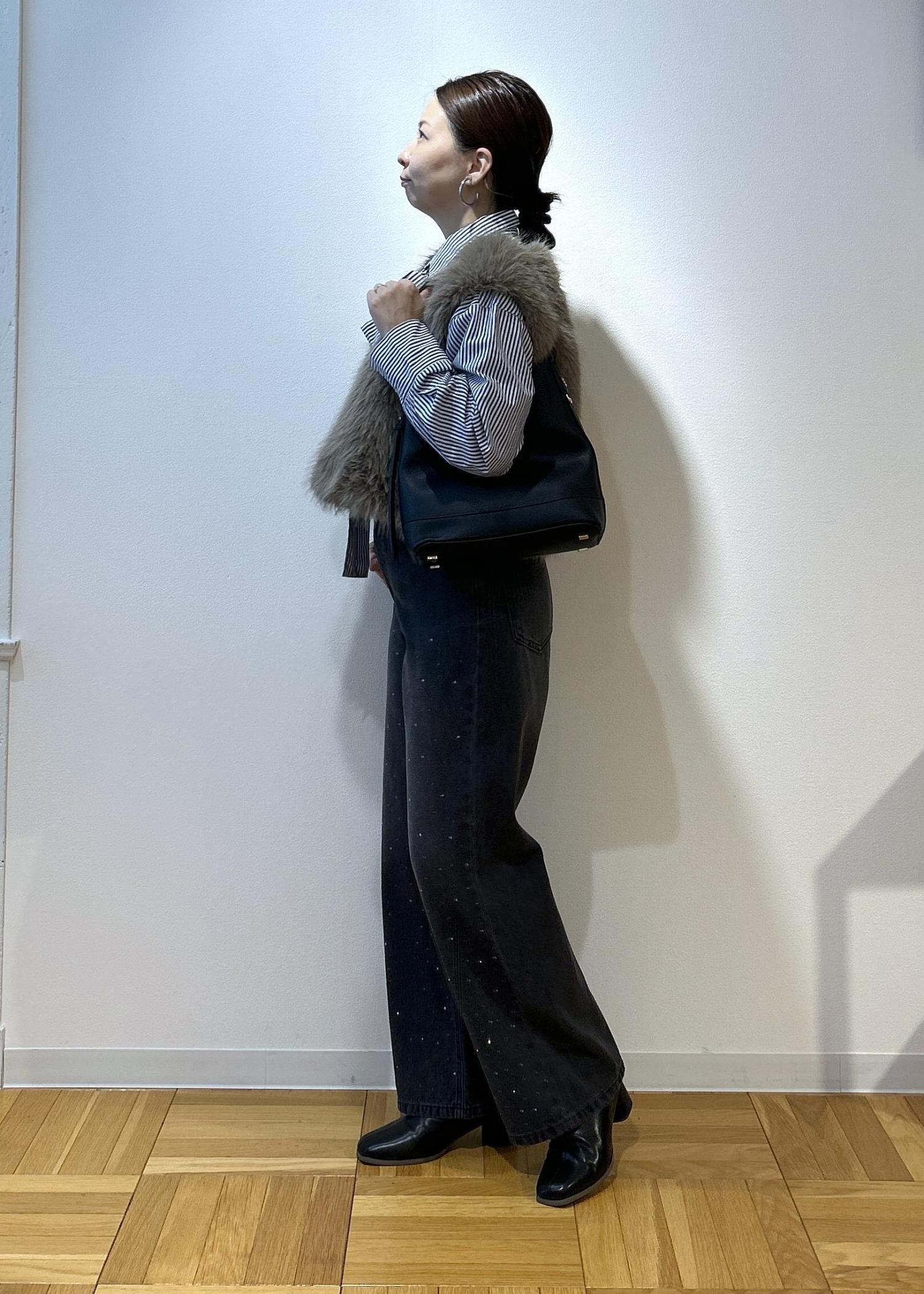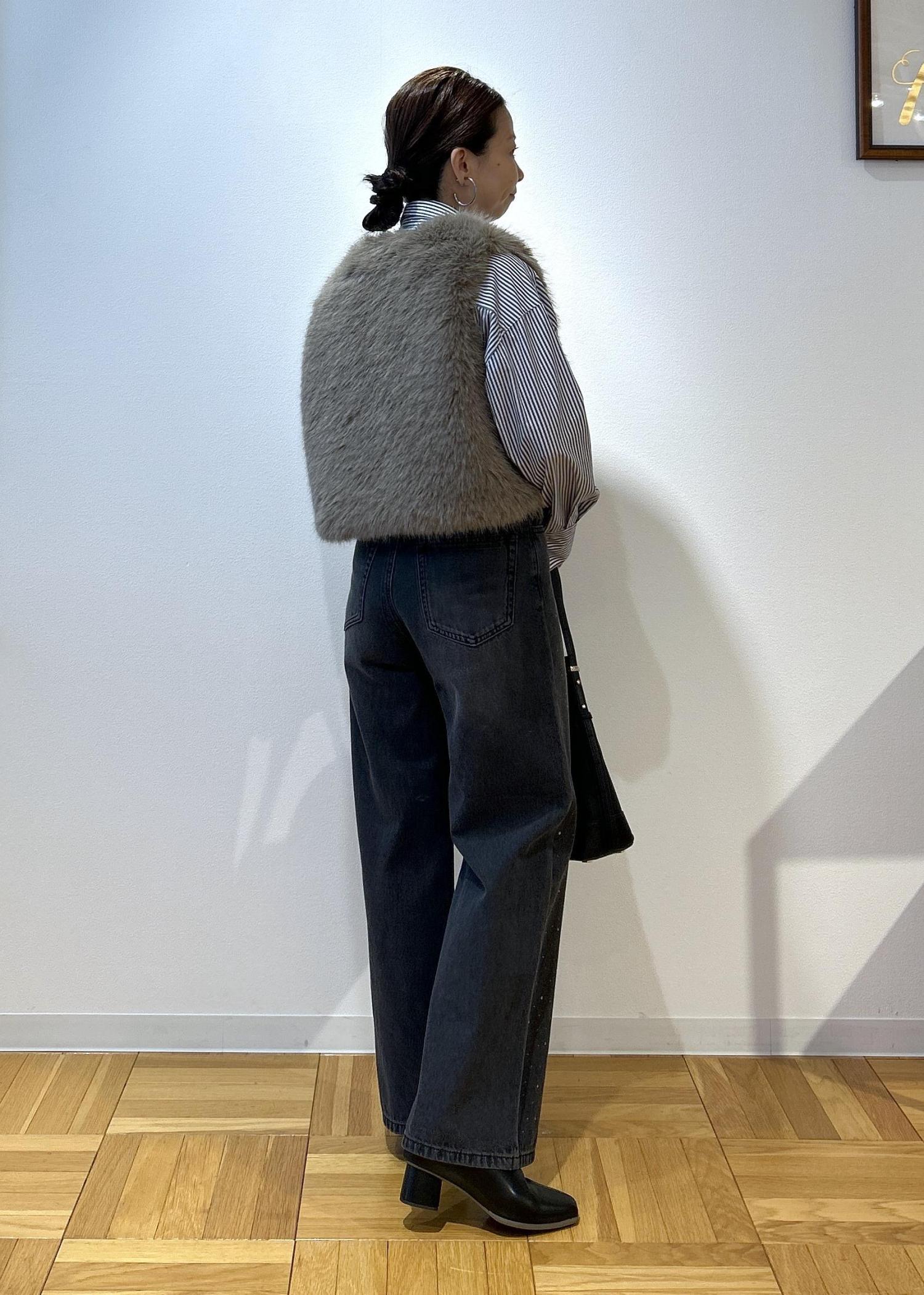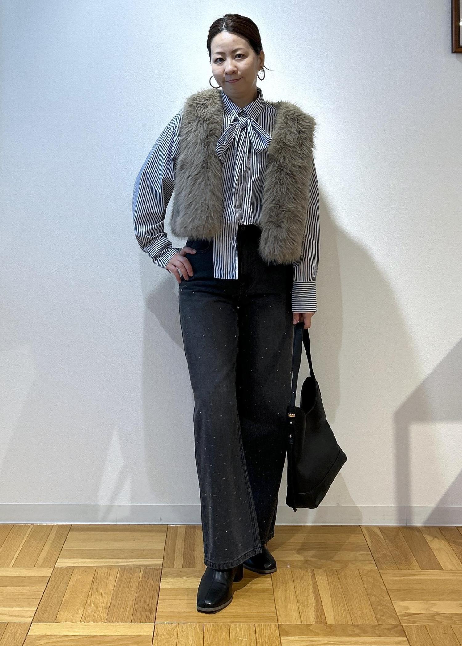 ROPÉ PICNICファーベストダークブラウン / F¥6,996レビュー着丈はウエストあたりで、コンパクトな丈感なので脚長効果も出してくれます。フアフア感が華やかさを出してくれますし、一気にオシャレ感がでます!