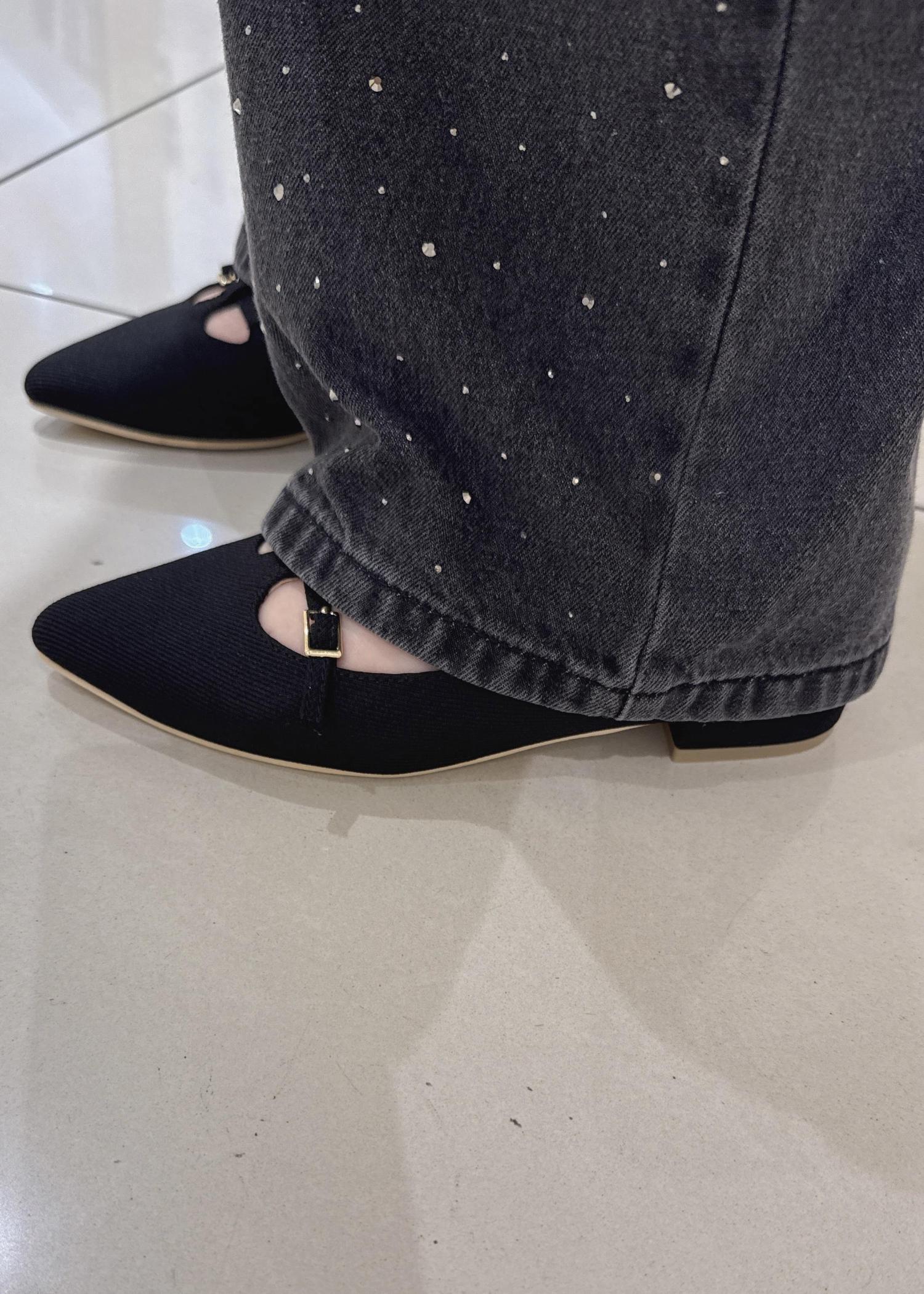 ROPÉ PICNIC PASSAGETストラップフラットパンプスブラック / S¥5,995レビュー表はスウェード調の素材で柔らかくとても履きやすいです。
