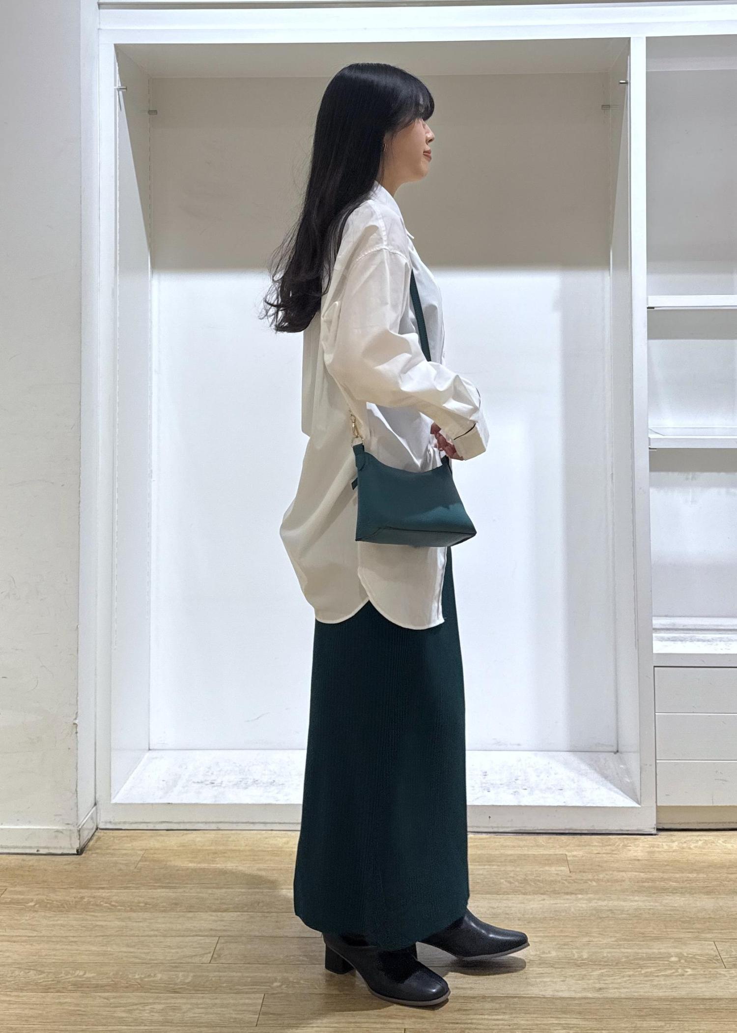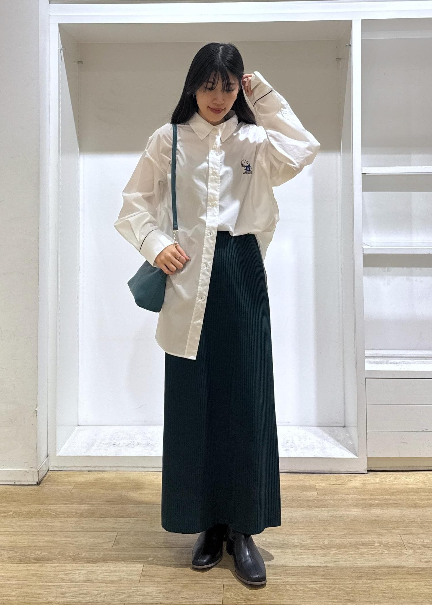 ハリのある素材で、短めのボトムスと合わせるとワンピースっぽく着用もできます!