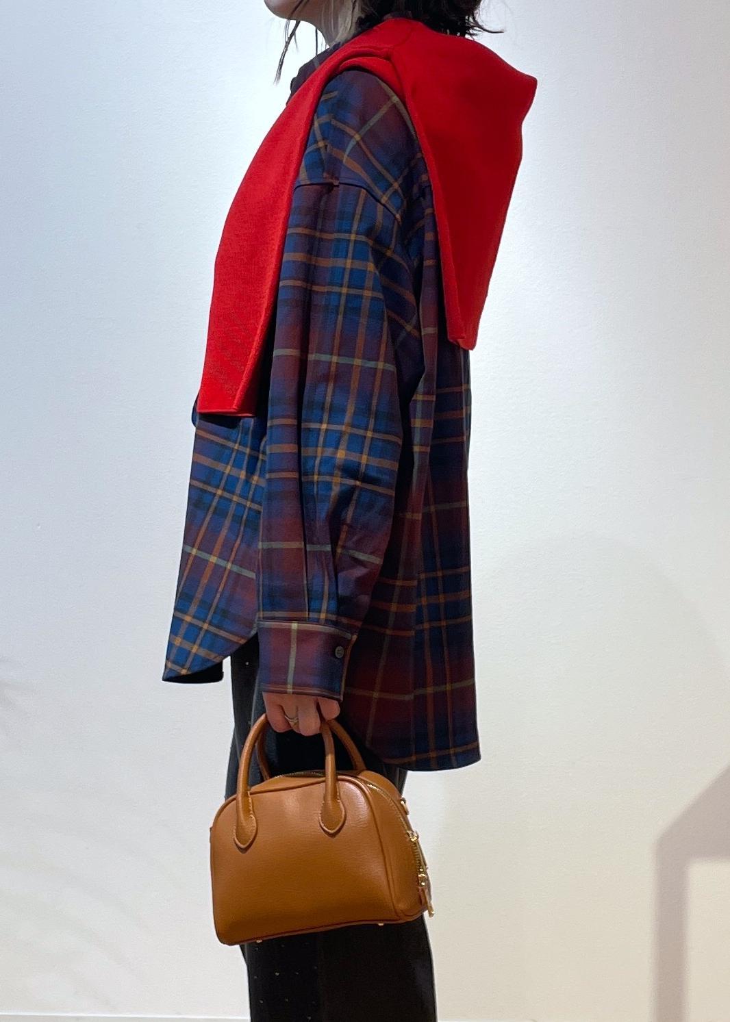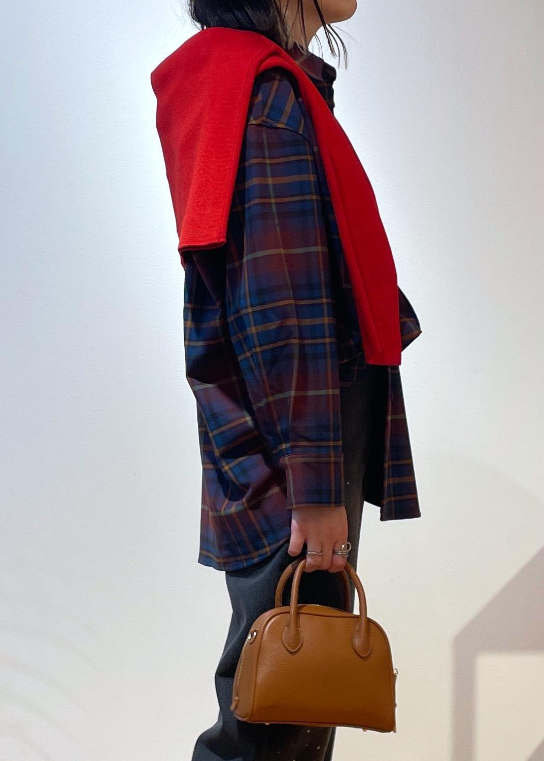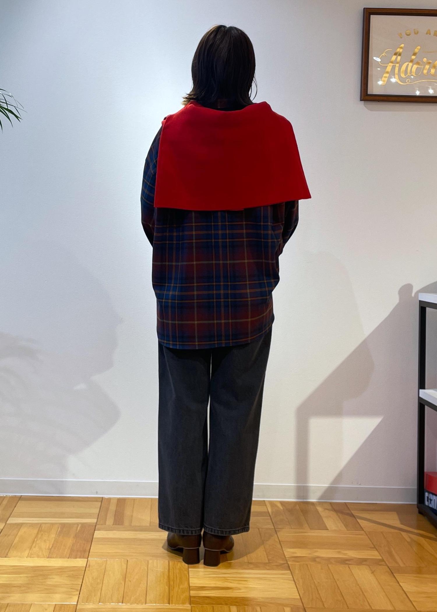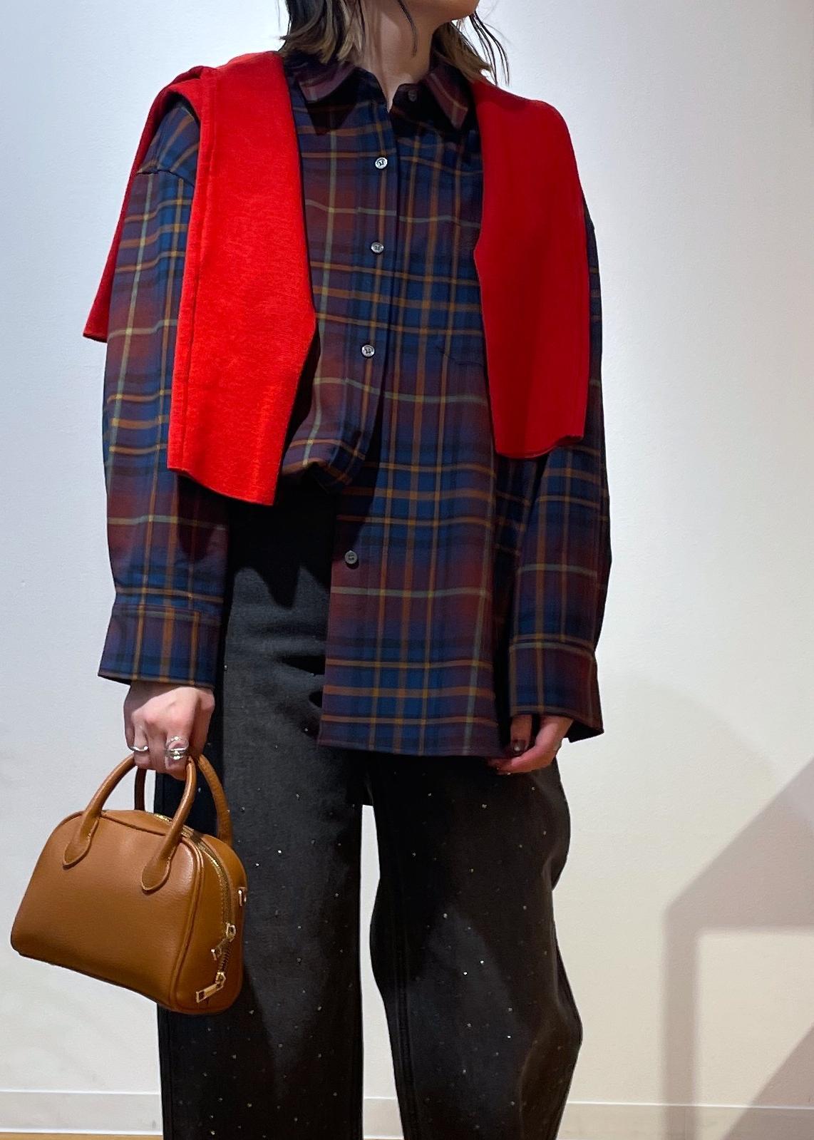 まだ少し残暑を感じるのでら、ミラノリブカーディガンは肩がけに...ネルシャツと色を合わせて、デニムは落ち着いた色でメリハリをつけました◎