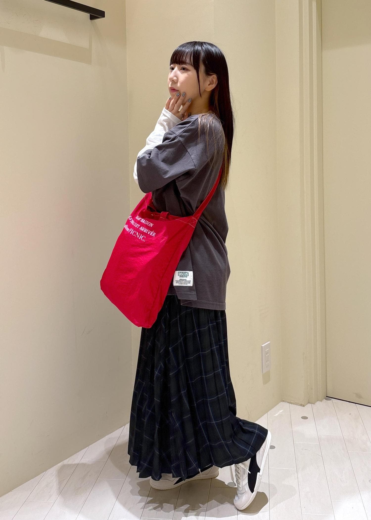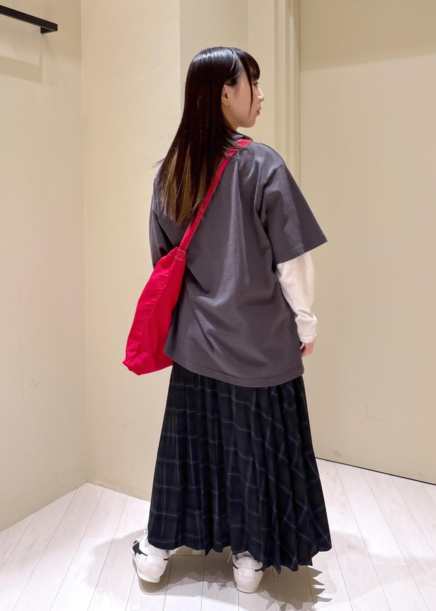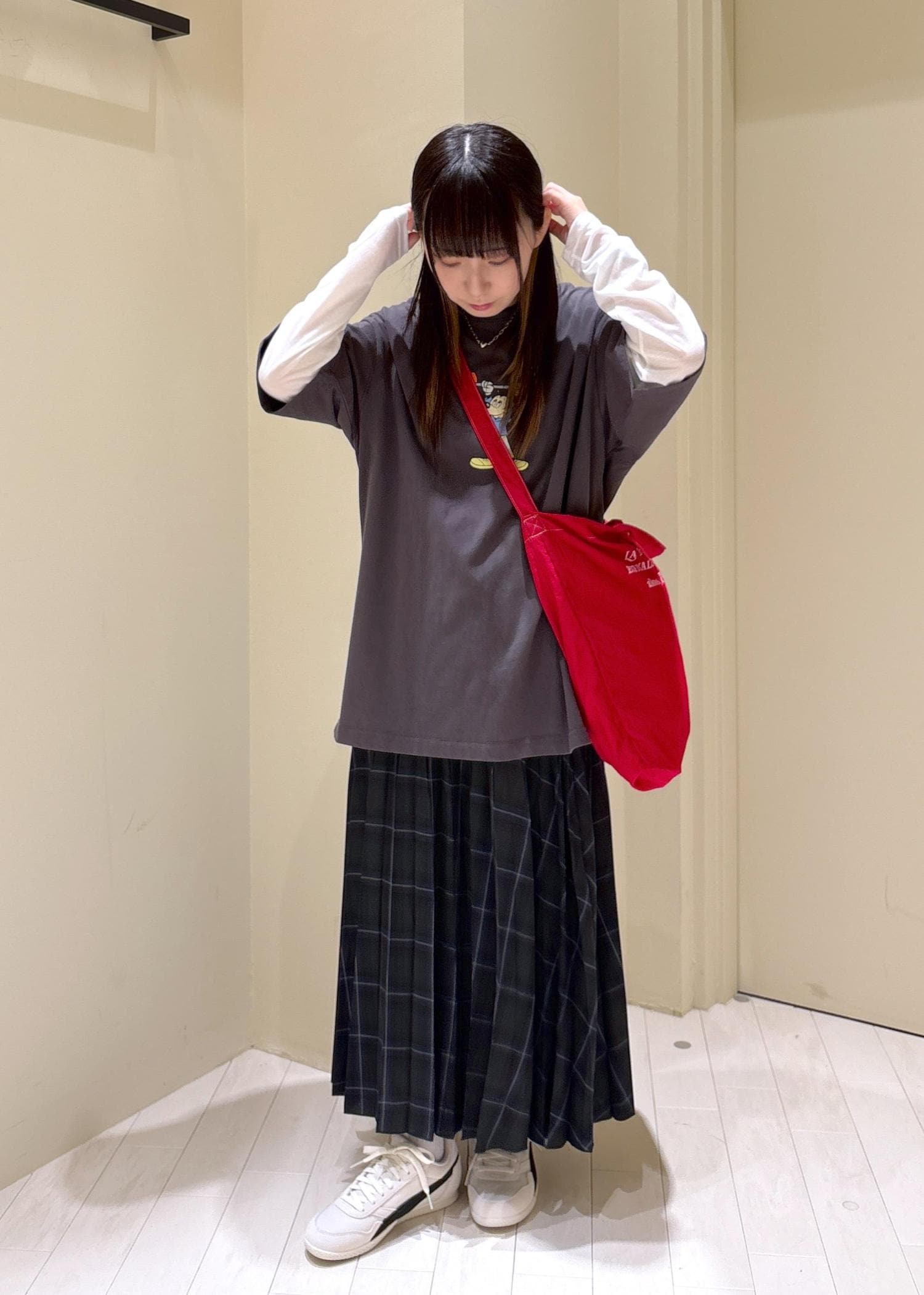 スニーカー×Tシャツで動きやすさを、チェック×秋色で写真映えを意識しました❤︎