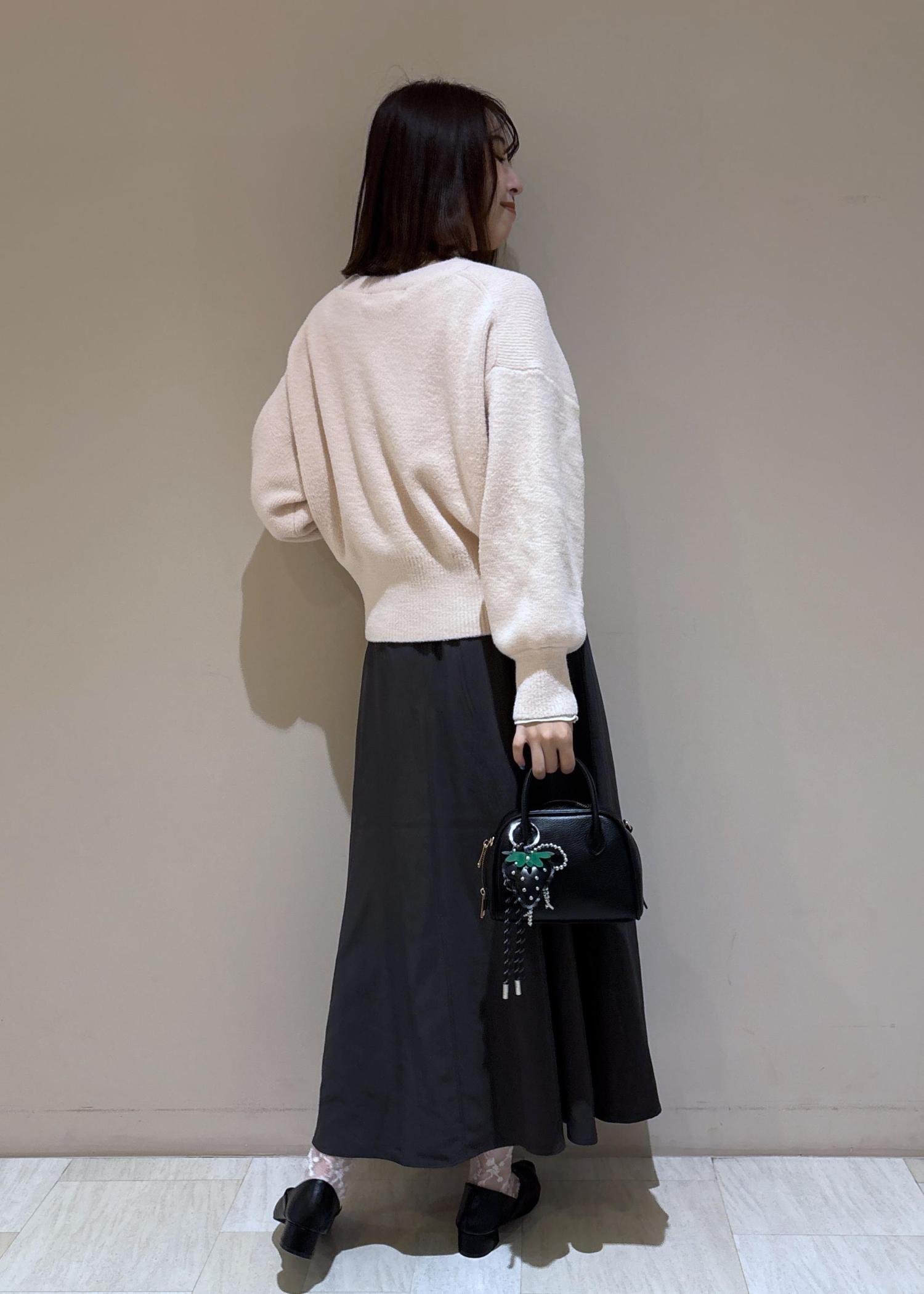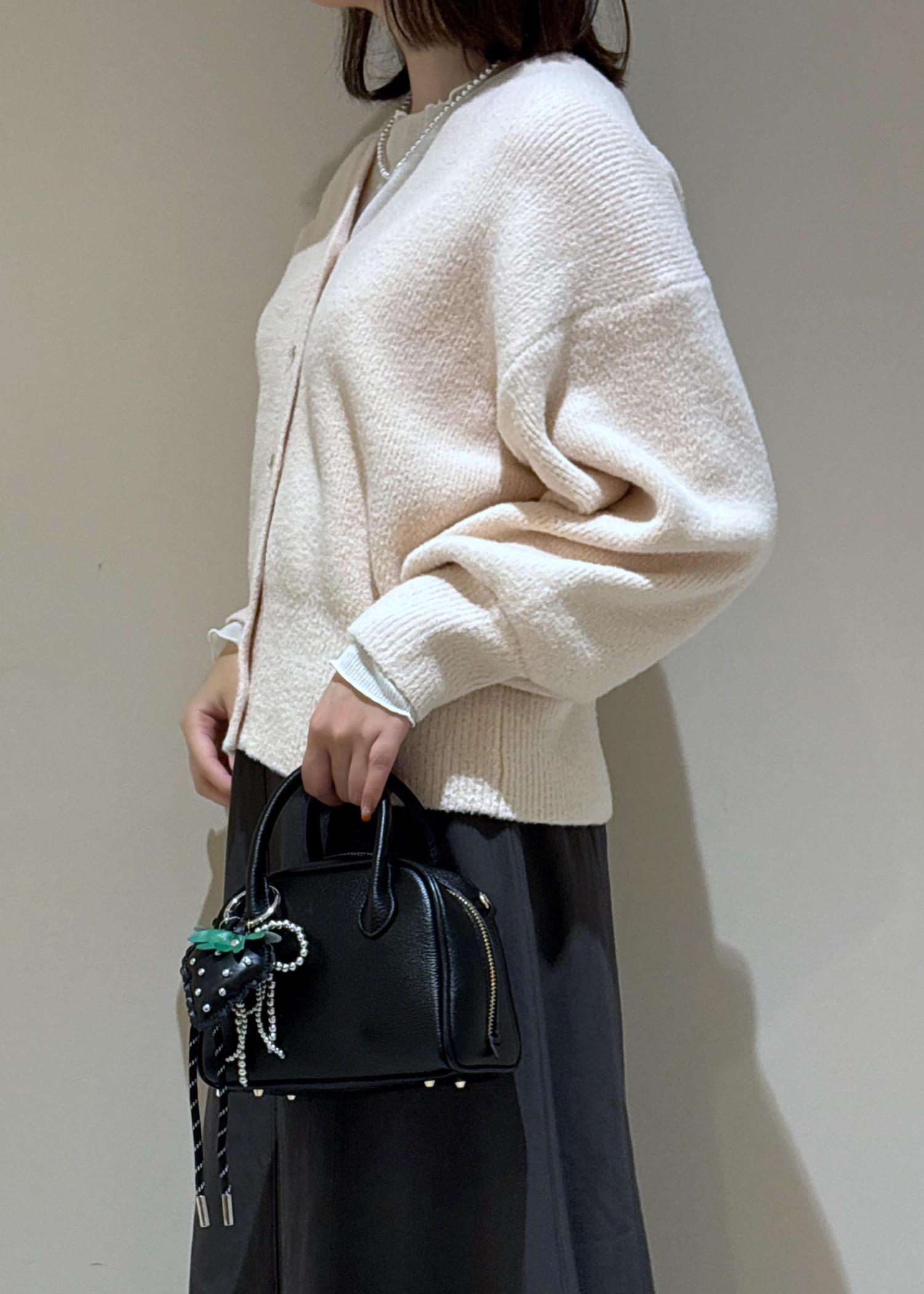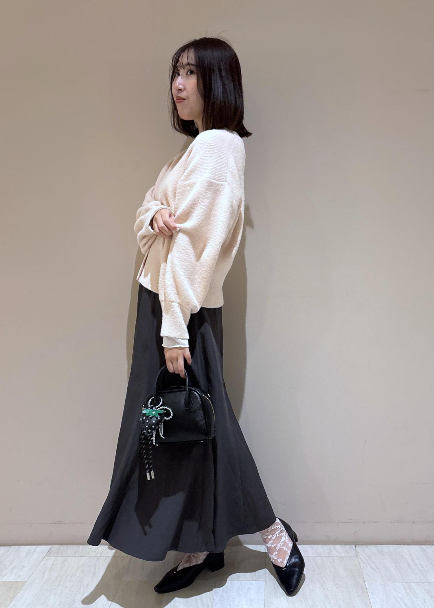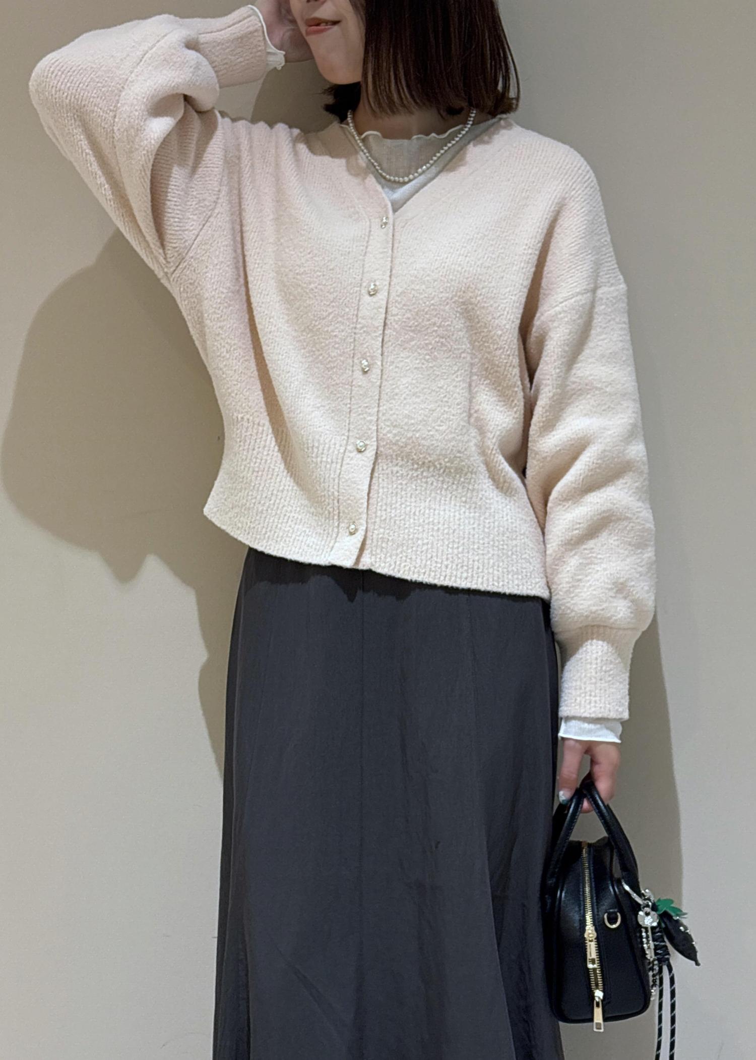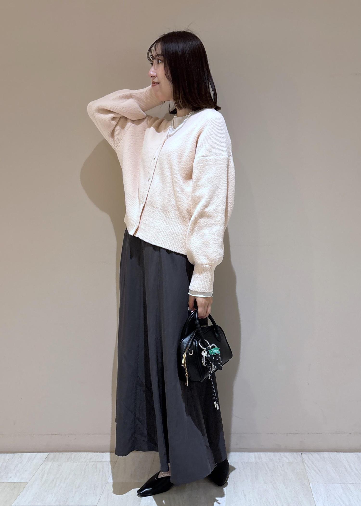 ふわもちっとした肌触りの良いカーディガンにキレイめなスカートを合わせた大人女子コーデ。