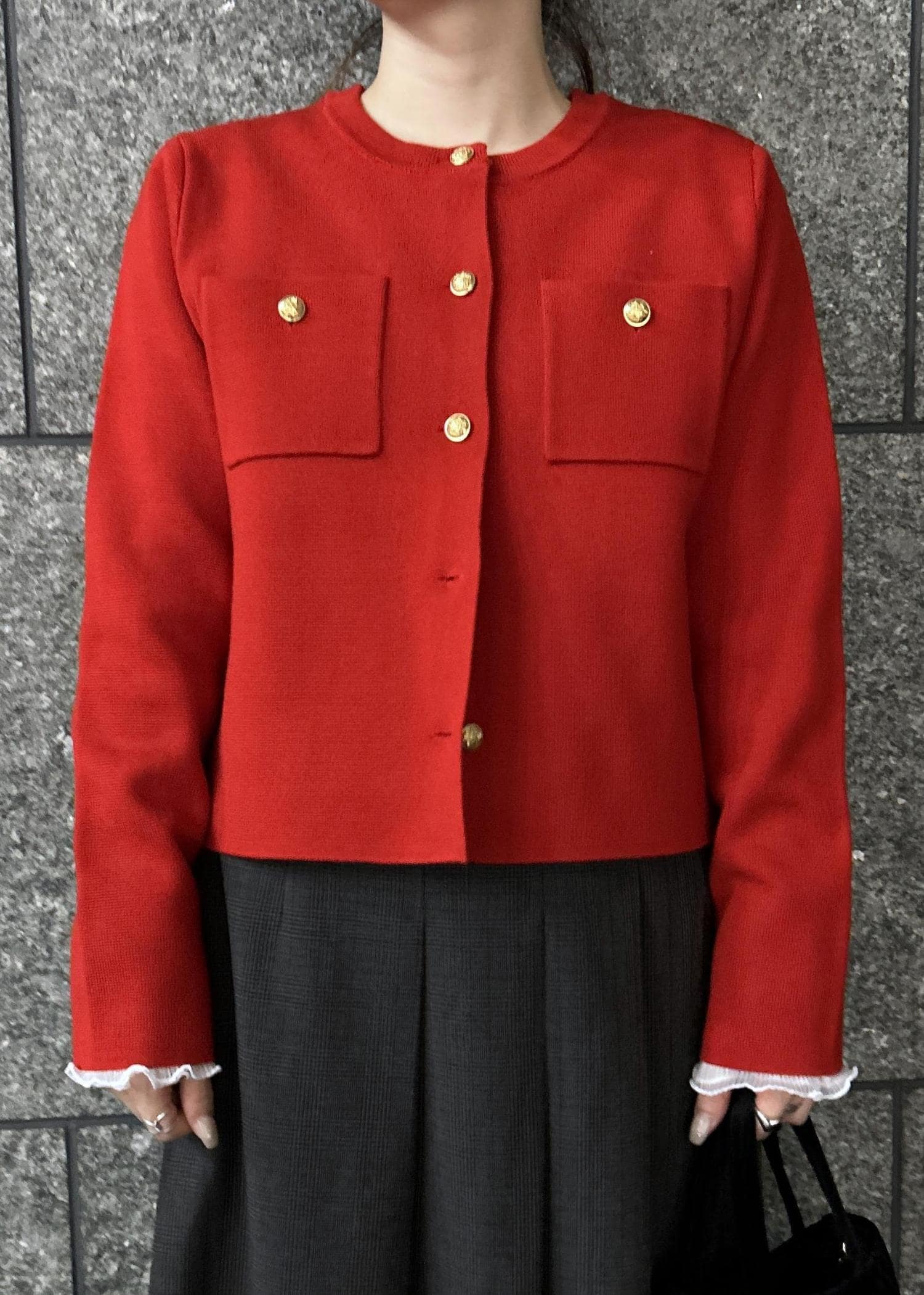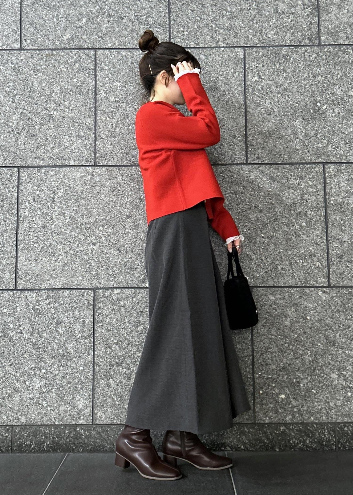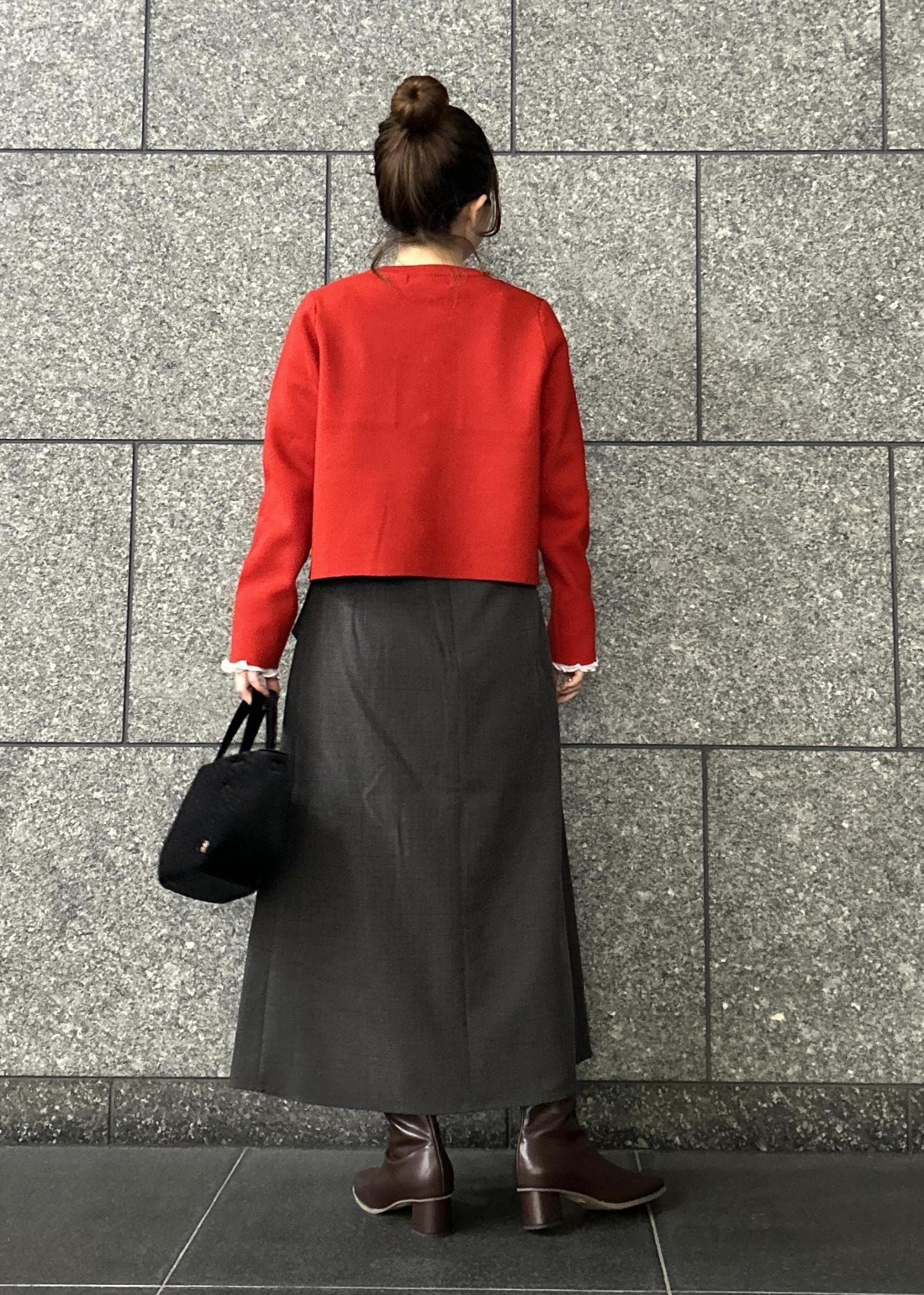 真っ赤なカーディガンで大人ガーリーにスタイリング☺︎