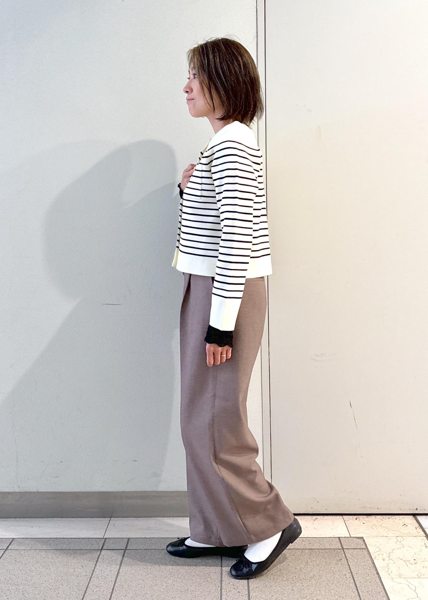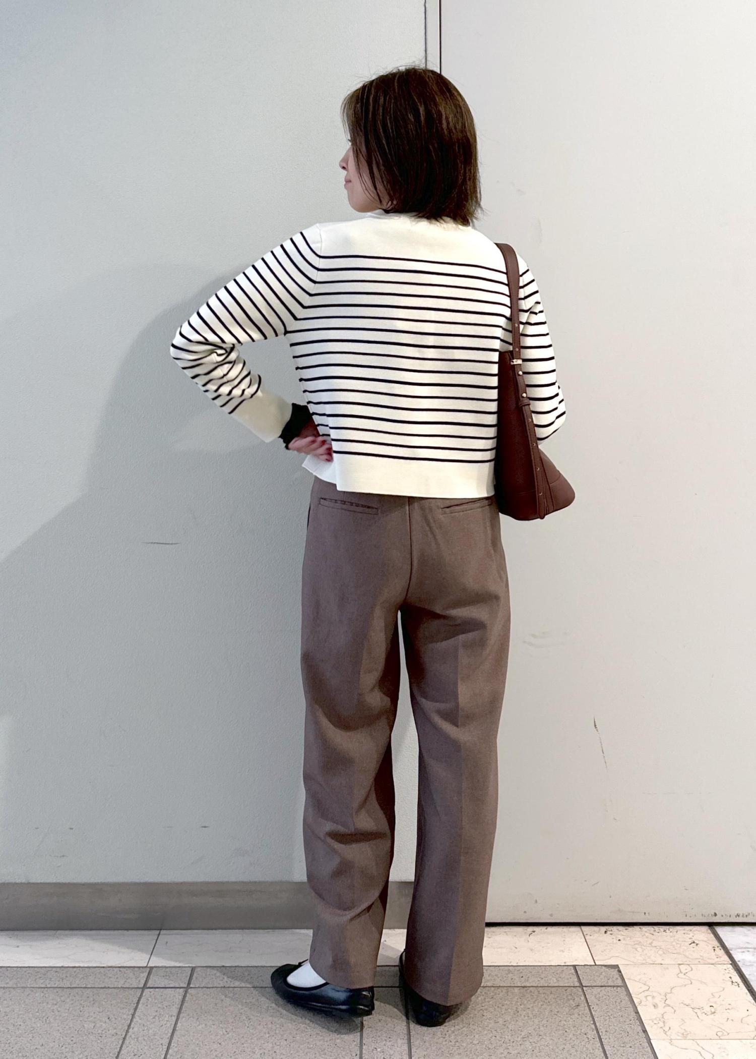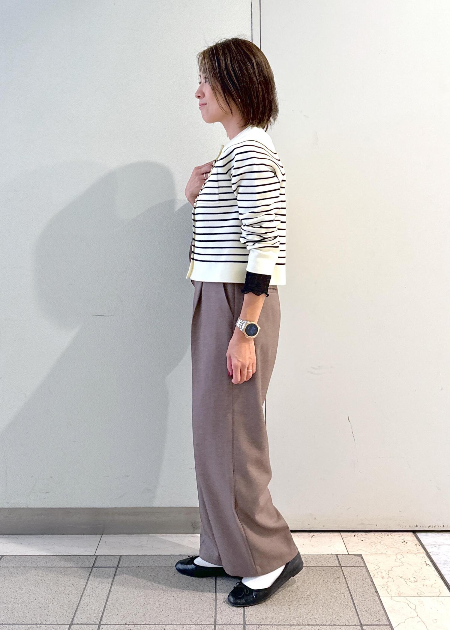 ROPÉ PICNICレディハンサムシリーズ ウールライクウエストタックセミワイドパンツ/セットアップ対応ベージュ系 / S¥5,489レビューゆとりのあるサイズ感でやや大きく感じました。ワイドシルエットで脚のラインを拾いにくいです。着丈は足首がしっかり隠れる長さですがフラットシューズでも合わせて頂けます。