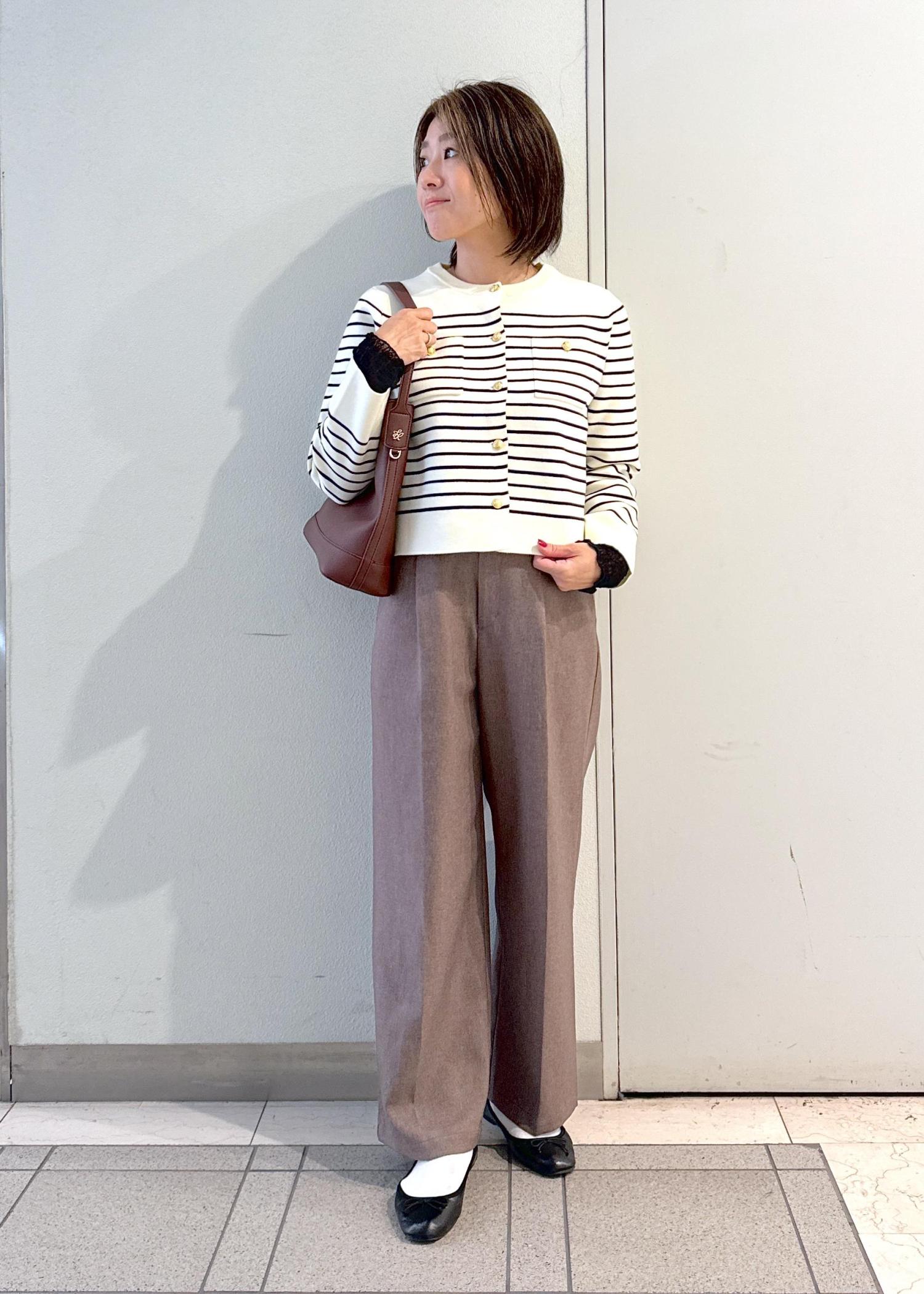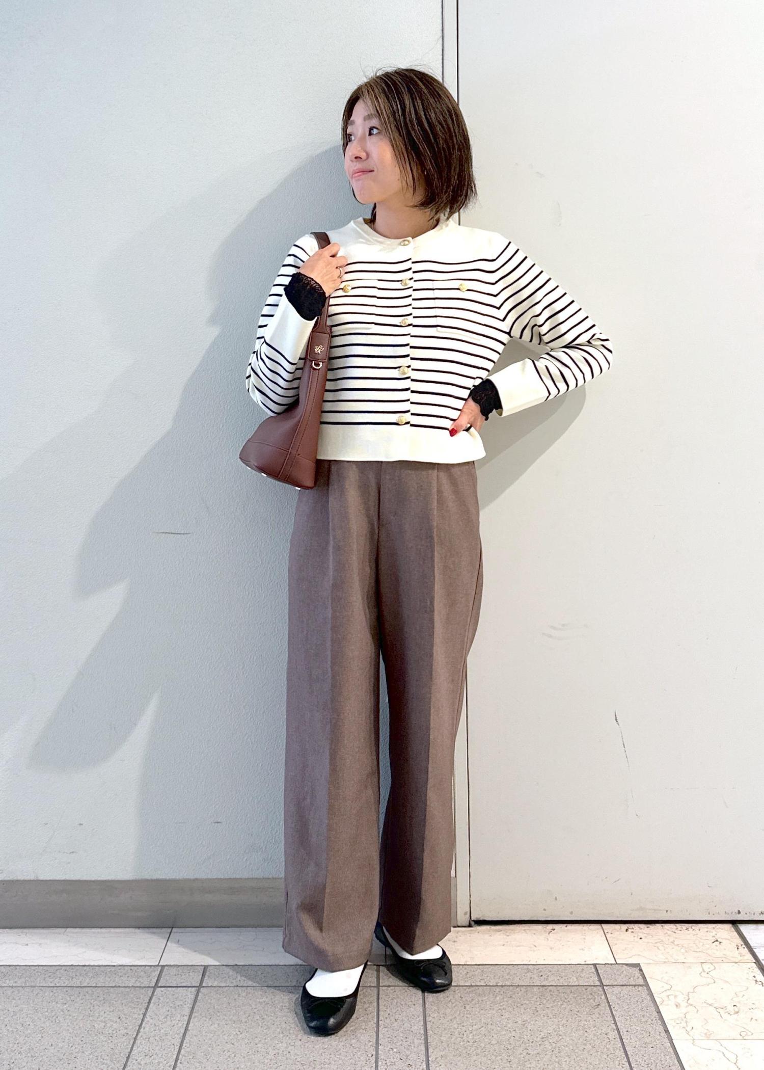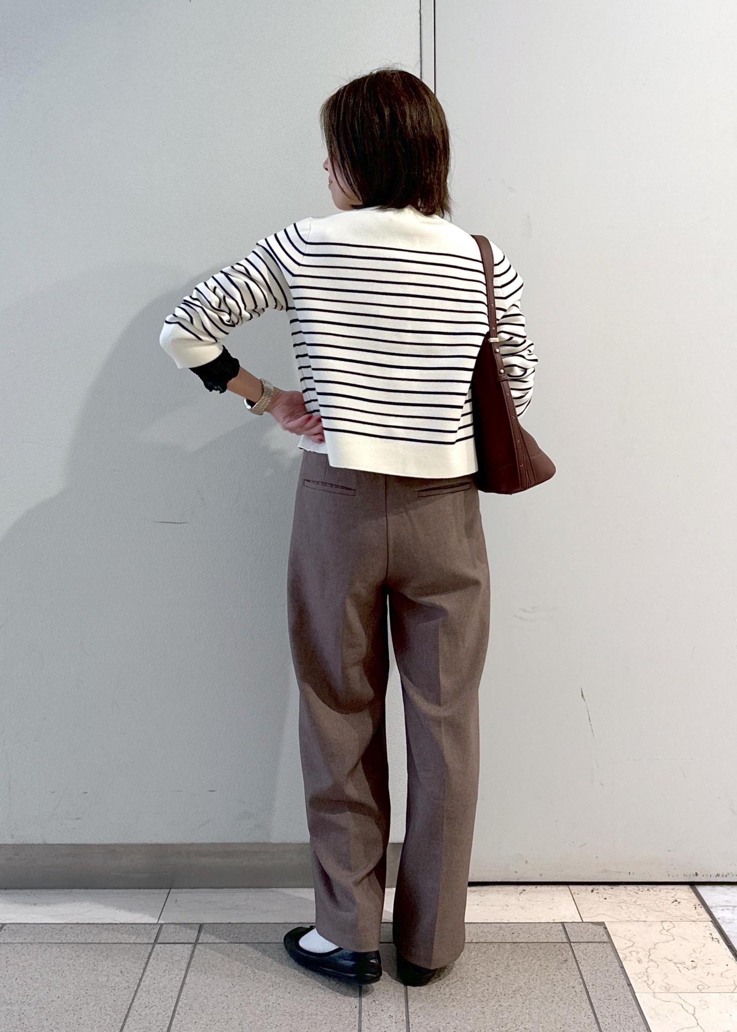 ROPÉ PICNICレディハンサムシリーズ ウールライクウエストタックセミワイドパンツ/セットアップ対応ベージュ系 / S¥5,489レビューゆとりのあるサイズ感でやや大きく感じました。ワイドシルエットで脚のラインを拾いにくいです。着丈は足首がしっかり隠れる長さですがフラットシューズでも合わせて頂けます。