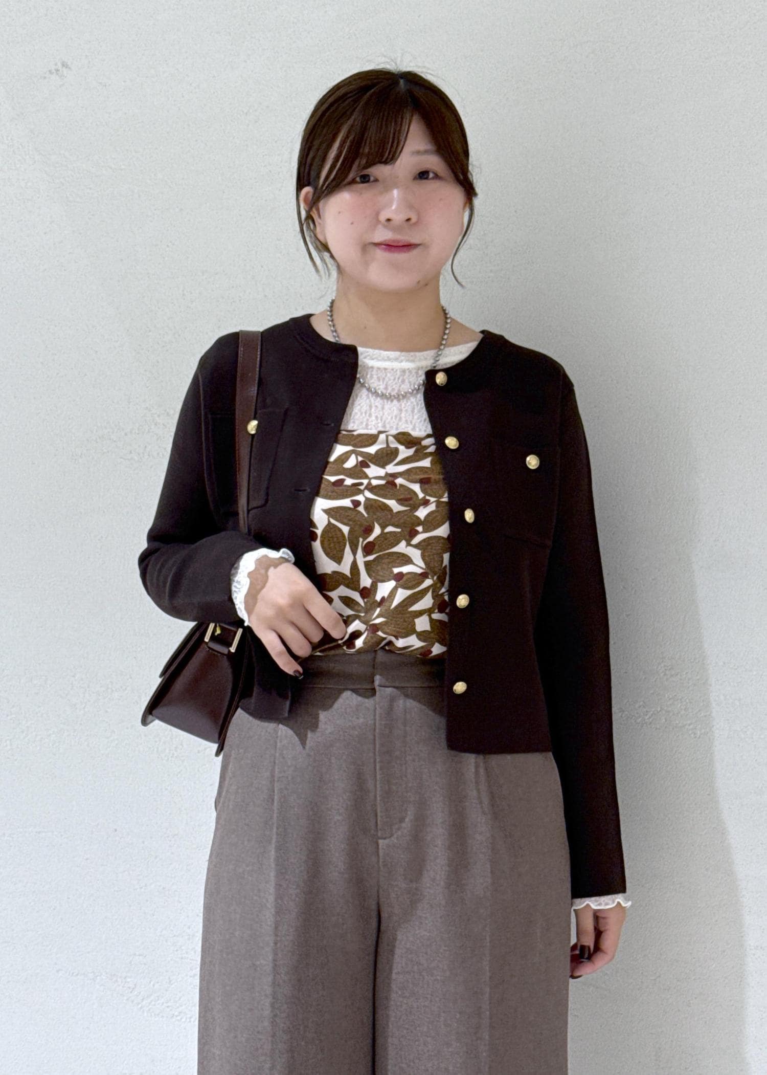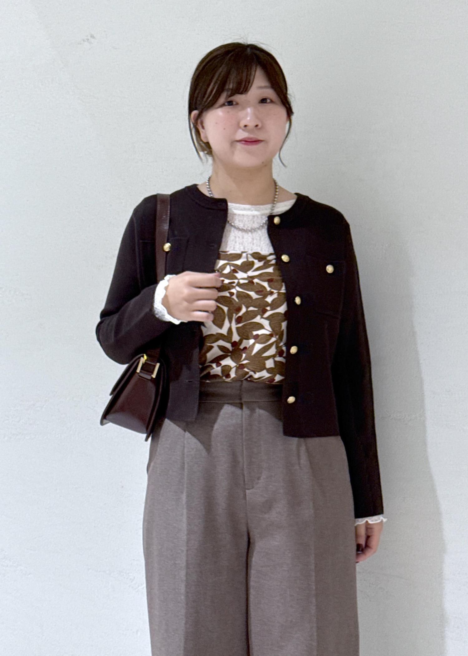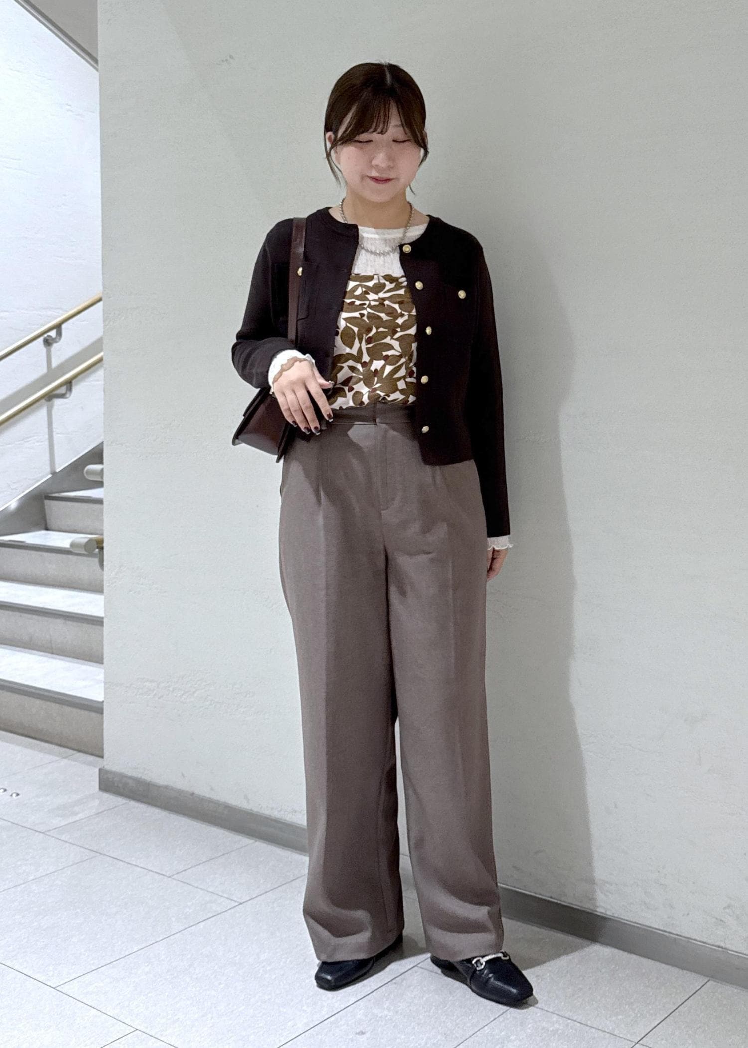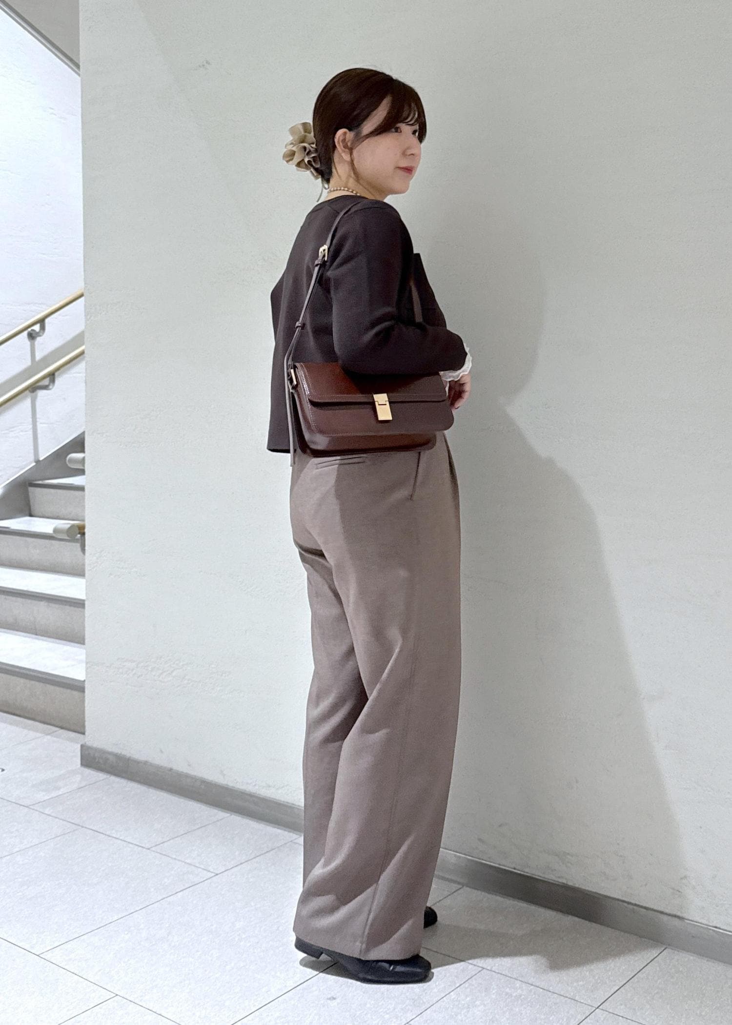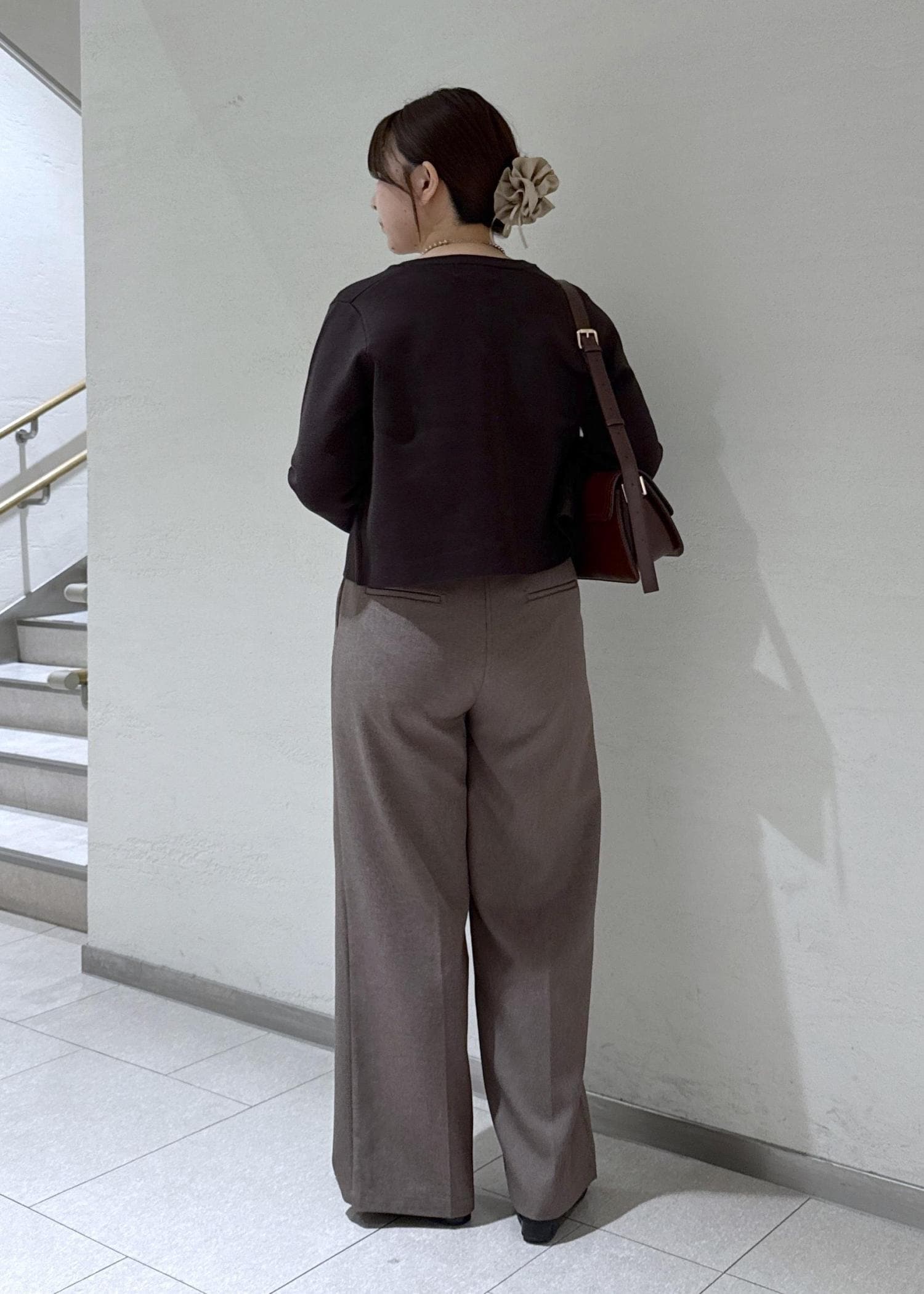 今まで丈がジャストより少し短く感じていたので、余計に下半身が太く見えてしまうのが悩みでしたが、ズルっと着れる丈感で脚が長く見せれます。