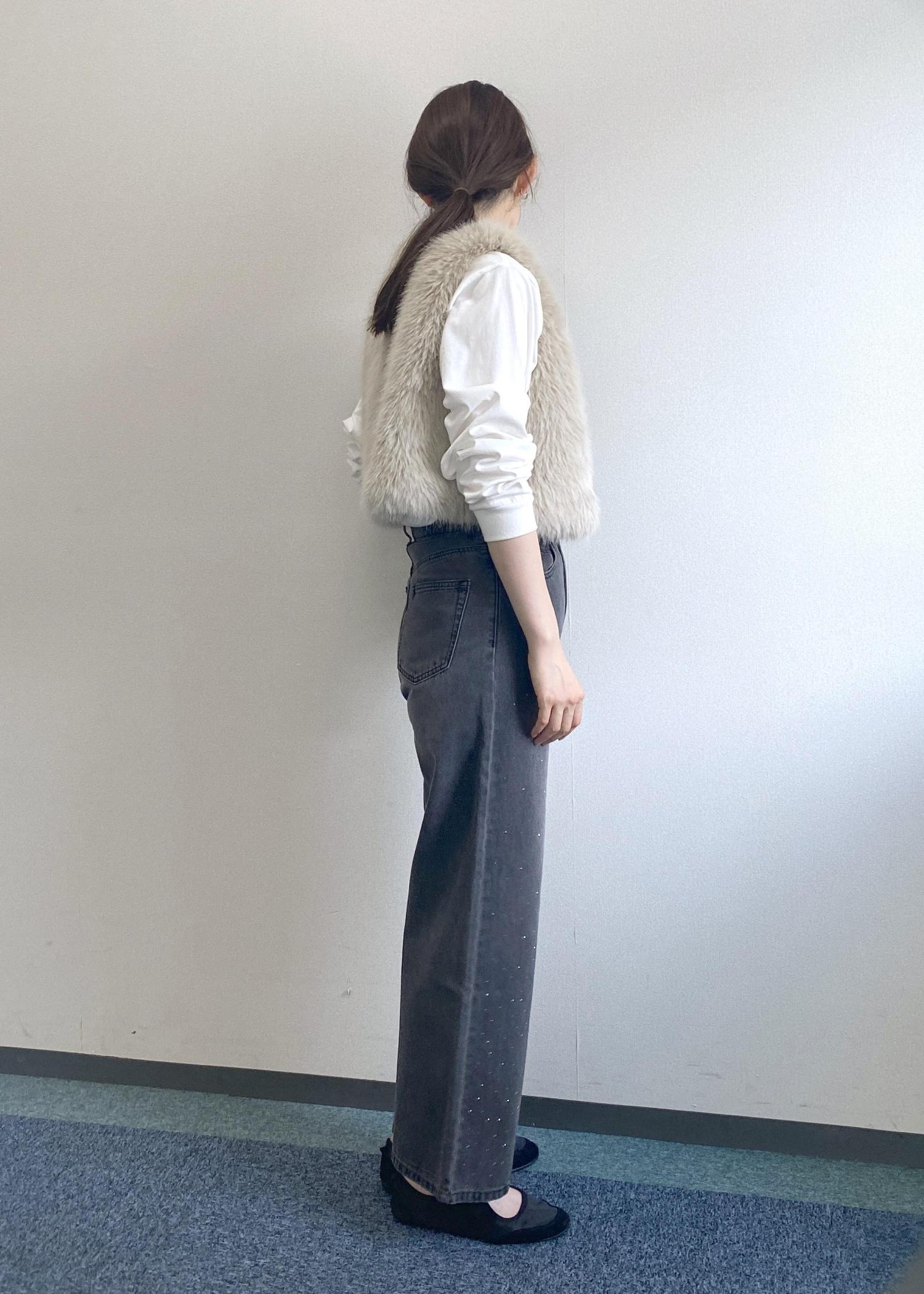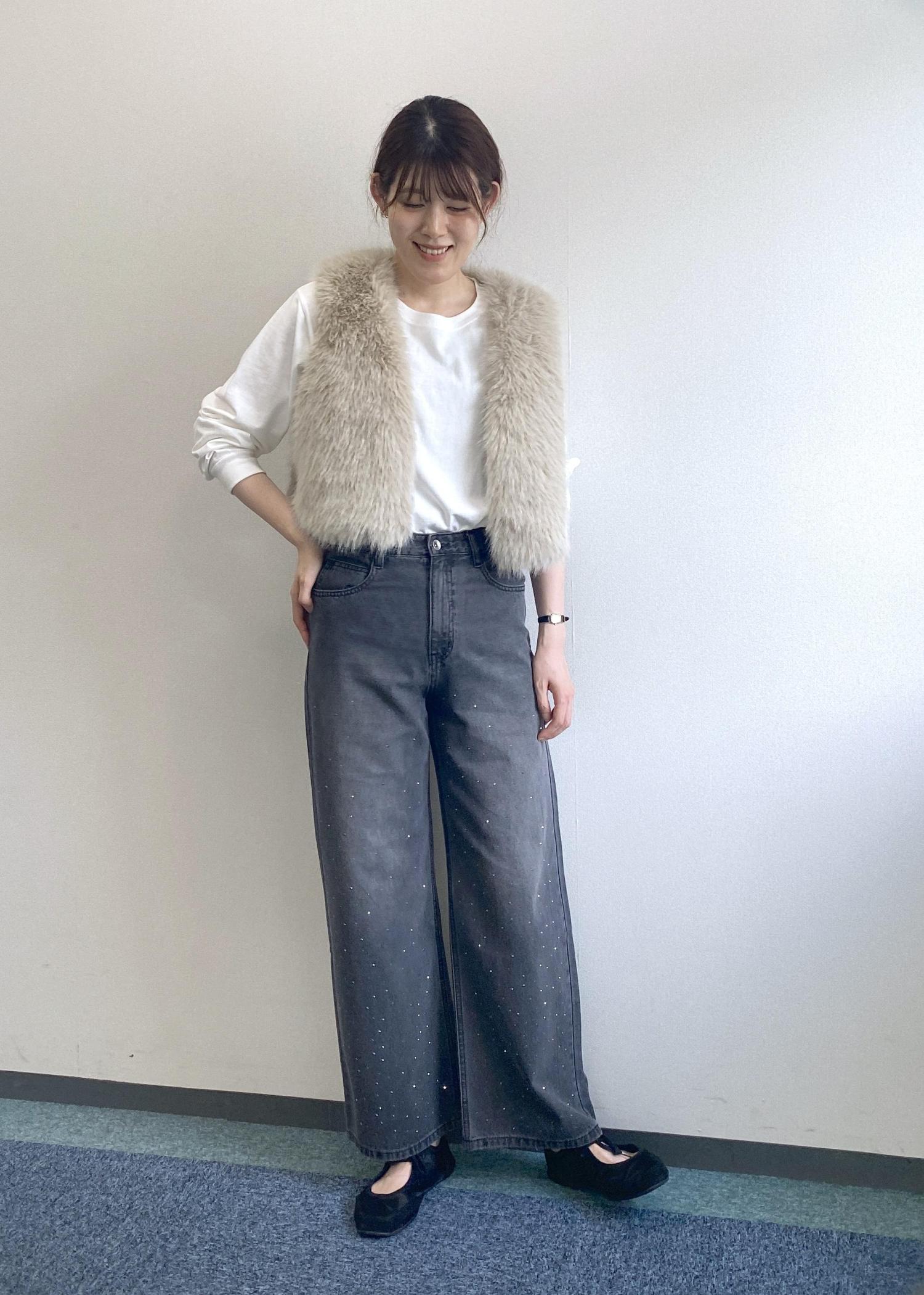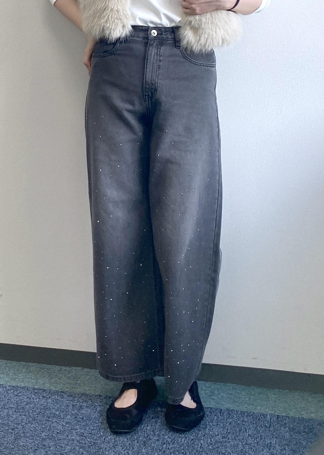 ROPÉ PICNIC【新色追加】キラキラビジューデニムブラック系 / 40¥7,491レビューハイウエストでワイドシルエットのスタイルアップできるデニム。ストレッチは効いていますが、他のデニムに比べると少し固めになります。