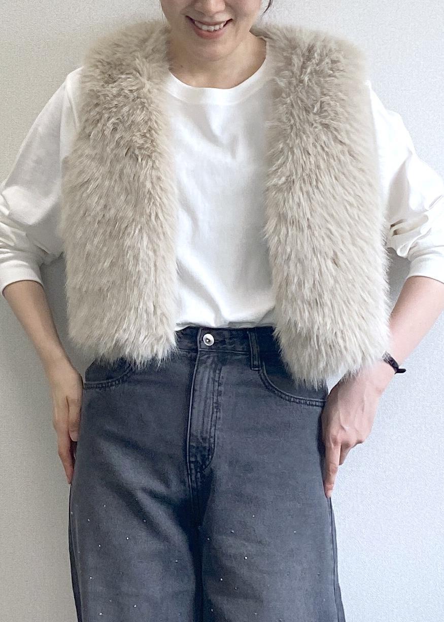 ROPÉ PICNICファーベストベージュ / F¥6,996レビューファーのボリュームは楽しみつつも、コンパクトですっきり着こなせるデザイン。軽くて楽な着心地なので、誰でも気軽に秋を取り入れていただけますよ!