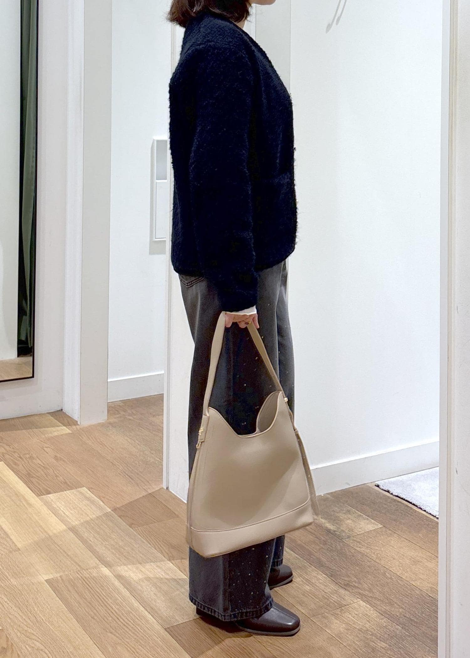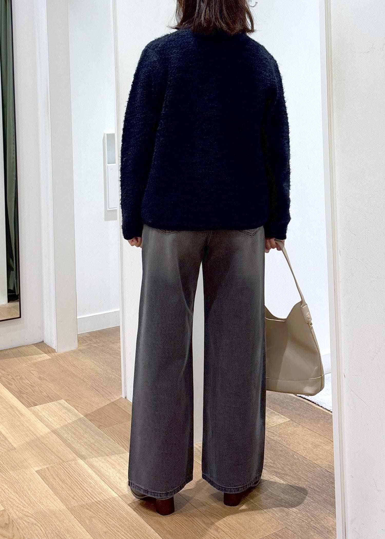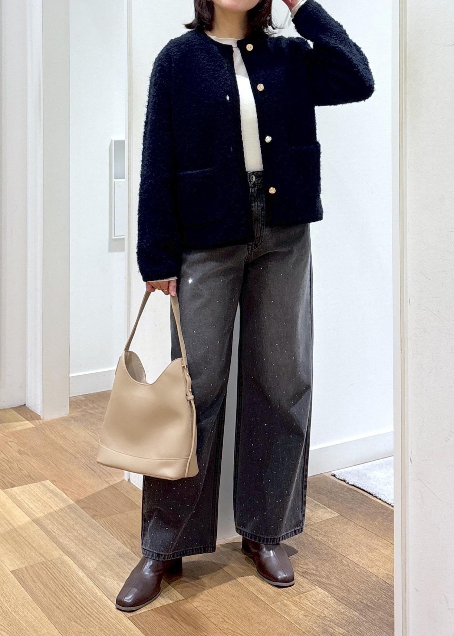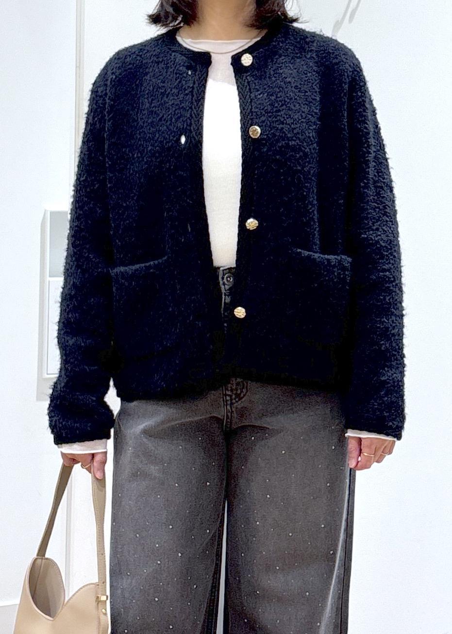 ループ編みの素材が綺麗めにもカジュアルにもコーディネートしやすいです。 -