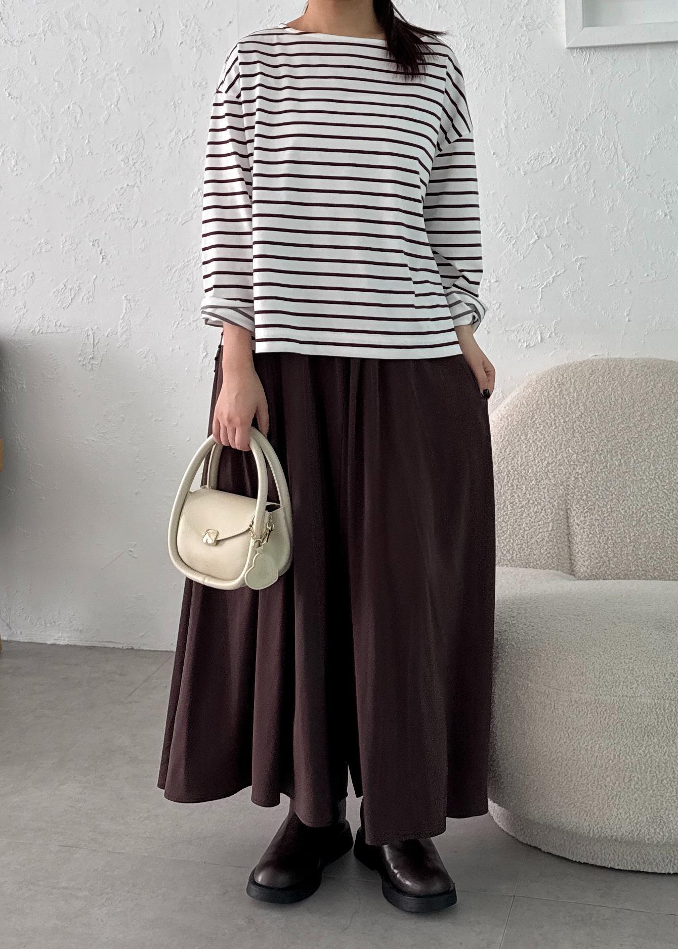 スカート見えするパンツなので、楽ちんな履き心地かつ綺麗めな印象を与えてくれます。