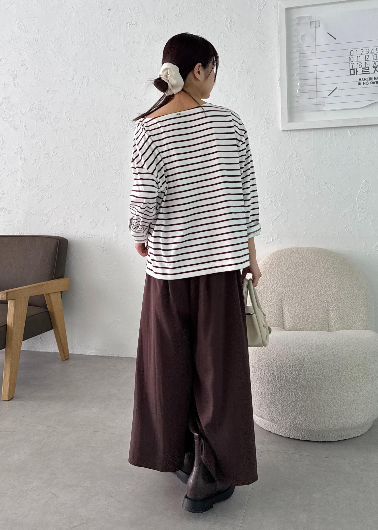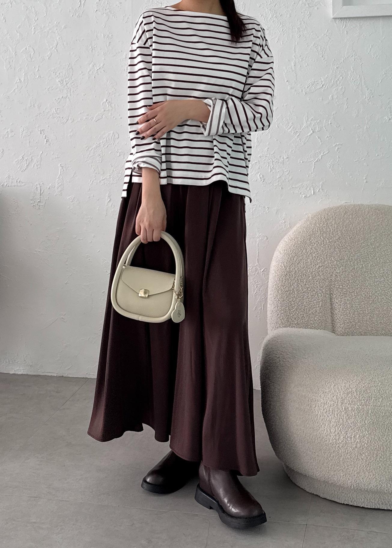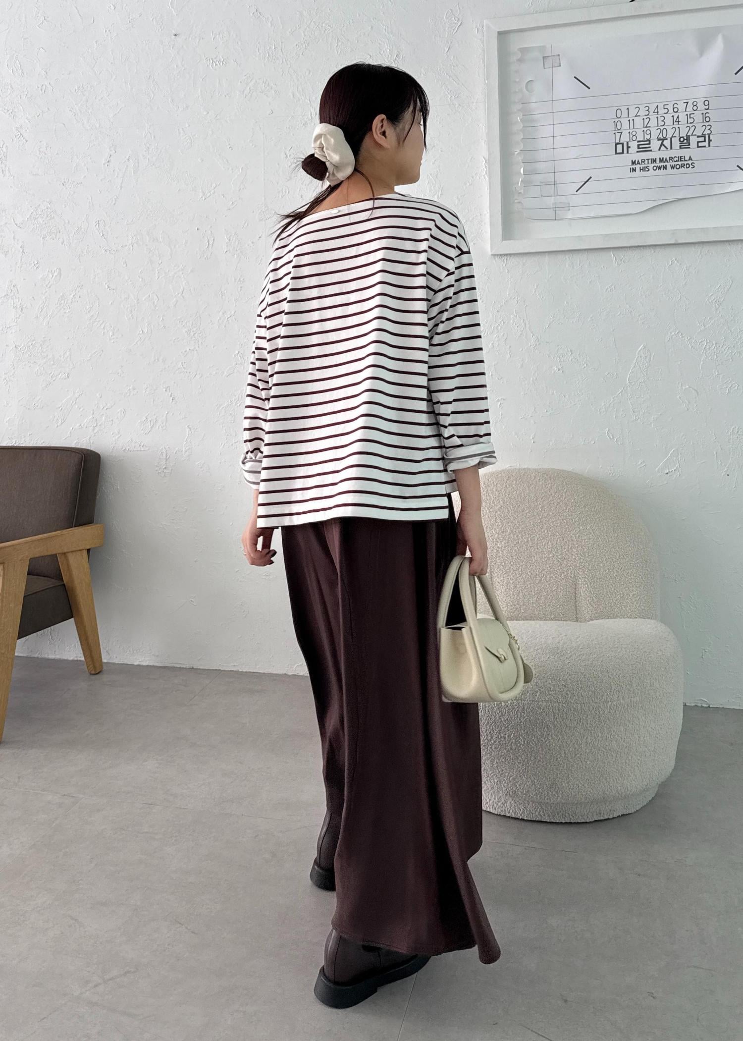ブラウンボーダーのワントーンコーデ