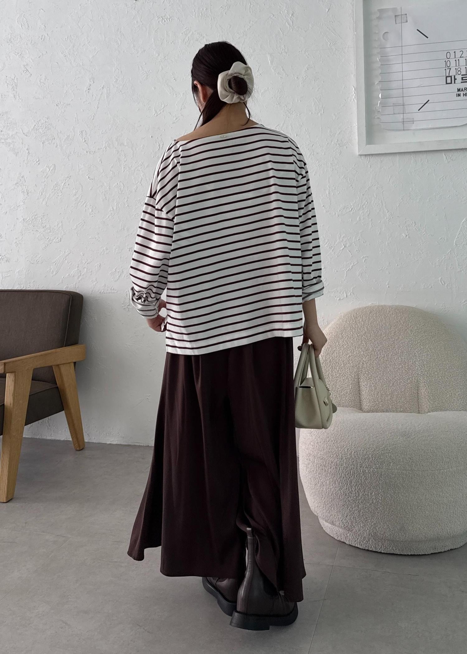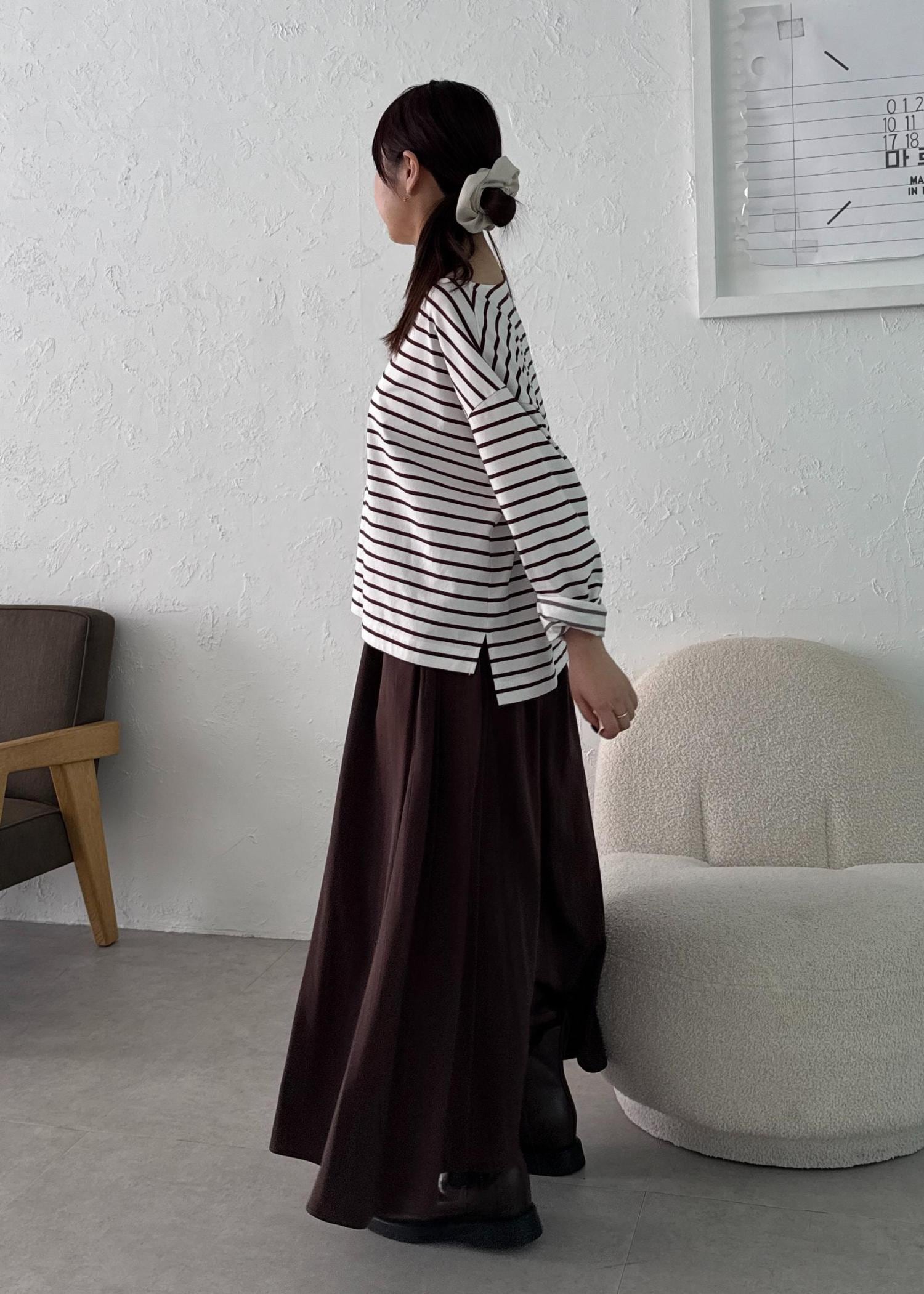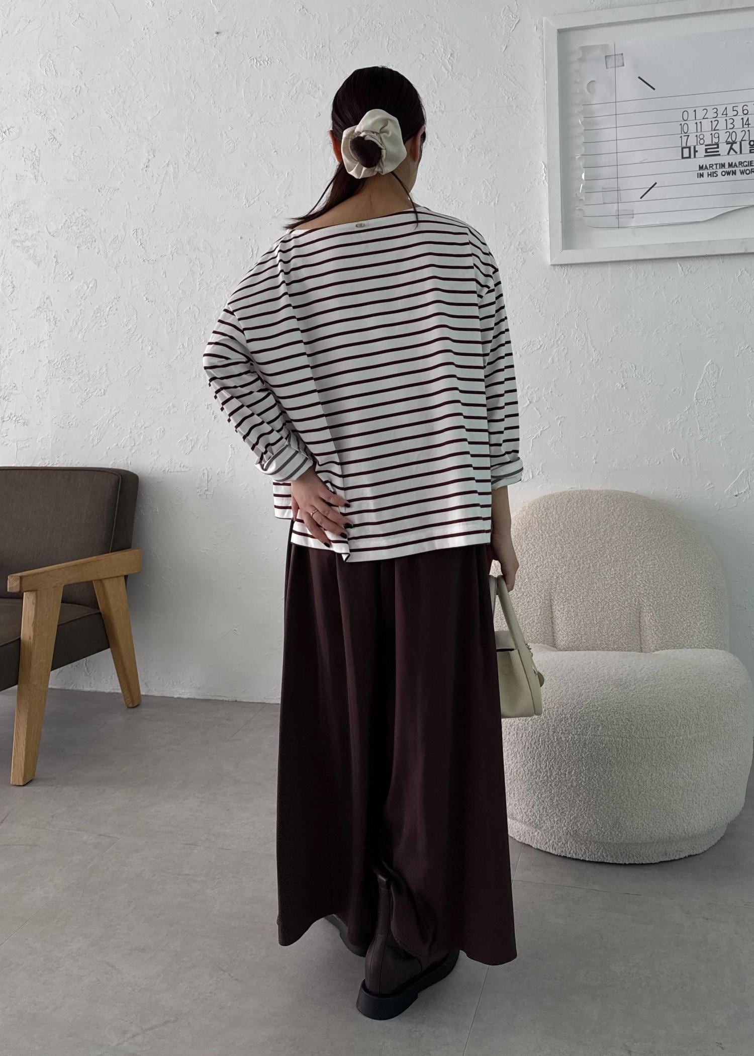 ブラウンボーダーのワントーンコーデ