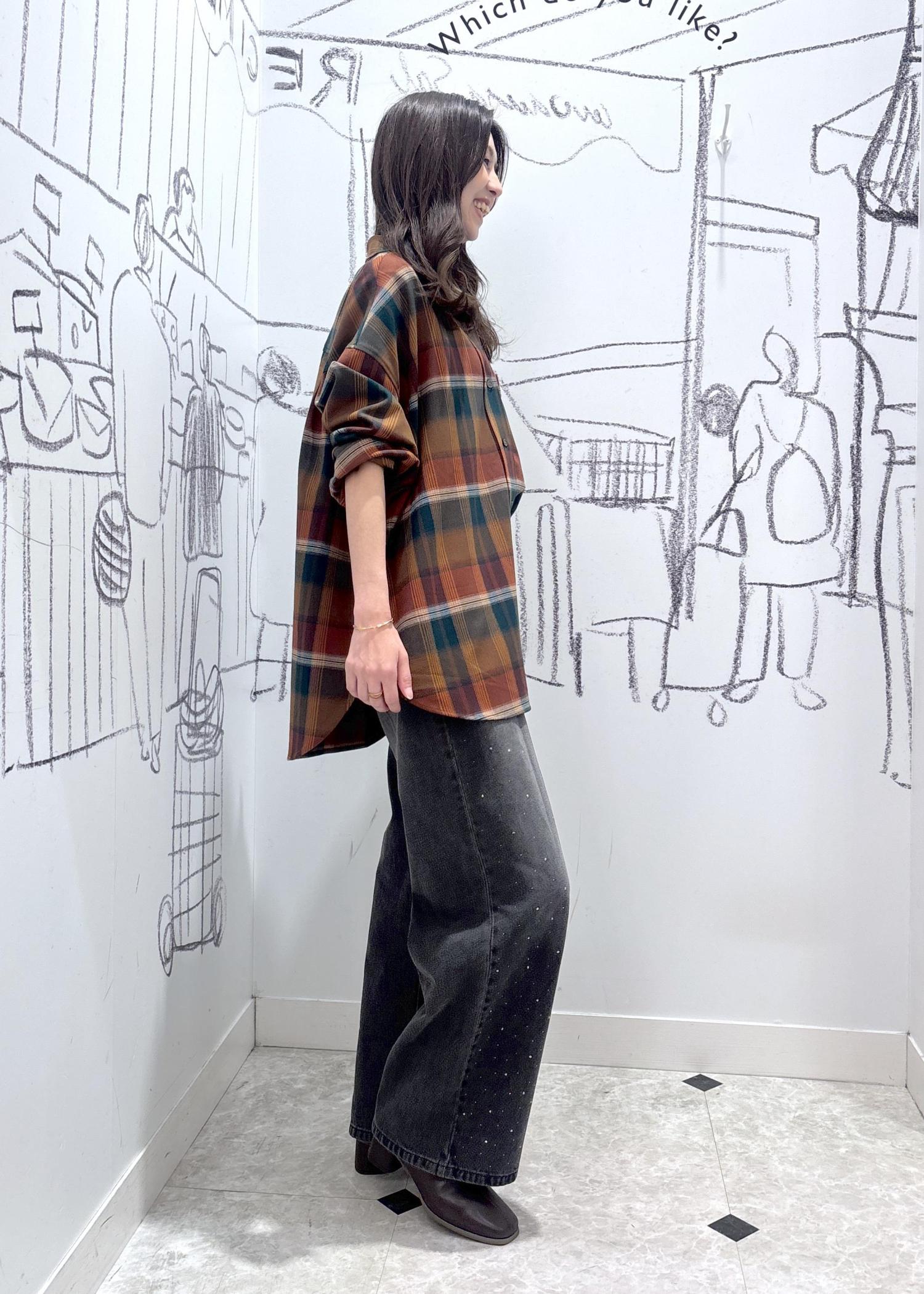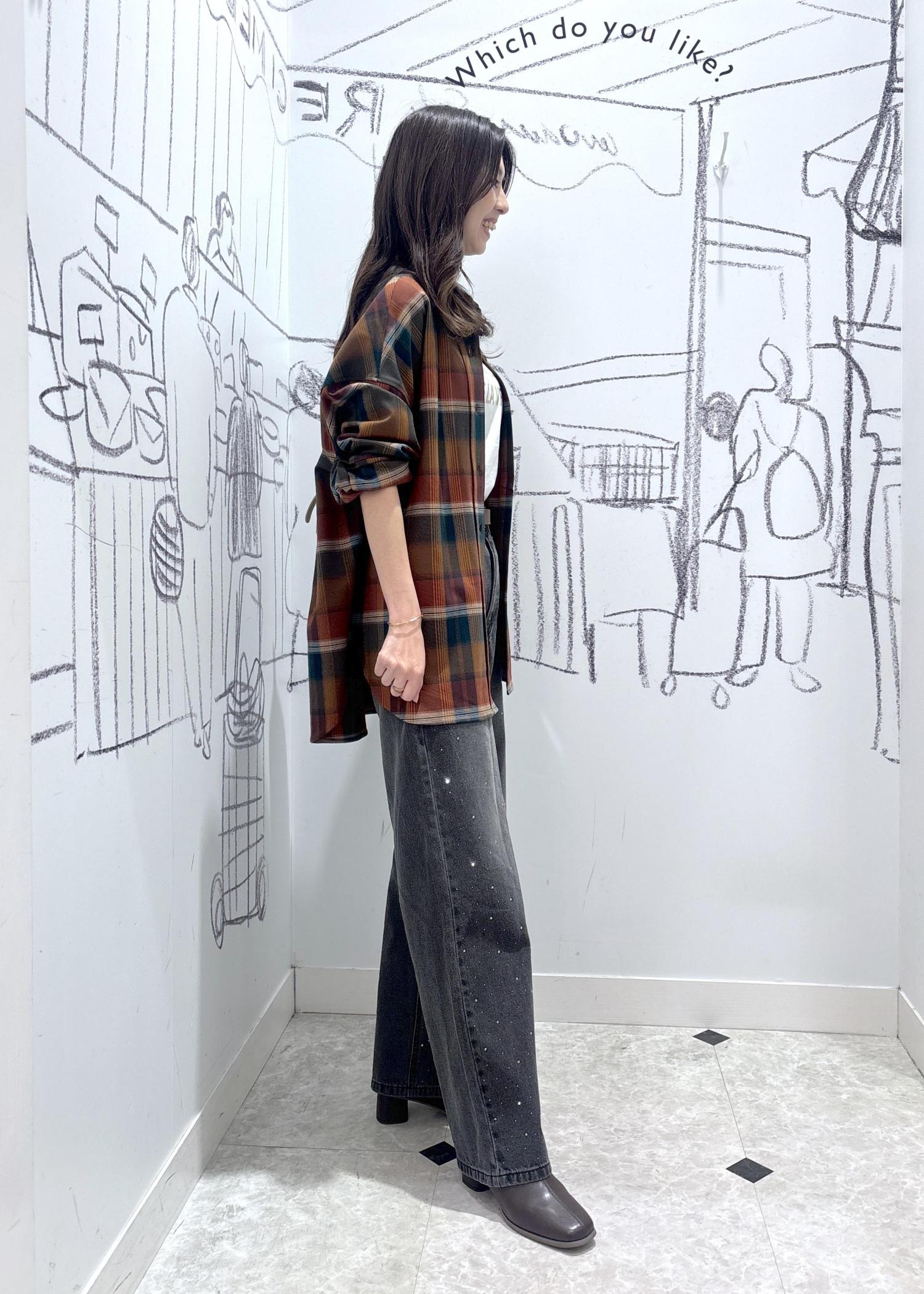 チェックシャツで一気に秋らしいコーディネートになるのでおすすめです!