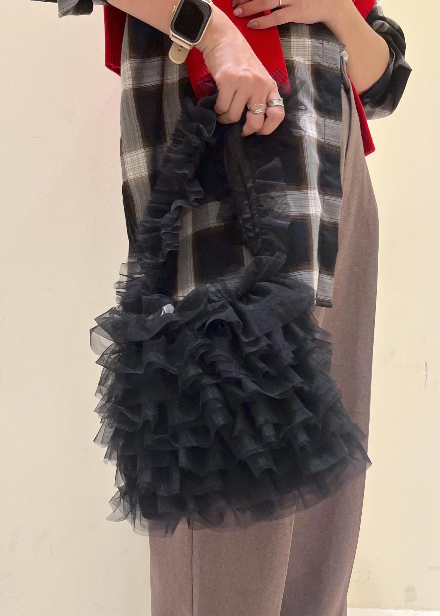 アウトレットROPÉ PICNIC PASSAGEシアーフリルワンハンドルバッグブラック / F¥1,980レビューシンプルコーデのアクセントにぴったりなシフォンバッグ◎