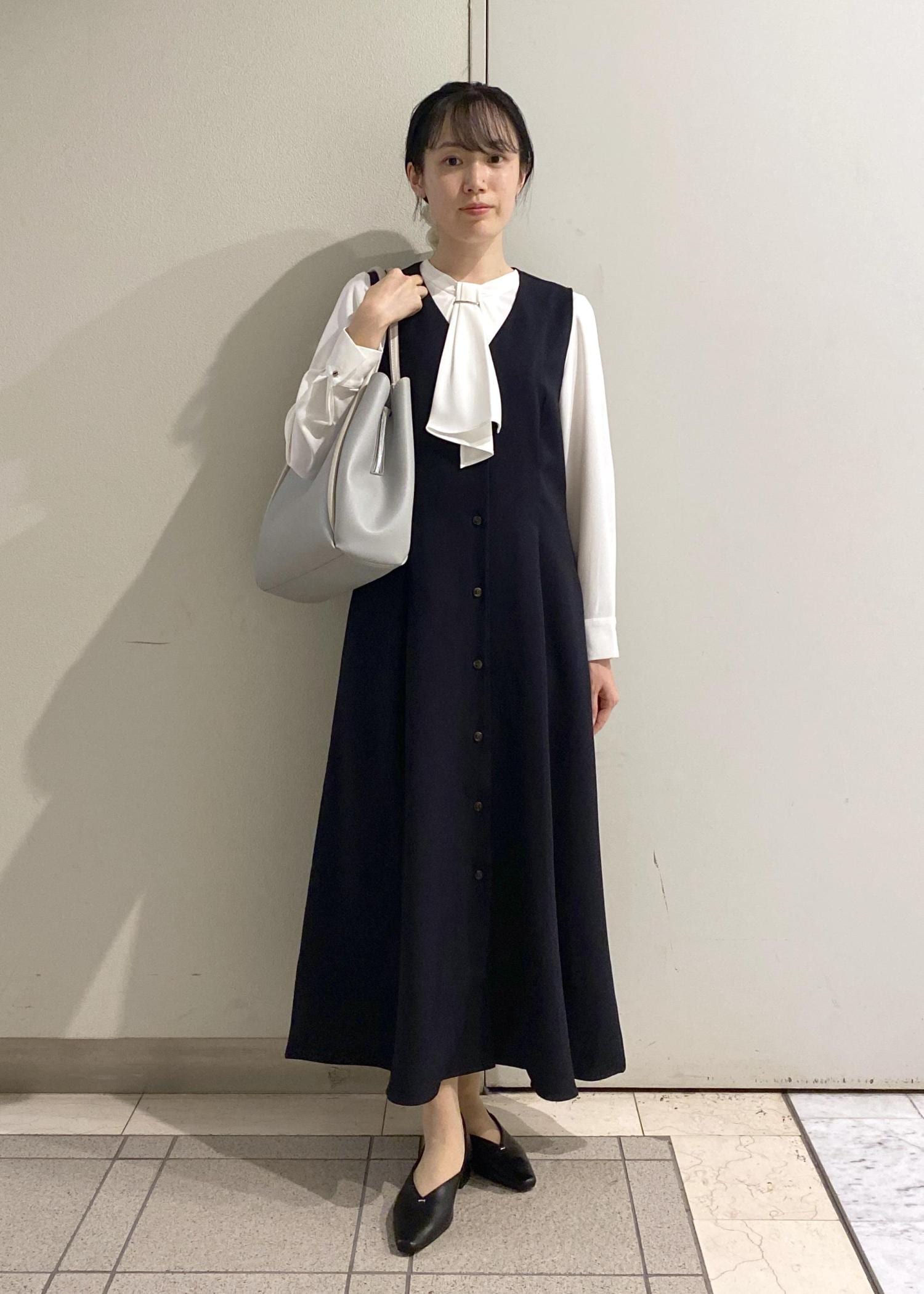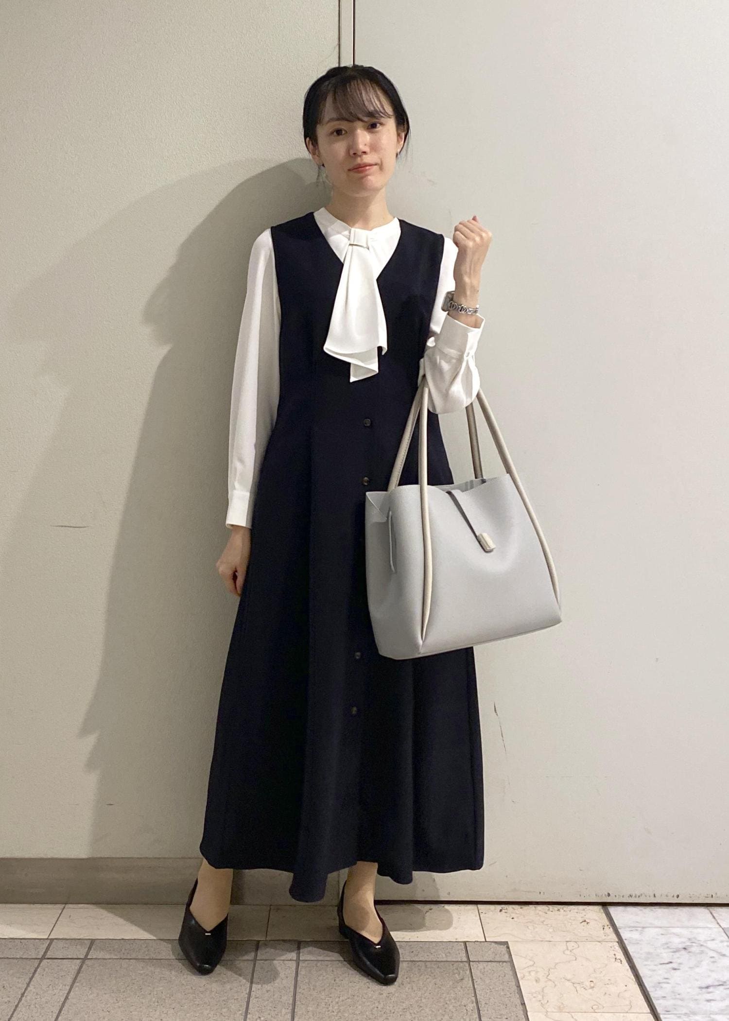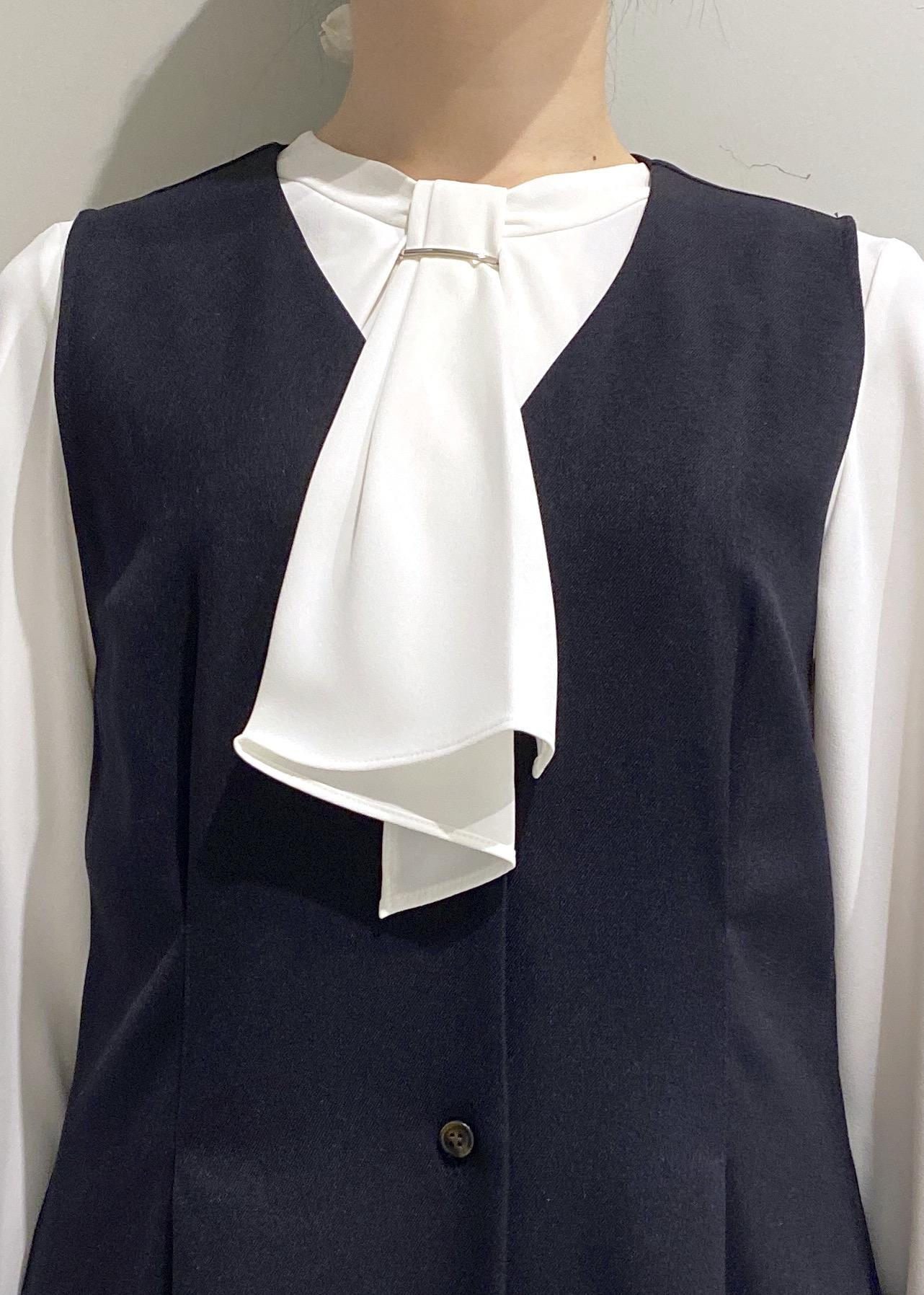 ブラウスはタイ付きのものをチョイスして華やかさをプラス+