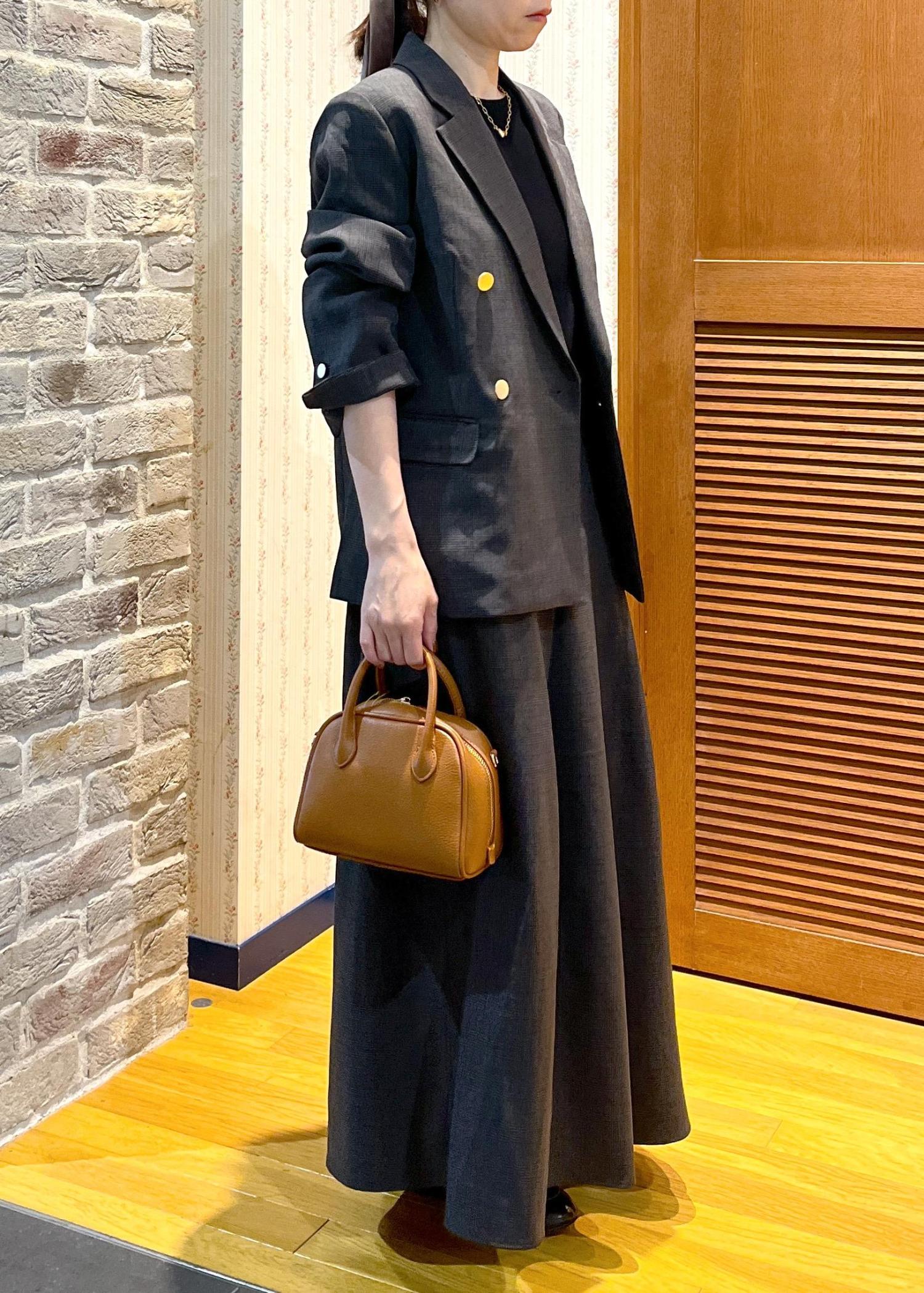 インナーに厚手の物を合わせてもゆとりあるサイズ感です。 -