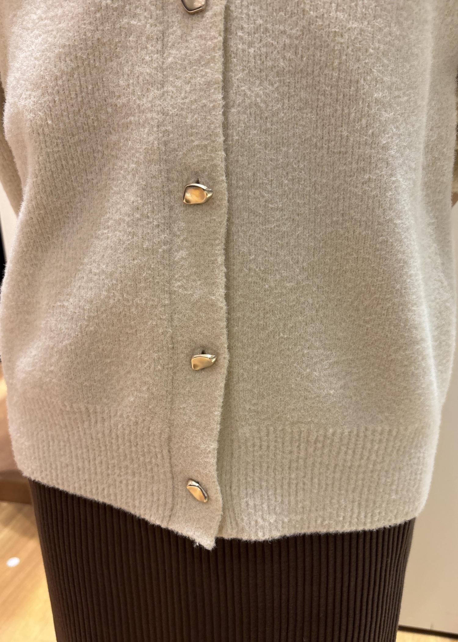 【新色追加】スフレニットシリーズ 変形メタルボタンミドル丈カーディガン/イージーケア・リンクコーデ