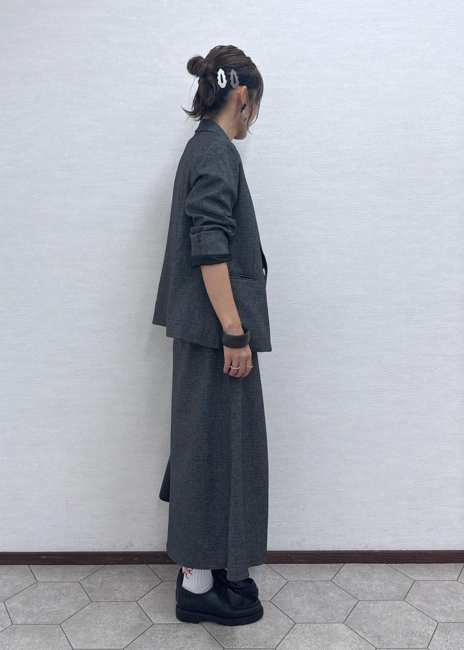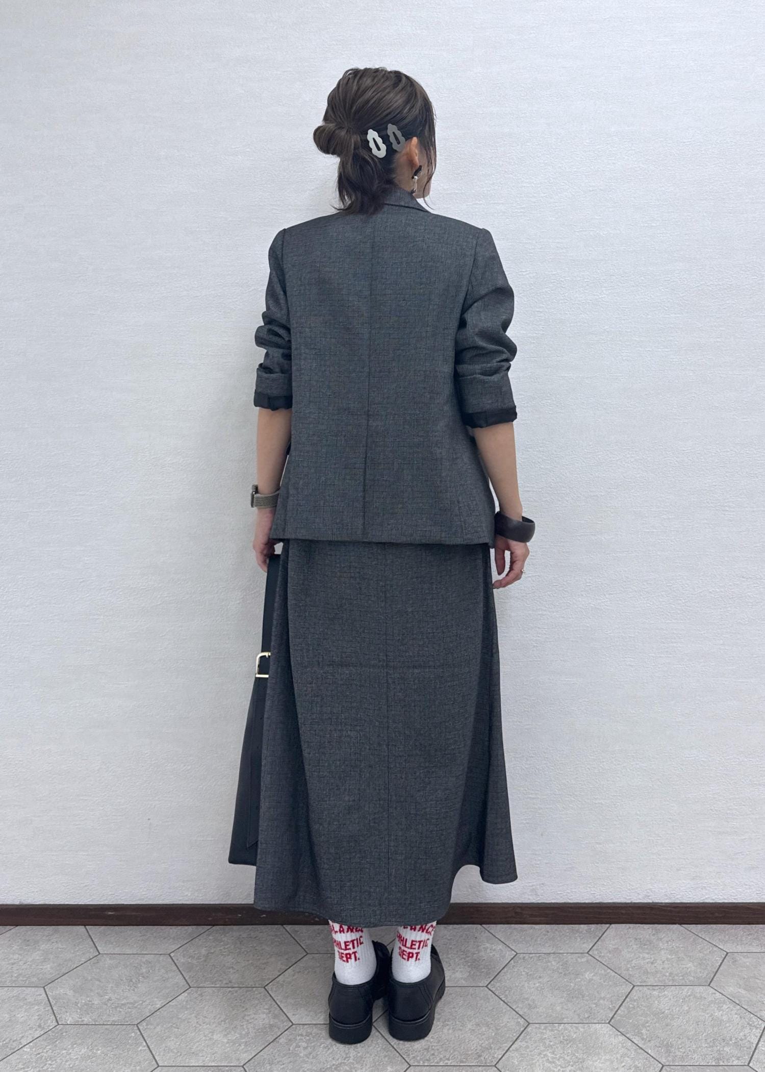 セットアップも可能なウールライクスカート。丈は長めで上品なシルエット。大人の女性を演出してくれます。