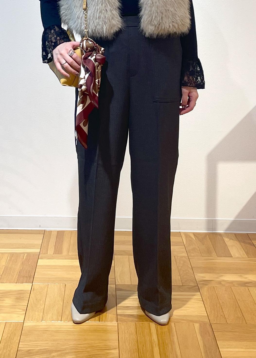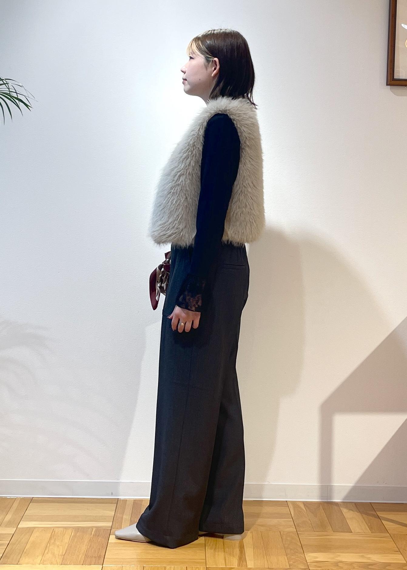 トップスにボリューム感が出るので、ウエスト付近はスッキリめにするとメリハリがつきおすすめです◎ -