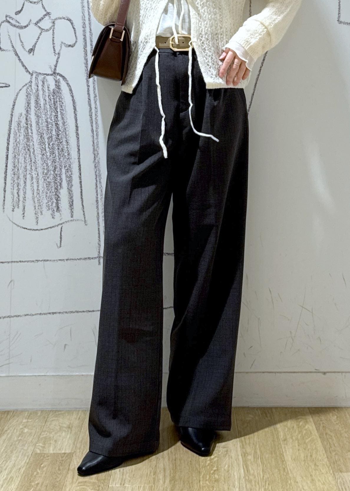 秋冬ならではのしっかりした生地感でオンオフ問わず万能に使えます。フラットシューズだと床に付いてしまいますが3〜4㎝ヒール合わせで履くとちょうど良かったです。足元にパンツが溜まるかっこいいスタイルならソールの厚いスニーカー合わせがお勧め◎