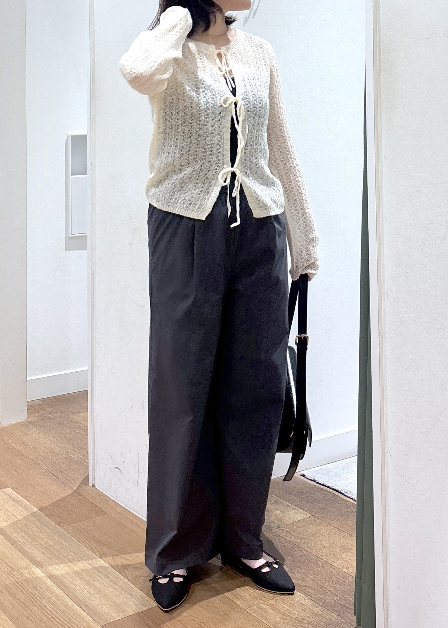 ROPÉ PICNICキレイ目イージーワイドパンツ/UVカットチャコール / L¥3,993レビューさらっと軽く履いていただける質感のパンツです。ゴム+紐でウエストを調節できます。162㎝Lサイズ着用でフラットシューズで床につかないくらいの長さでした。