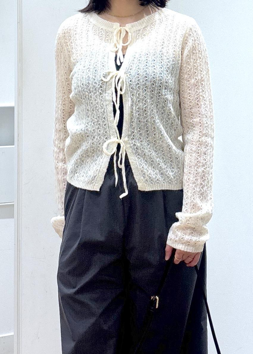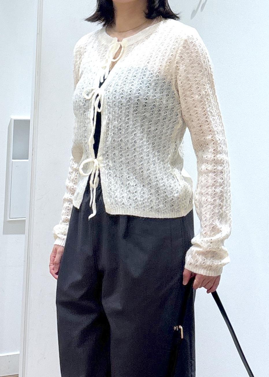 ROPÉ PICNICレース編みメッシュニットカーディガンキナリ / F¥3,993レビューざっくりとした編み地とフロントりぼんがポイントのカーディガンです。アームは細身で手のひらが完全に隠れるくらいの長さがあり、くしゅっと感がかわいいです。
