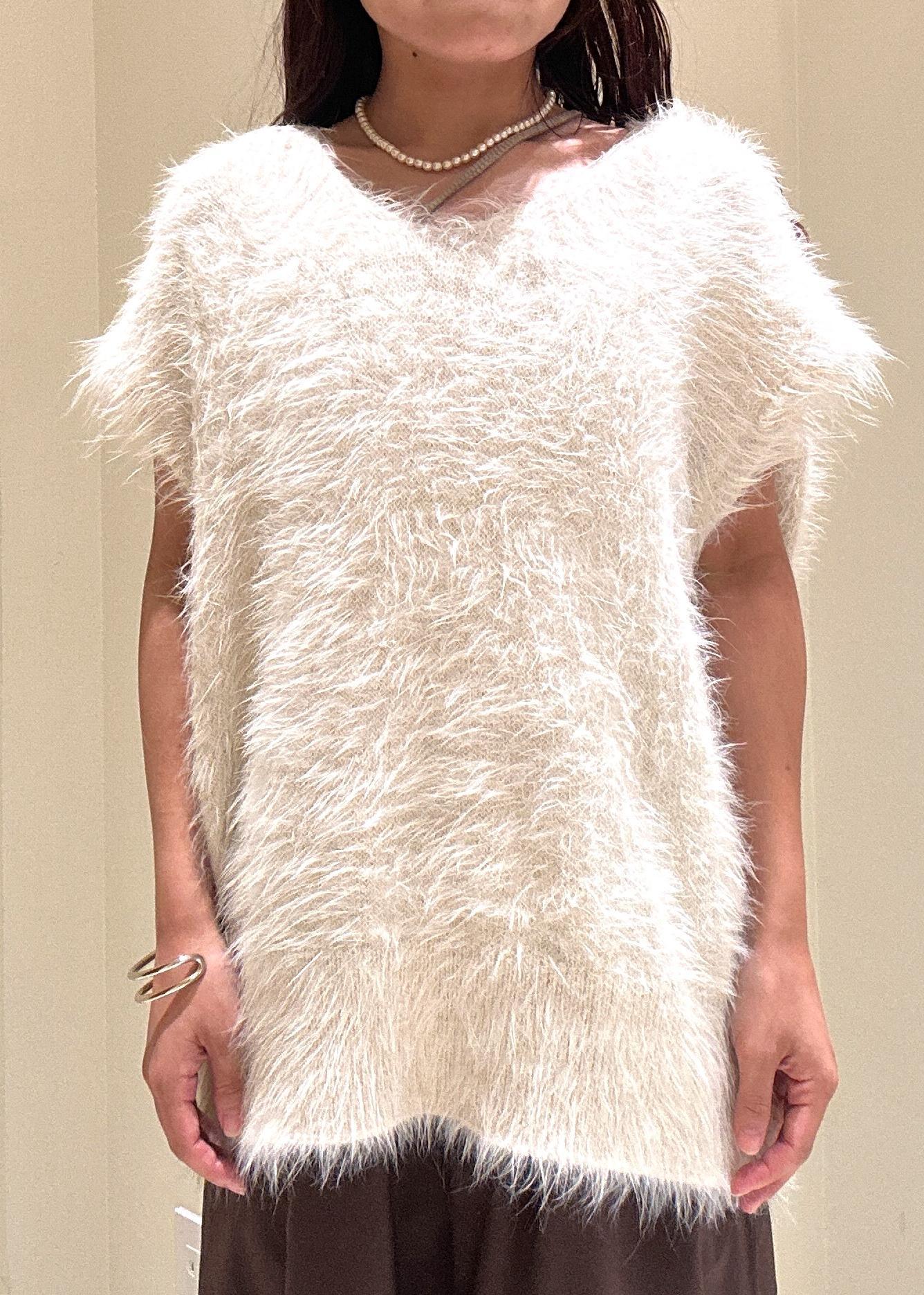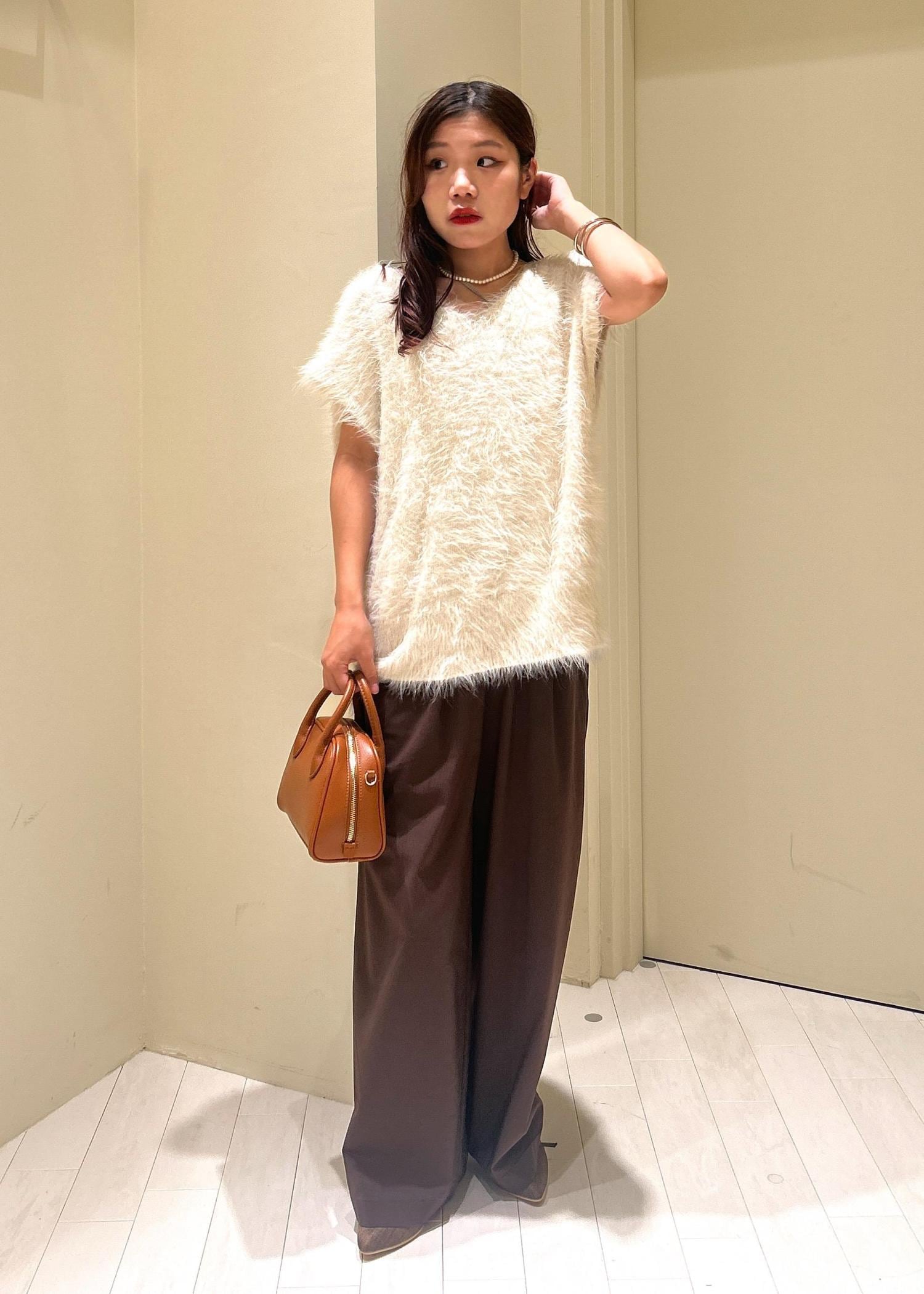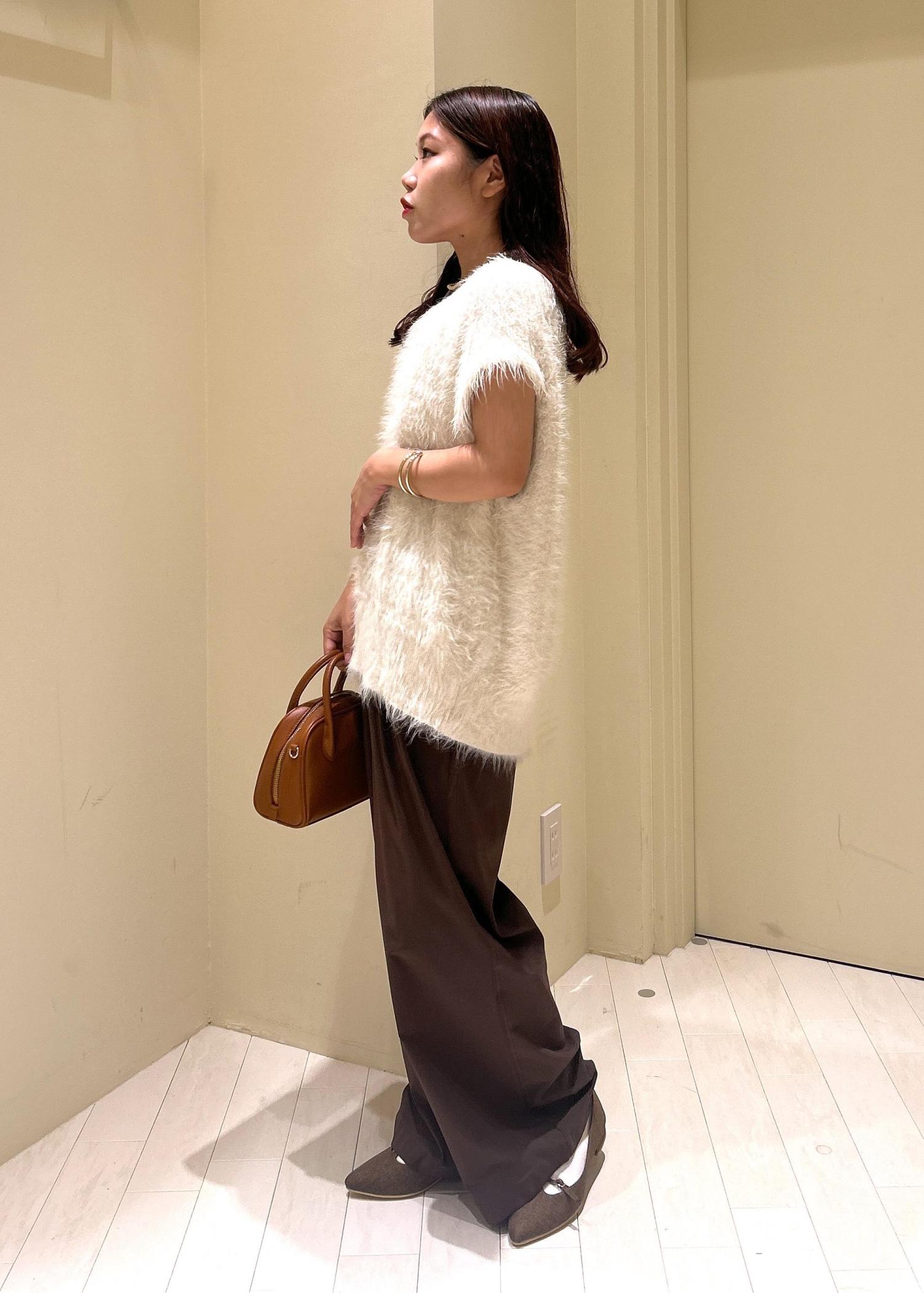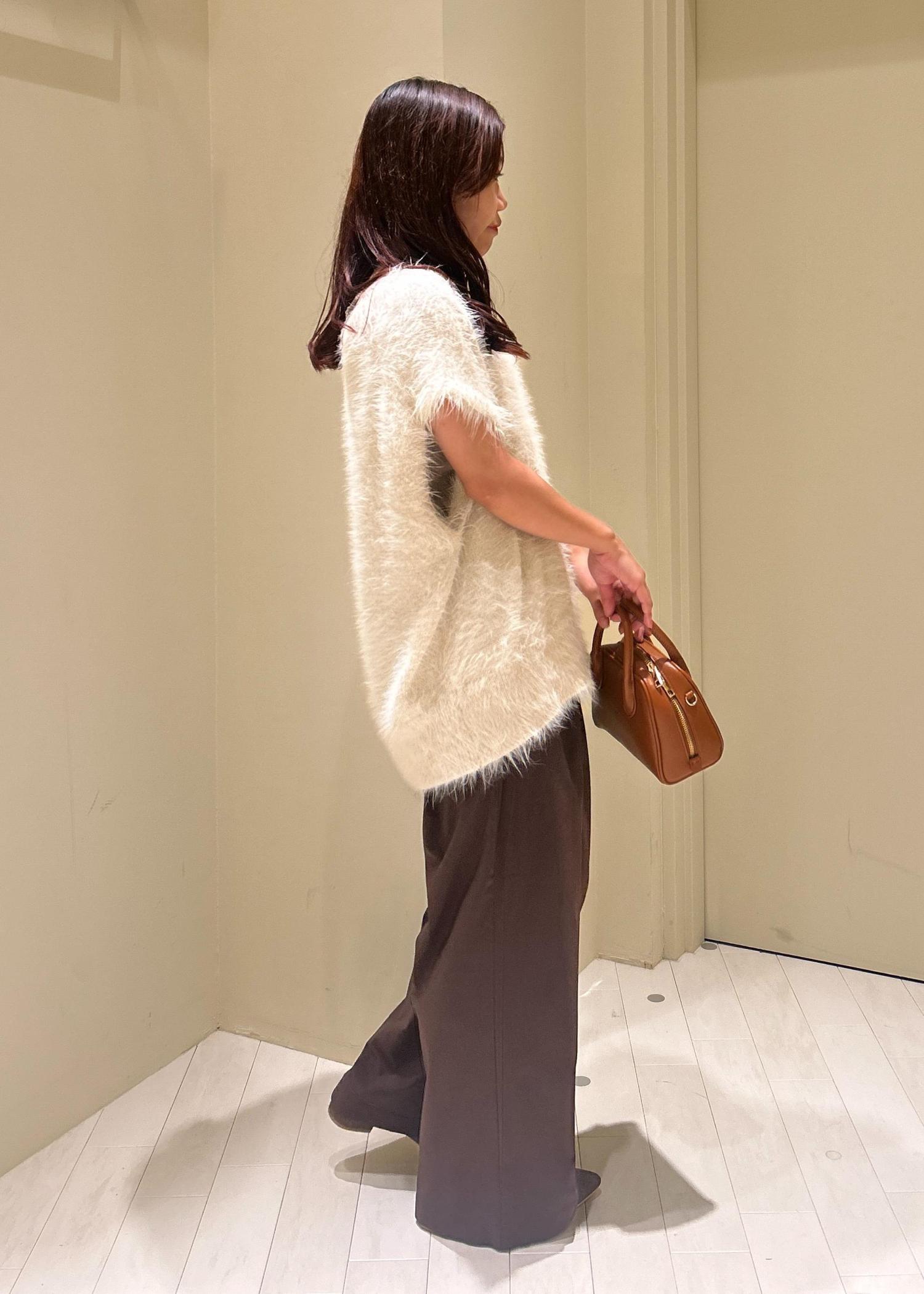 全体的にゆったりしたサイズ感ですが、Vネックなので重たい印象にならずすっきりして見えます。 -