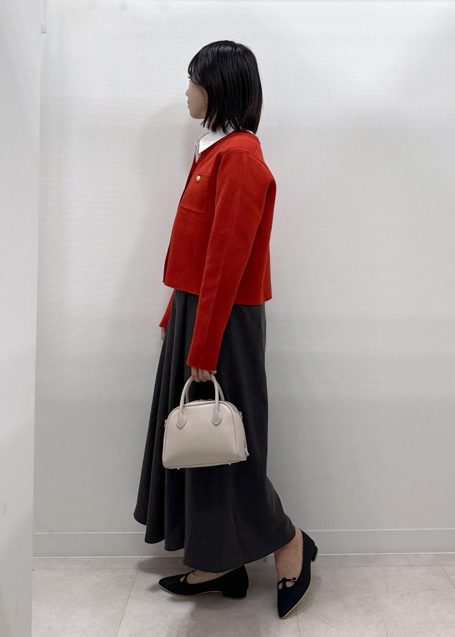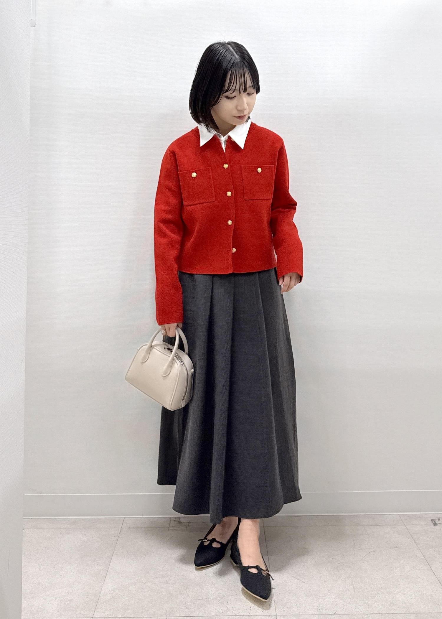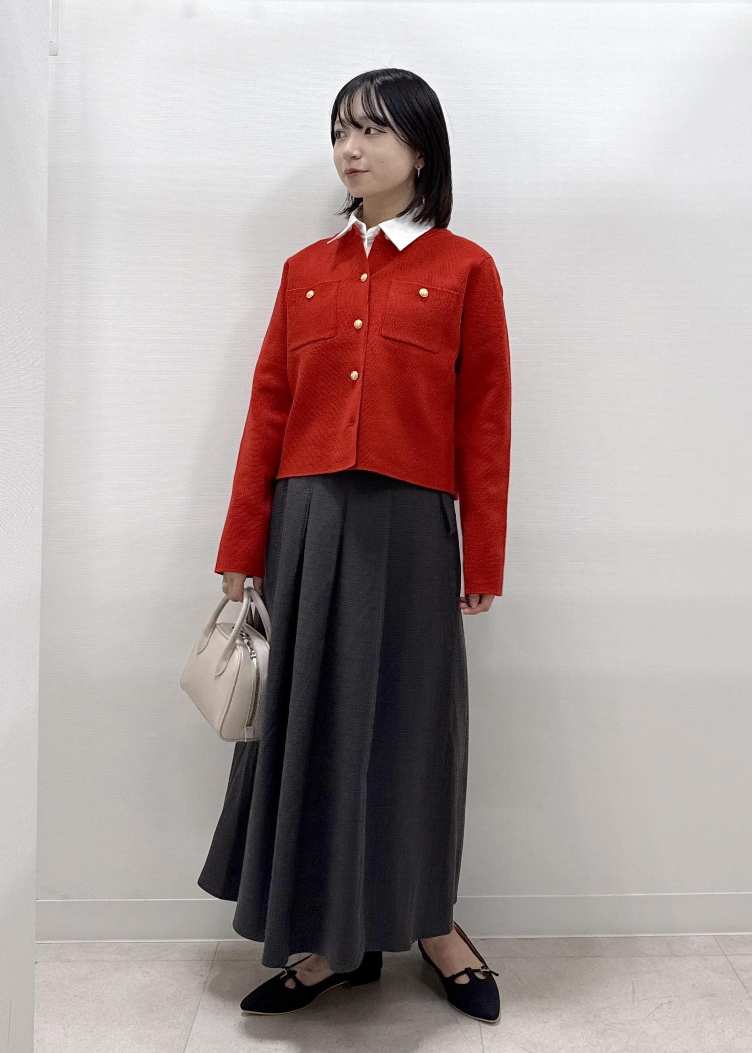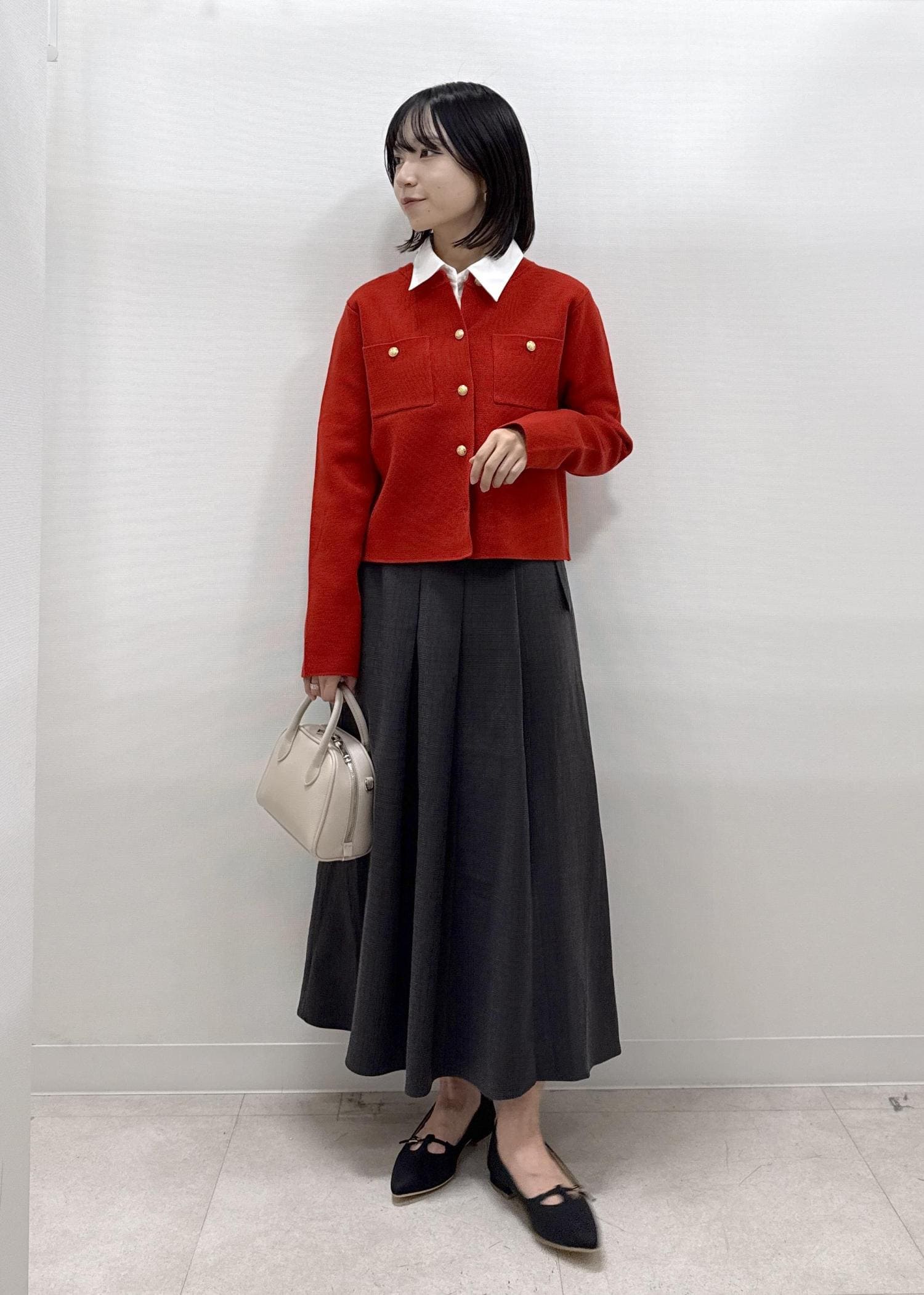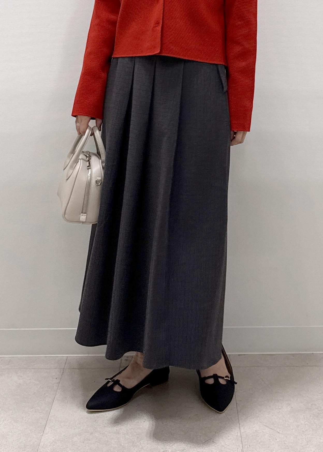 左側が幅のあるプリーツになっていてコーデにメリハリが出ます◎